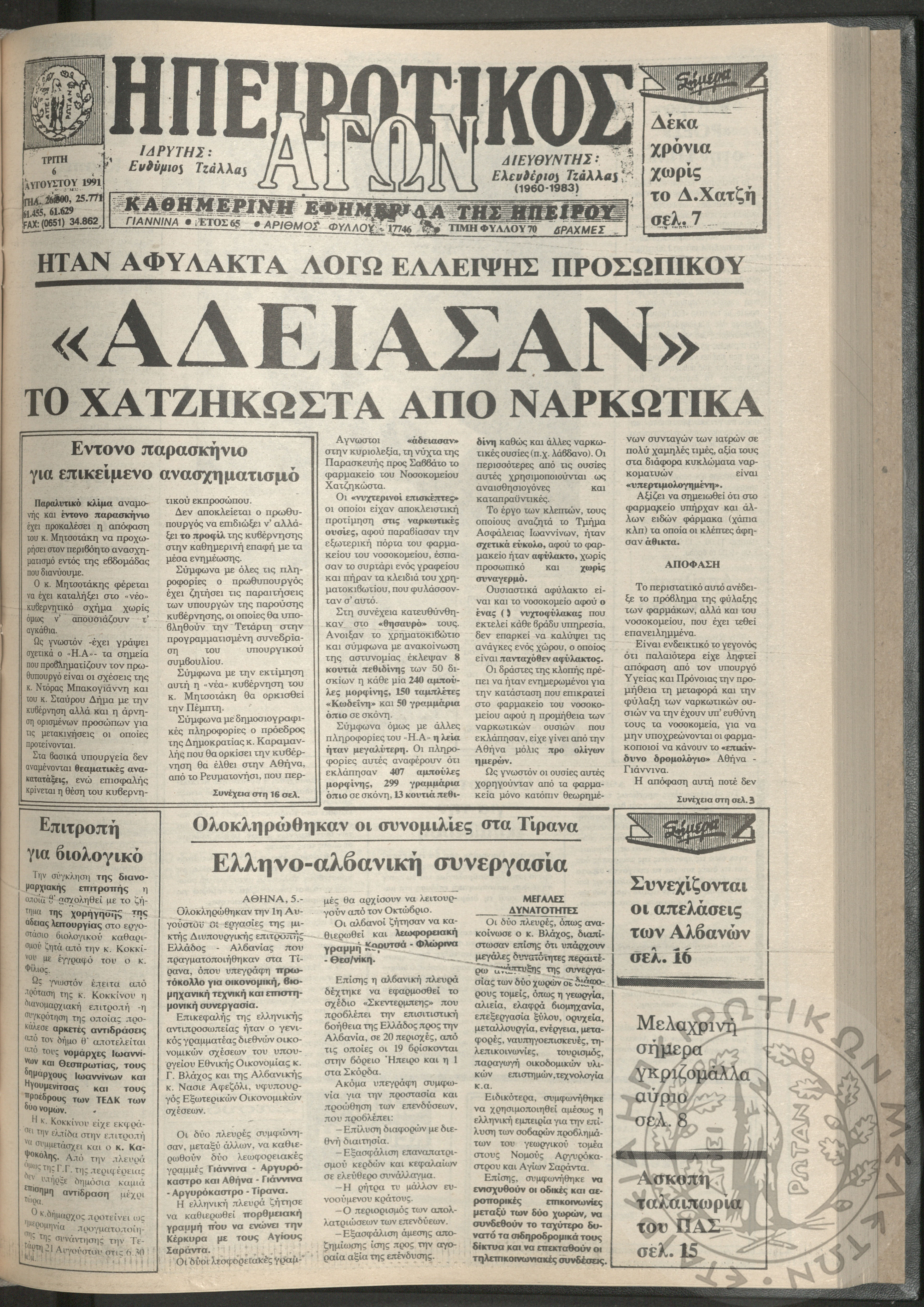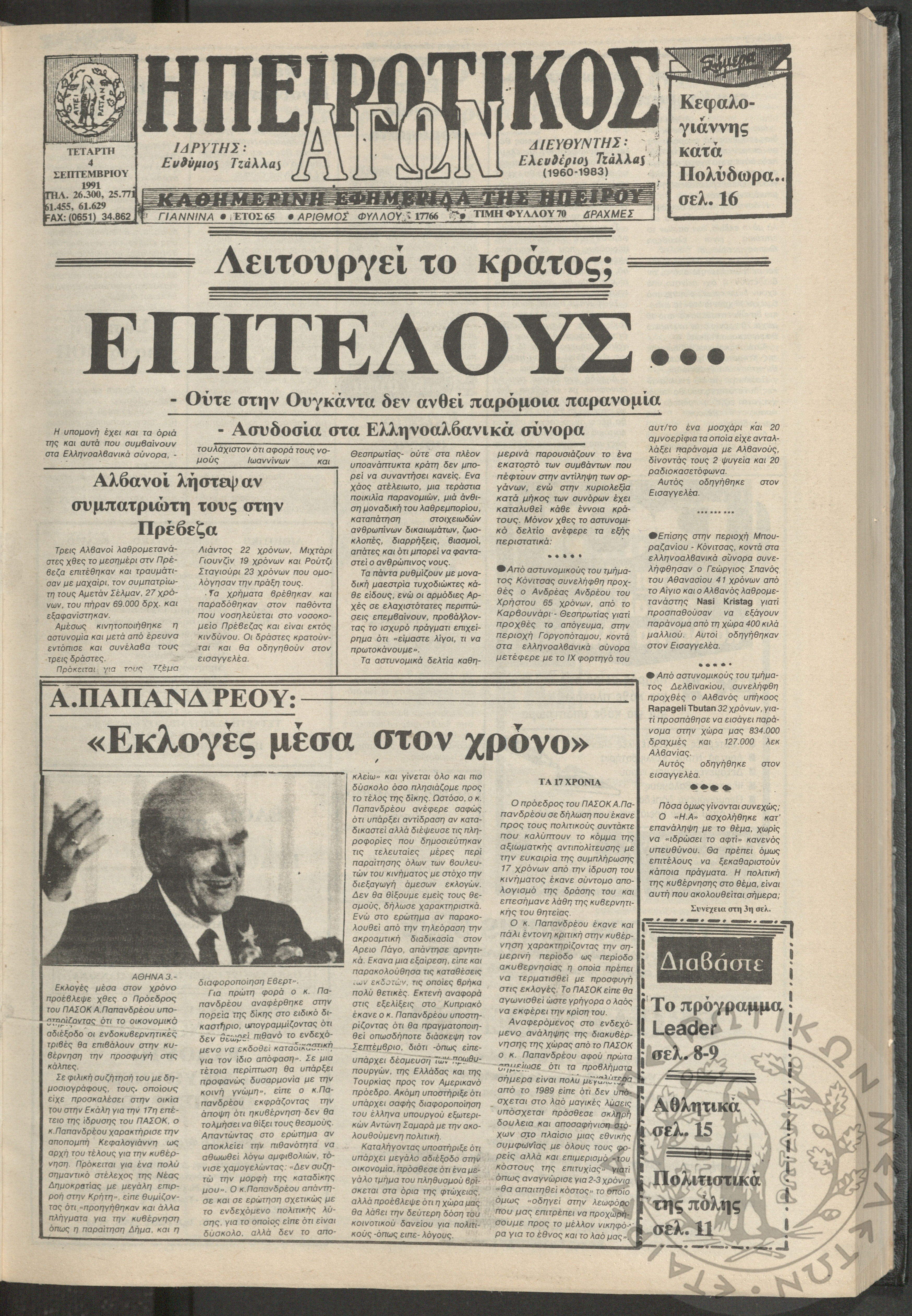 Ηπειρωτικός Αγών: καθημερινή εφημερίδα της Ηπείρου, 1991, φ. 17759