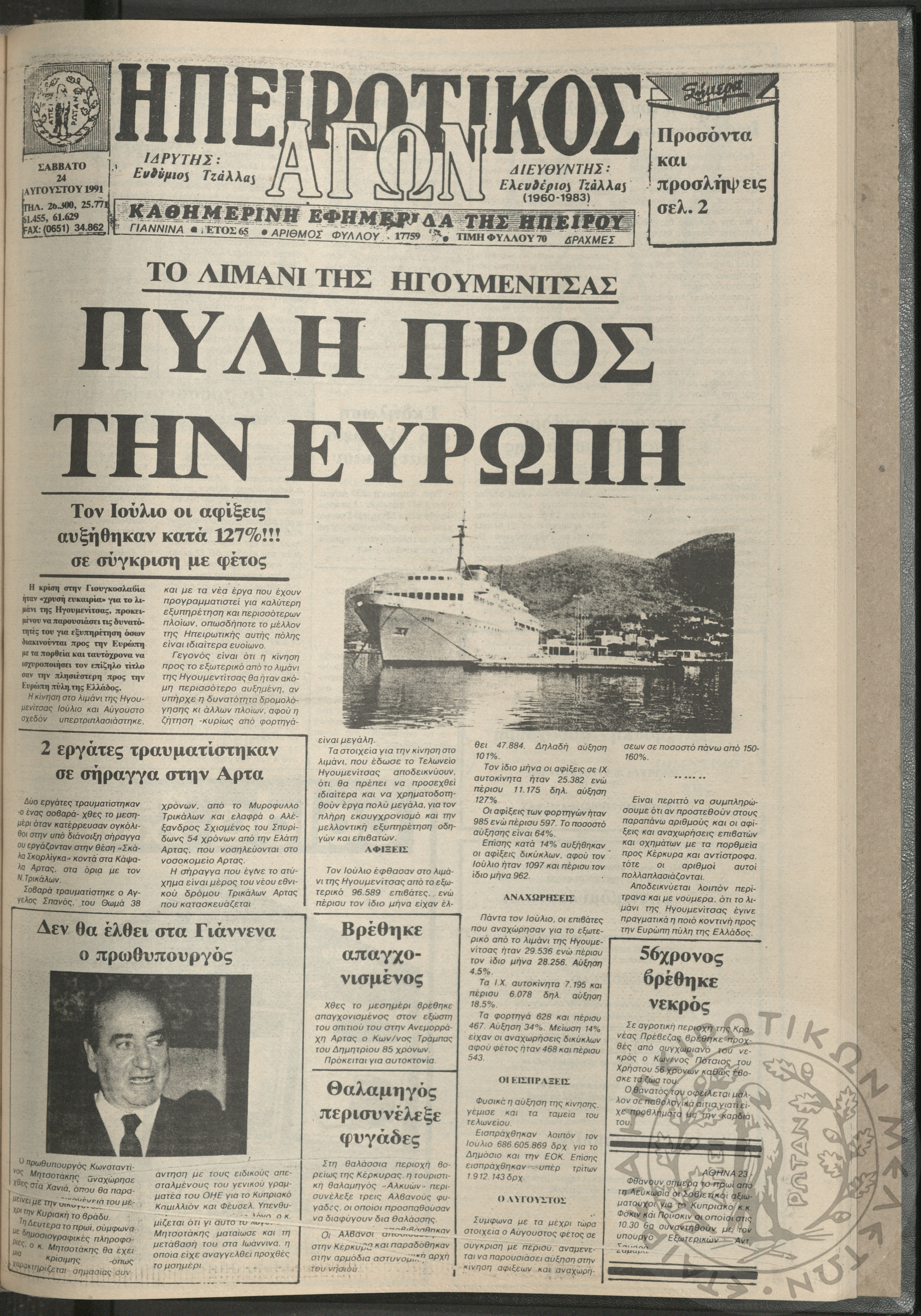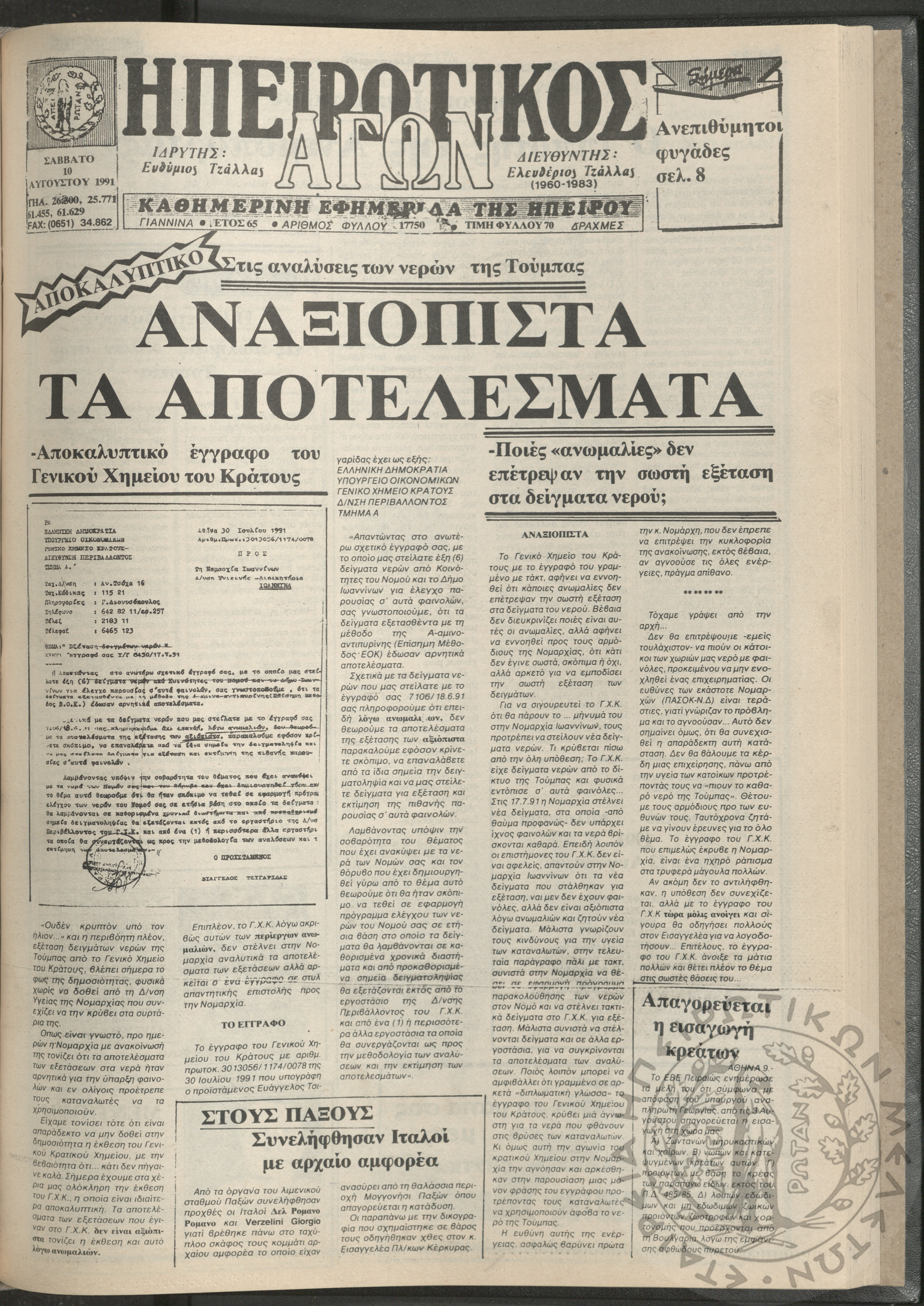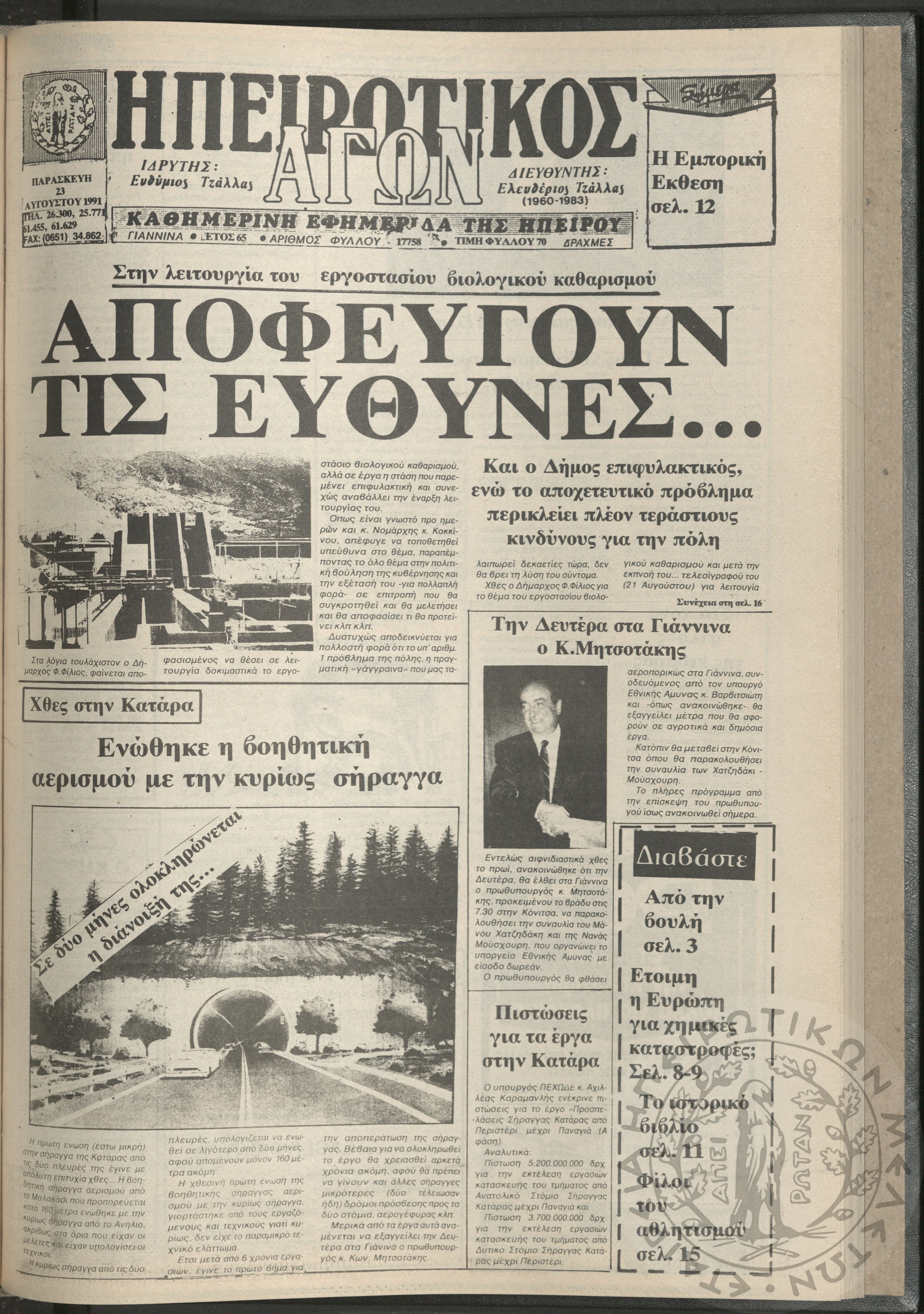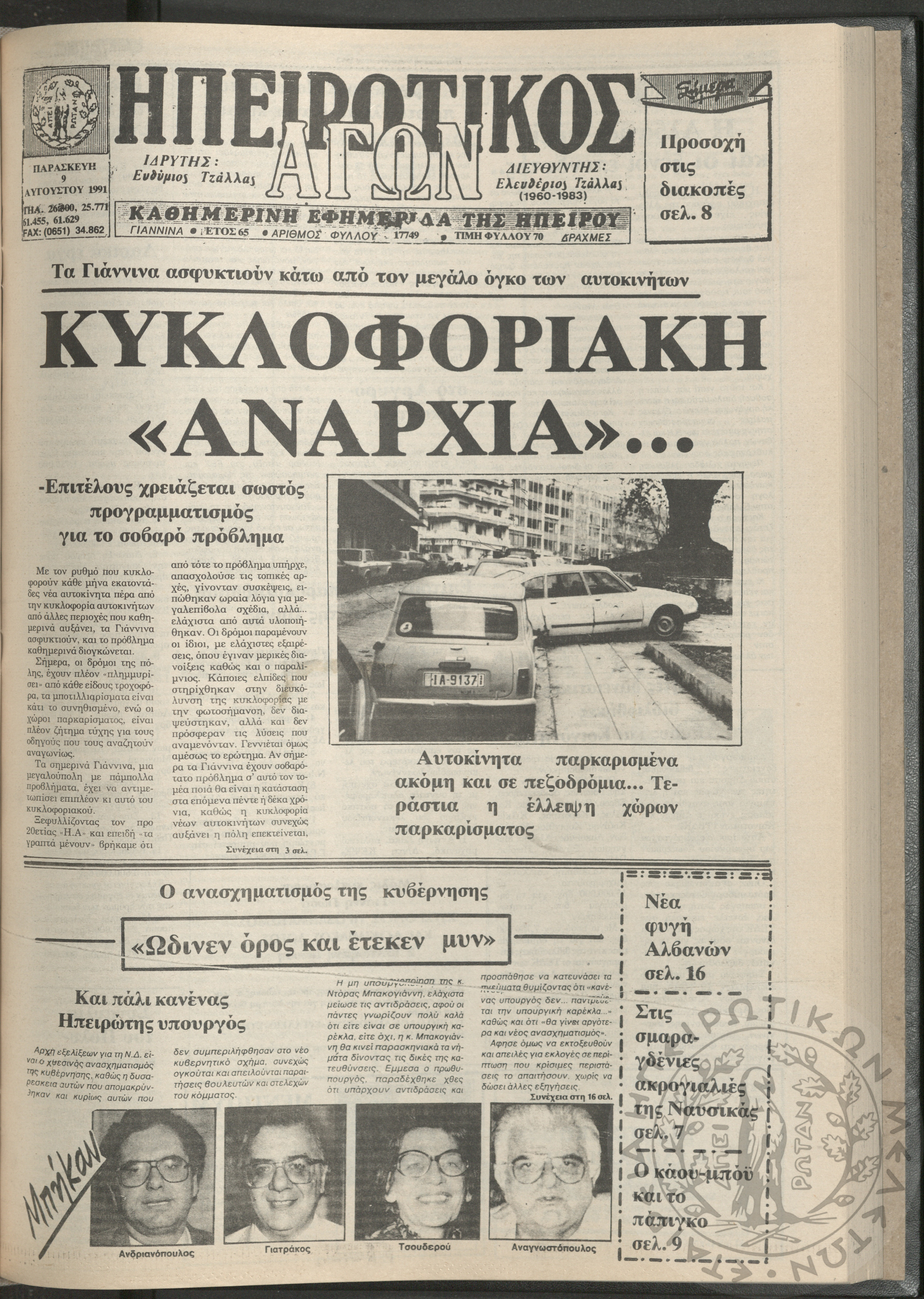 Ηπειρωτικός Αγών: καθημερινή εφημερίδα της Ηπείρου, 1991, φ. 17770