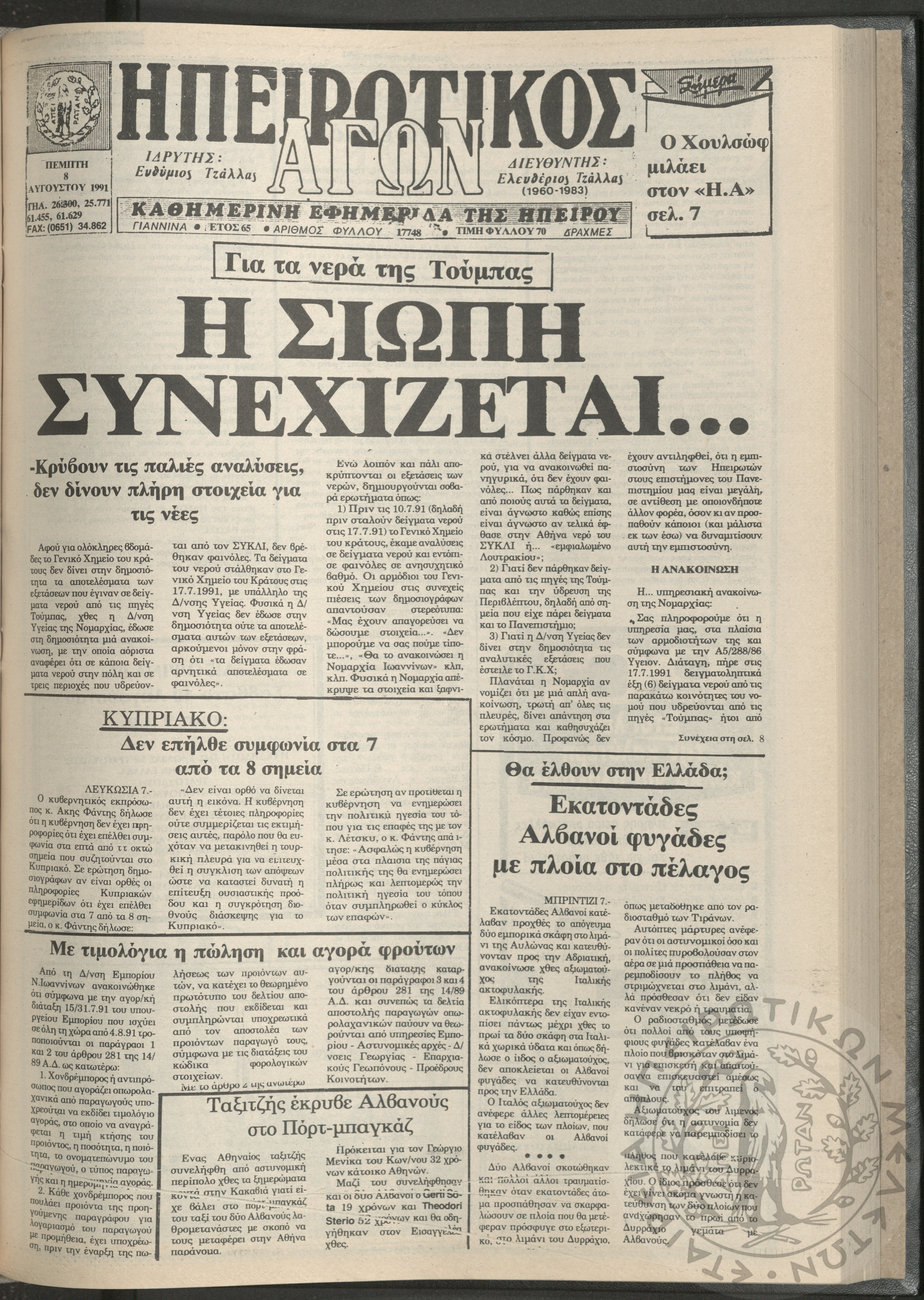 Ηπειρωτικός Αγών: καθημερινή εφημερίδα της Ηπείρου, 1991, φ. 17768