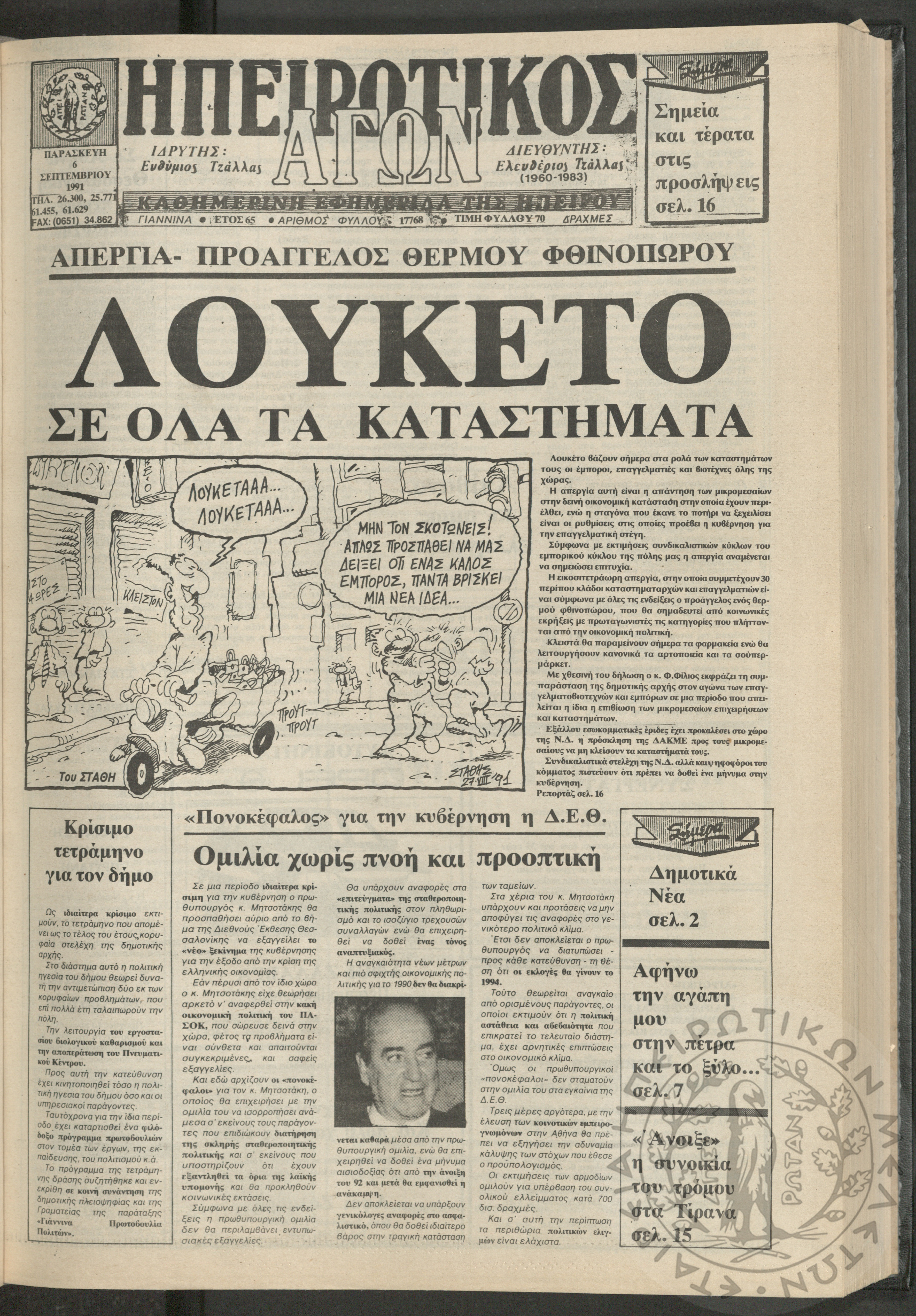 Ηπειρωτικός Αγών: καθημερινή εφημερίδα της Ηπείρου, 1991, φ. 17766