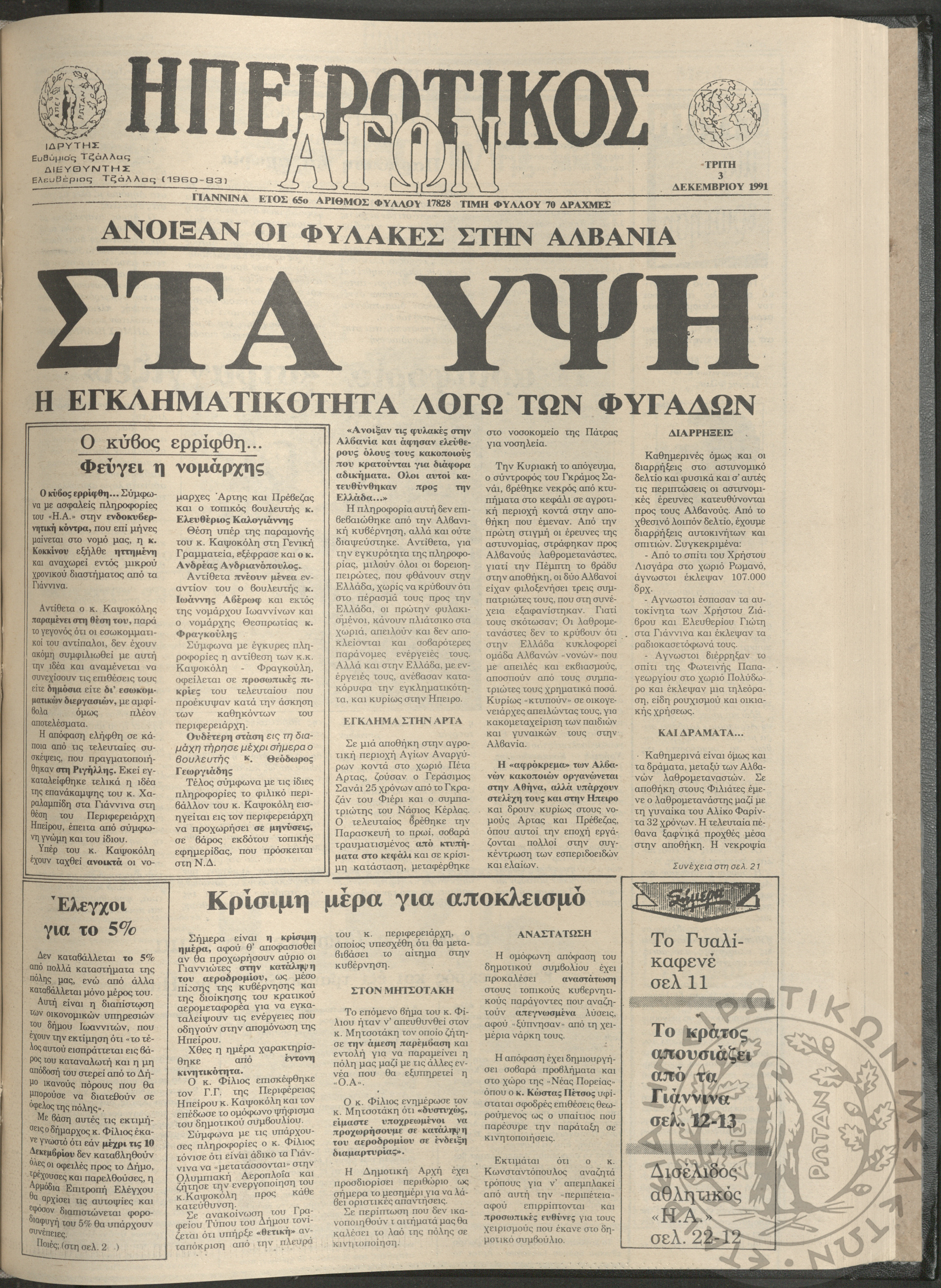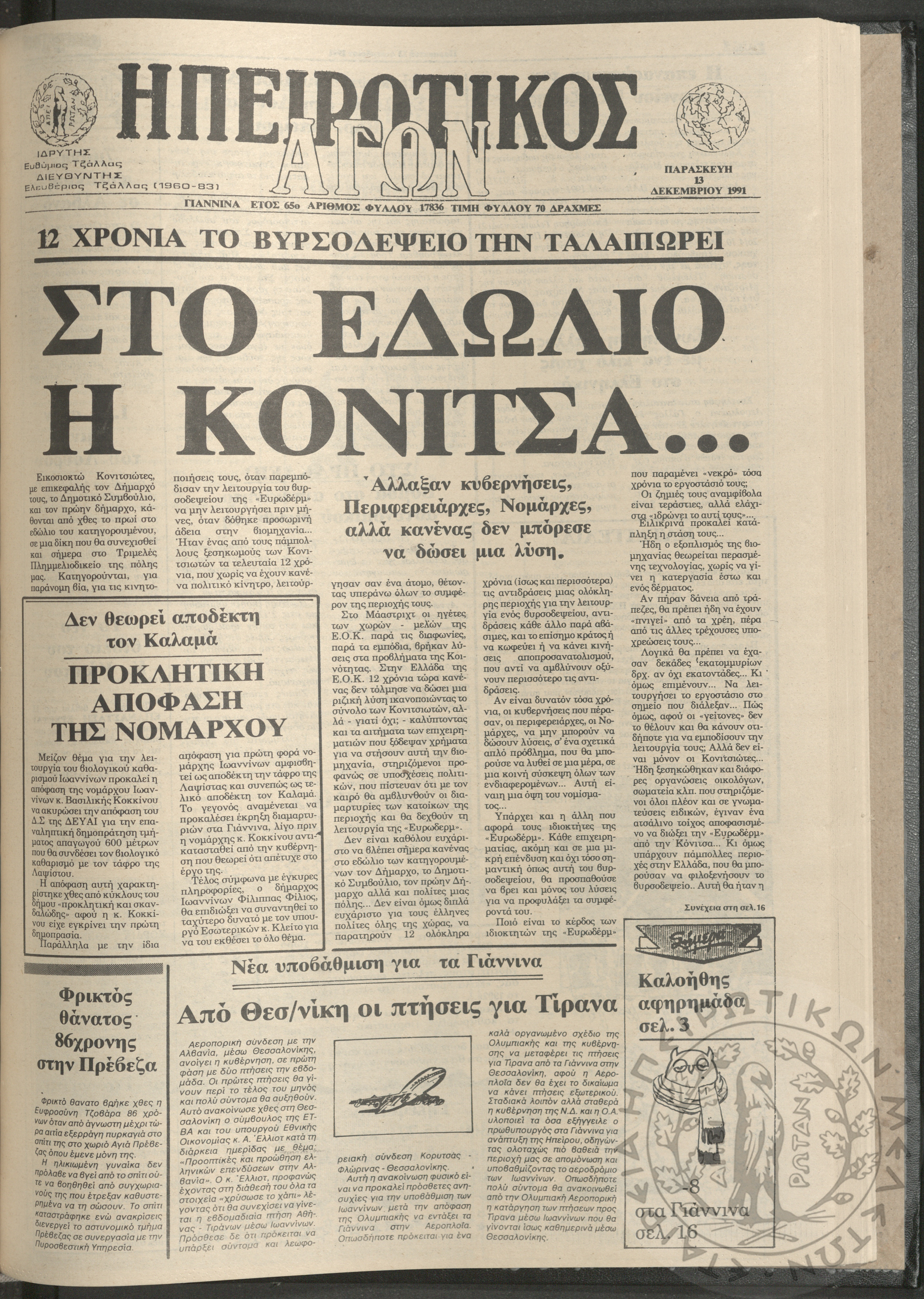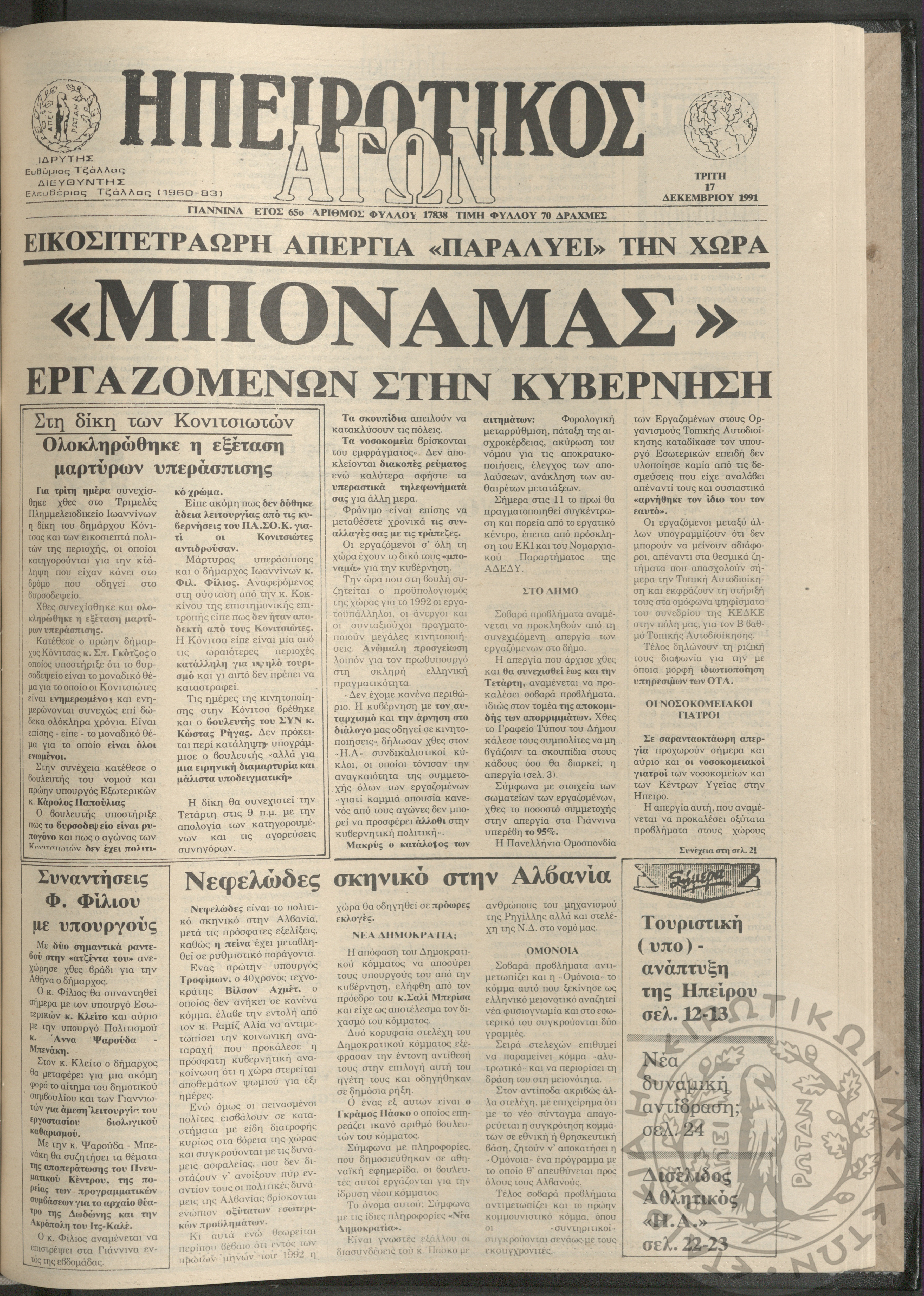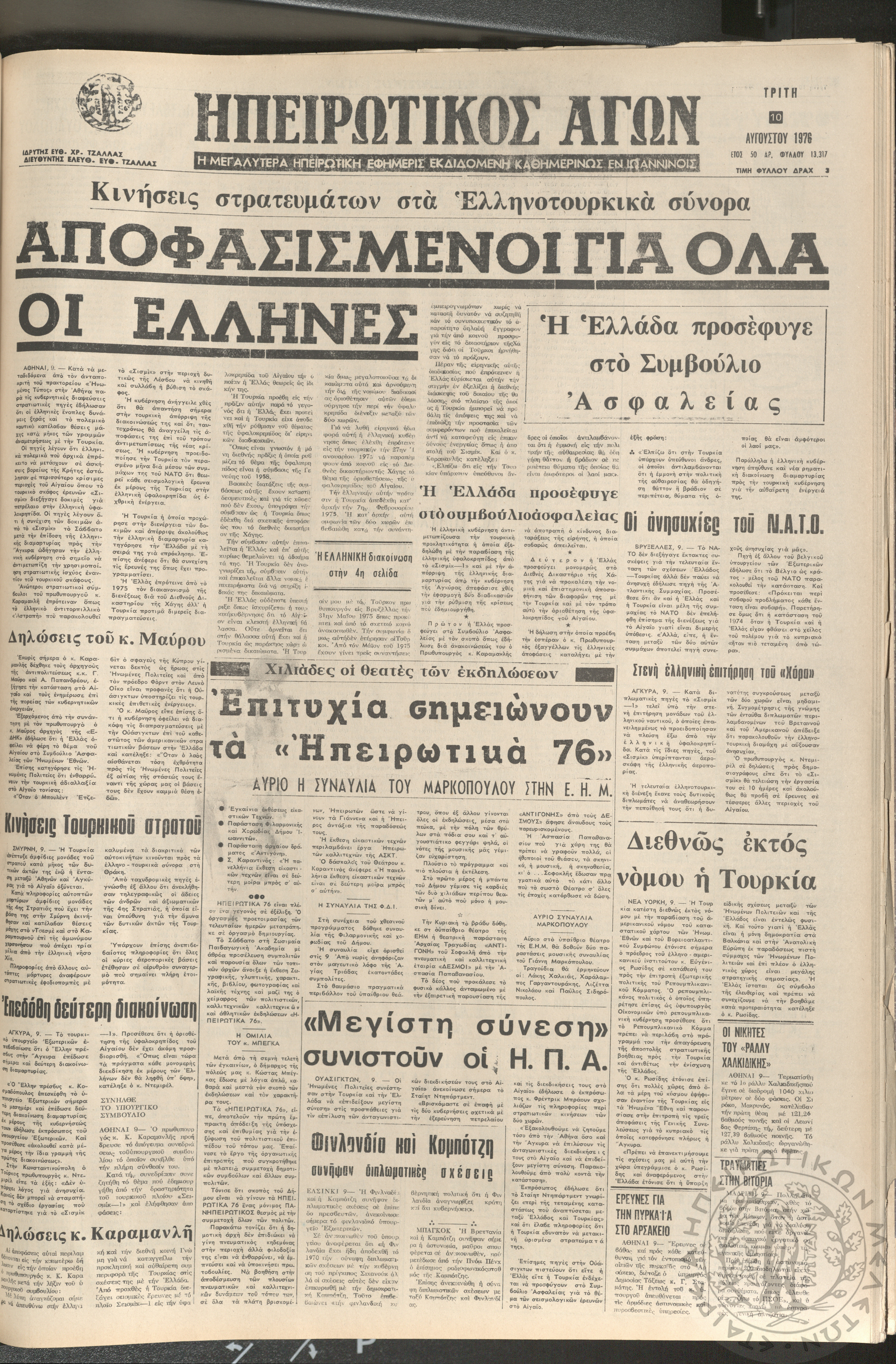 Ηπειρωτικός Αγών : η μεγαλυτέρα ηπειρωτική εφημερίς εκδιδόμενη καθημερινώς εν Ιωαννίνοις 1976 φ. (13317)Έτος 50, Φ. 13317...