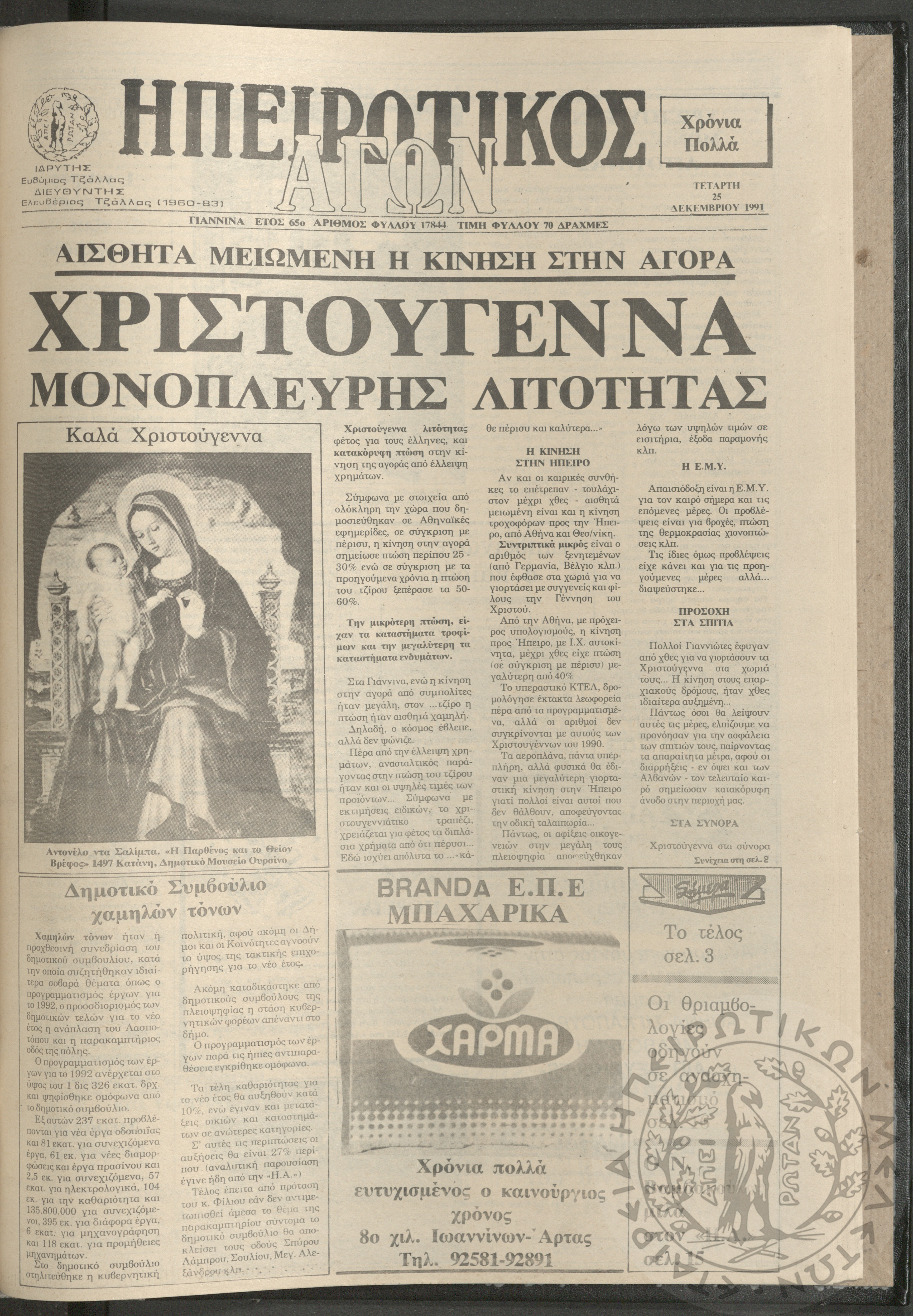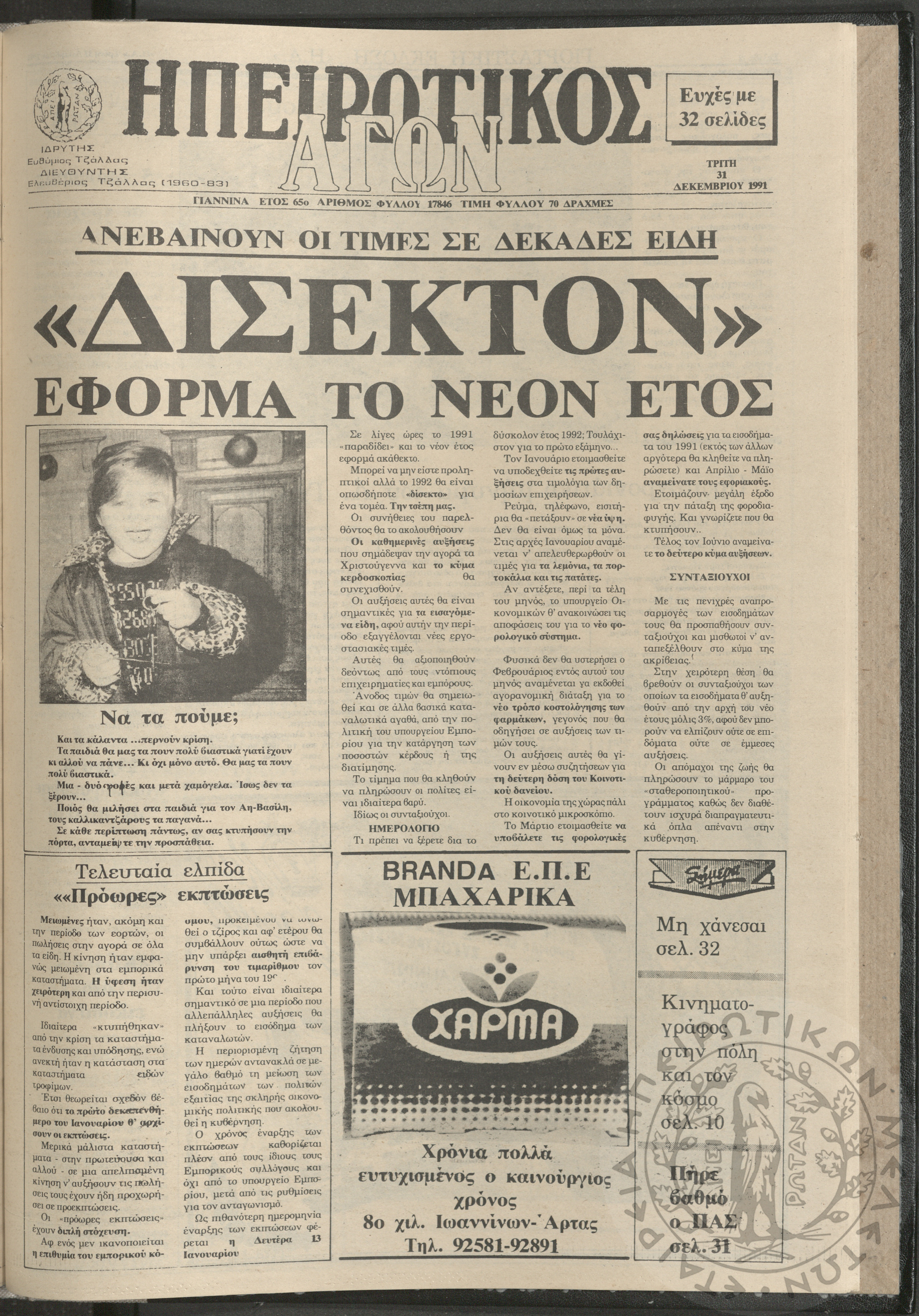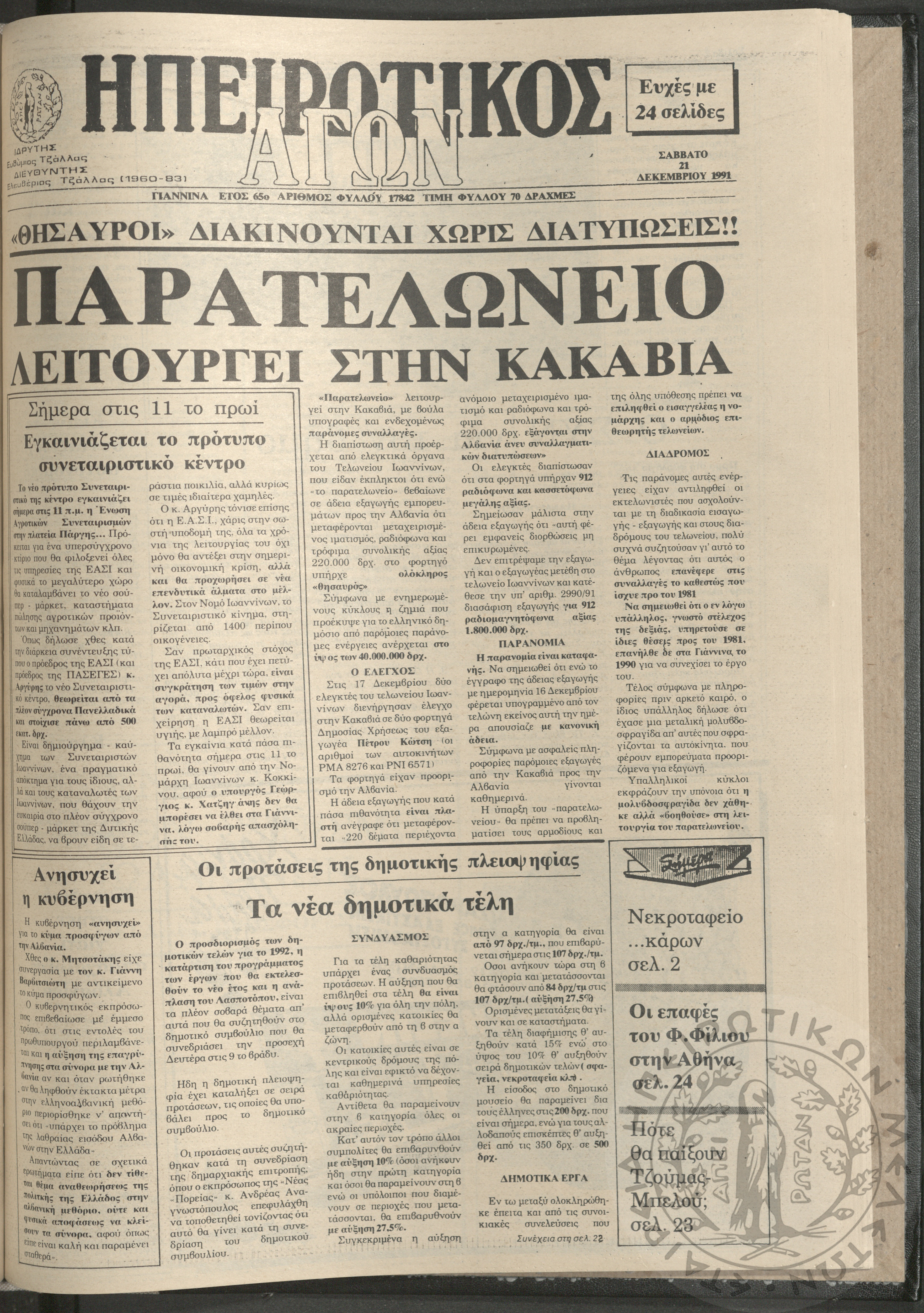 Ηπειρωτικός Αγών : η μεγαλυτέρα ηπειρωτική εφημερίς εκδιδόμενη καθημερινώς εν Ιωαννίνοις 1976 φ. (13317)Έτος 50, Φ. 13317...