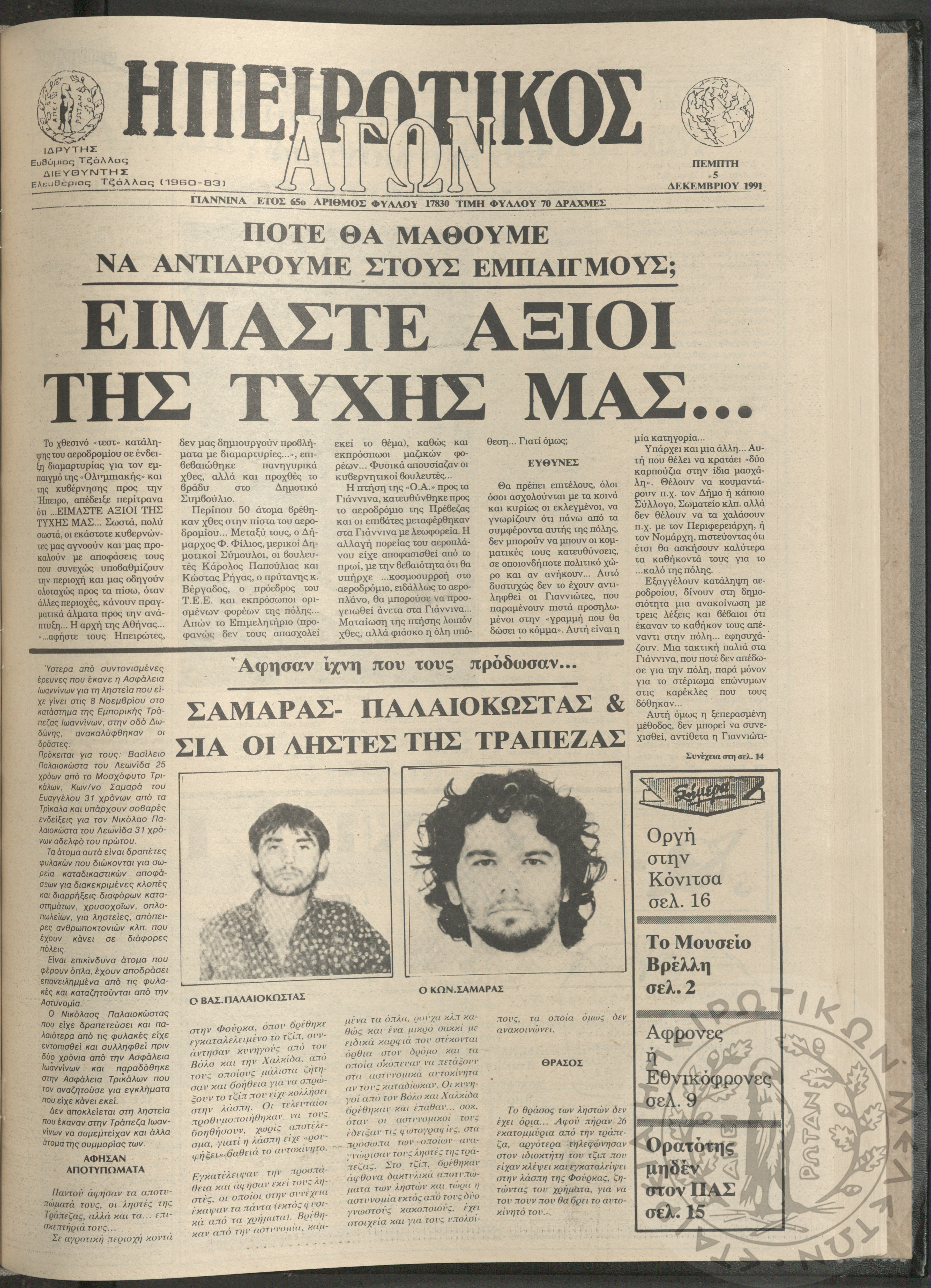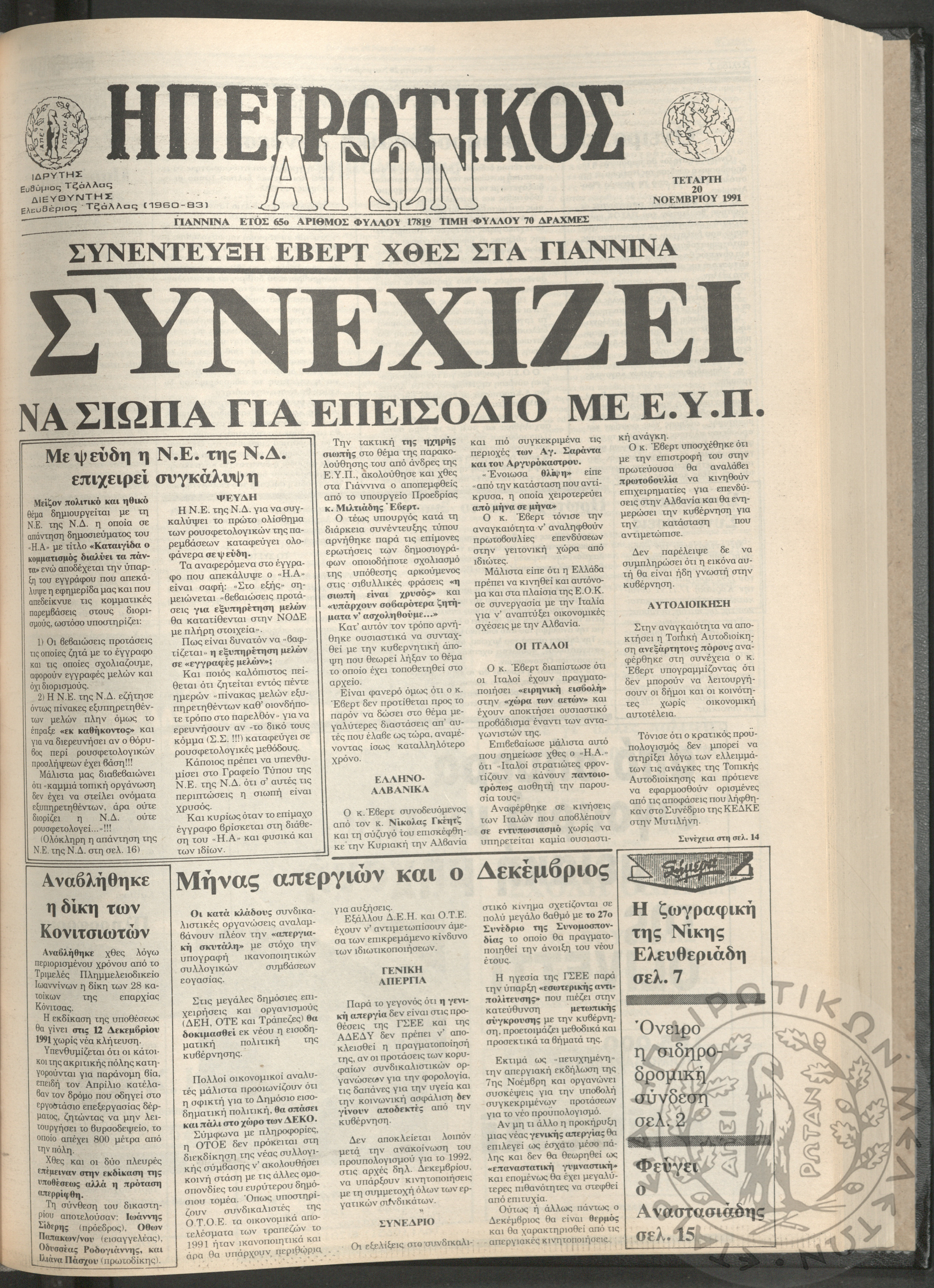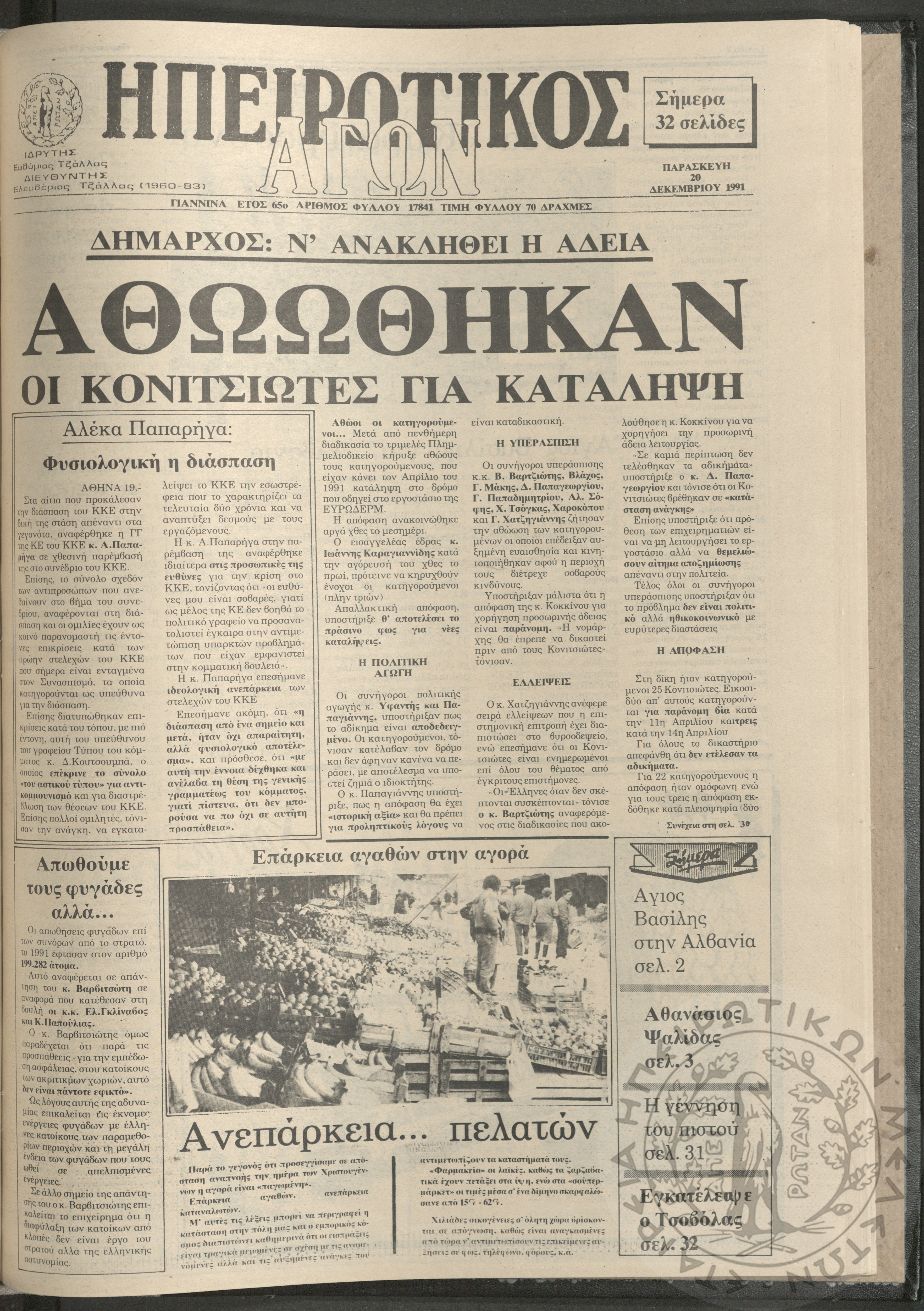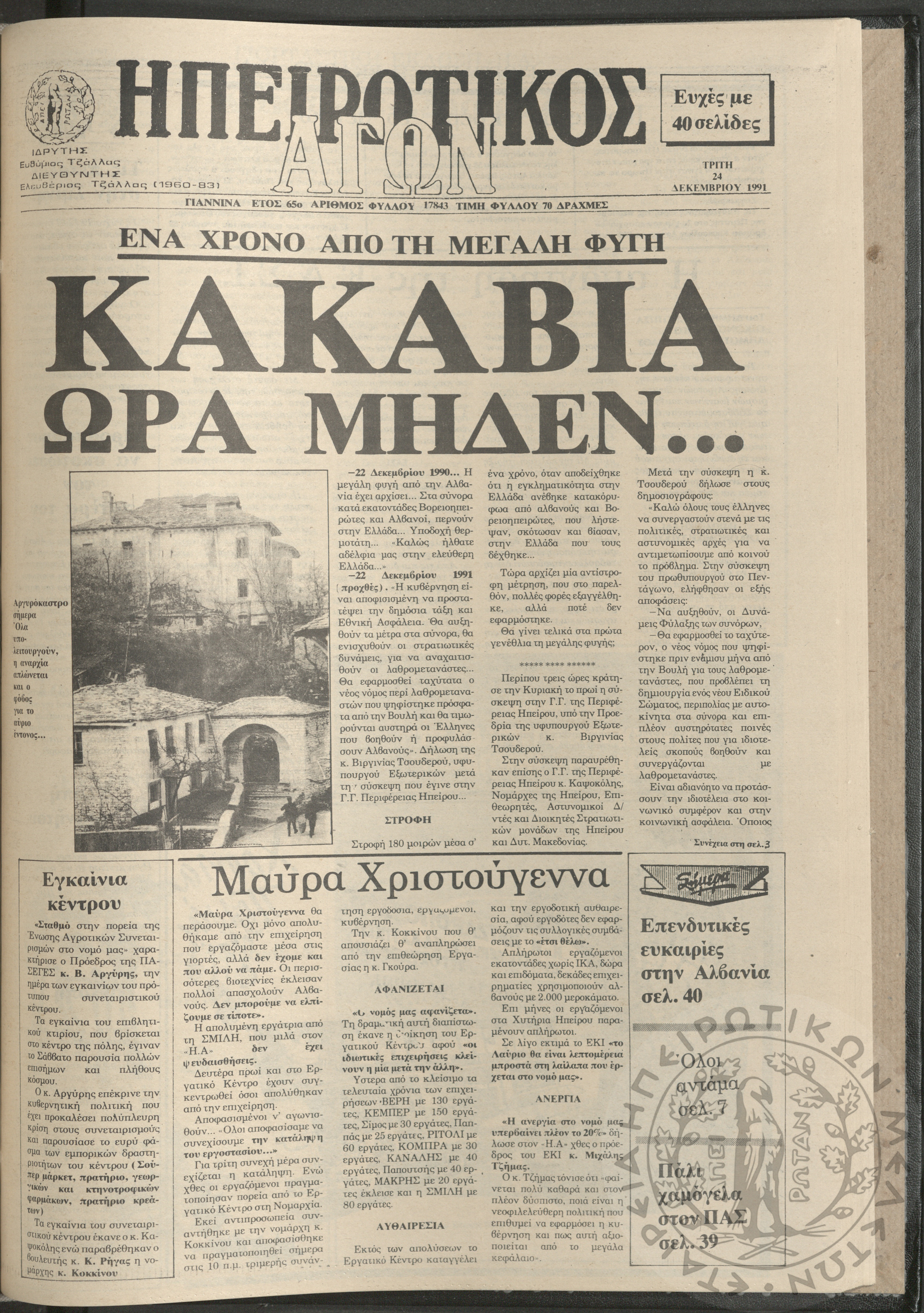 Ηπειρωτικός Αγών : η μεγαλυτέρα ηπειρωτική εφημερίς εκδιδόμενη καθημερινώς εν Ιωαννίνοις 1976 φ. (13317)Έτος 50, Φ. 13317...