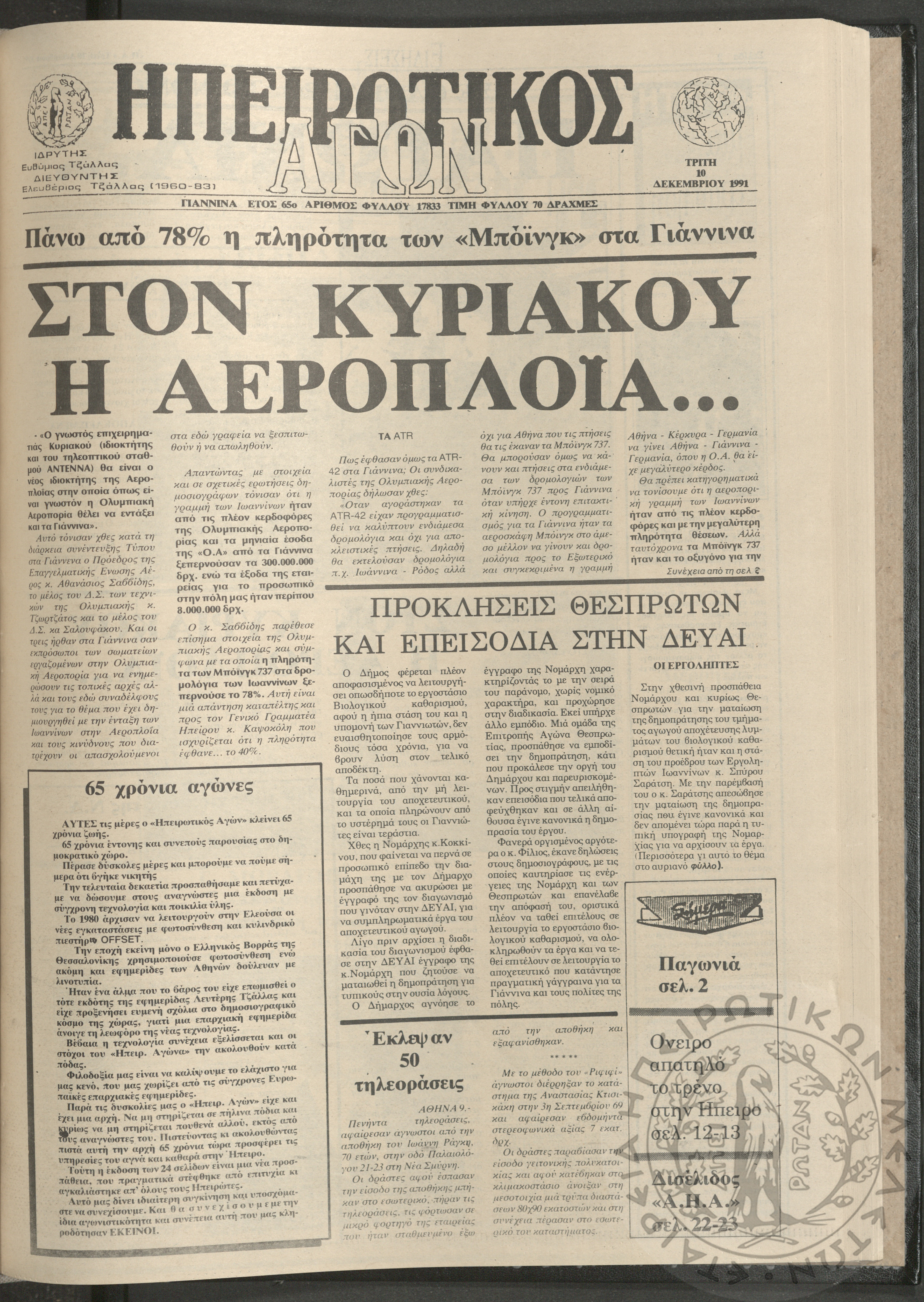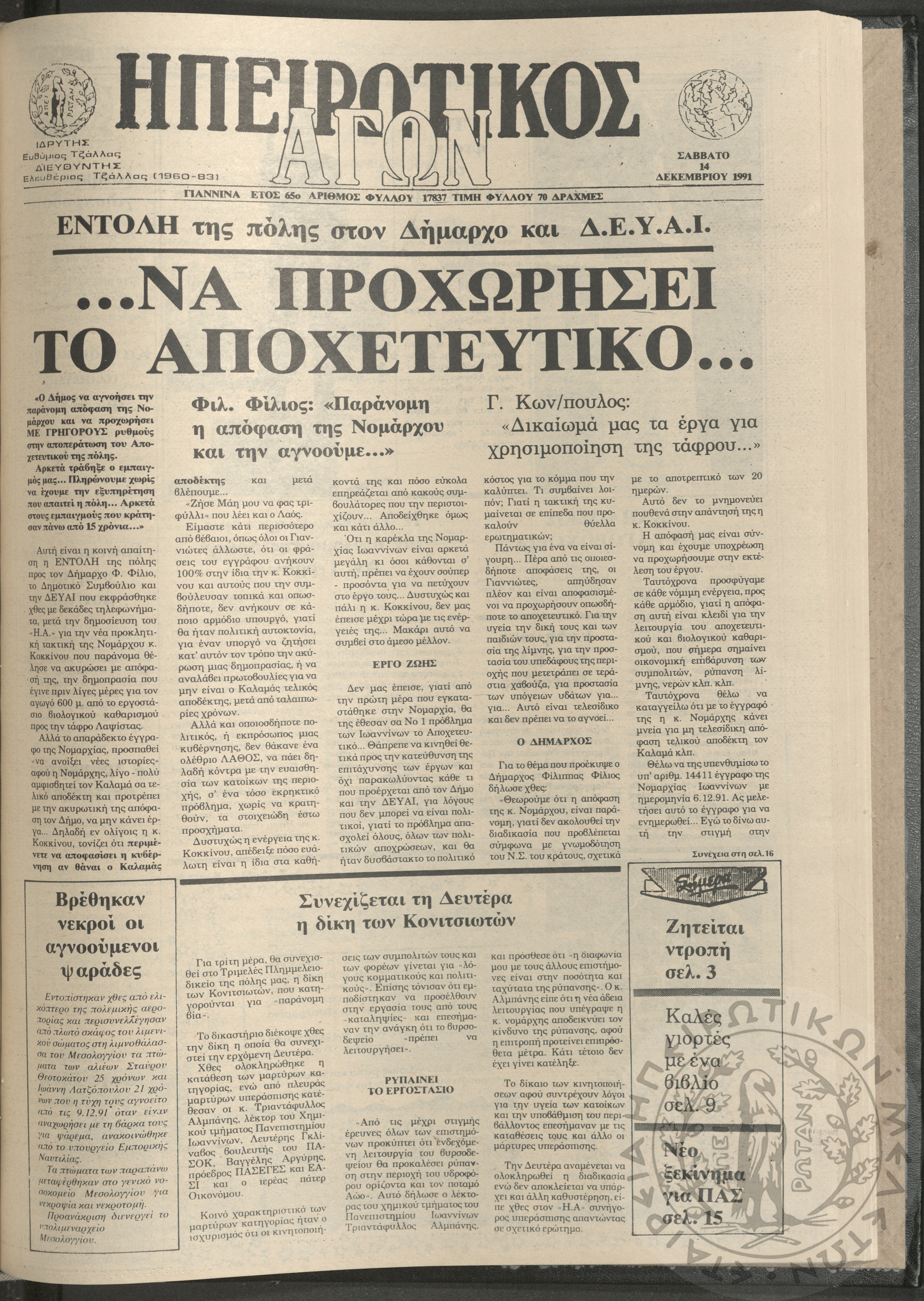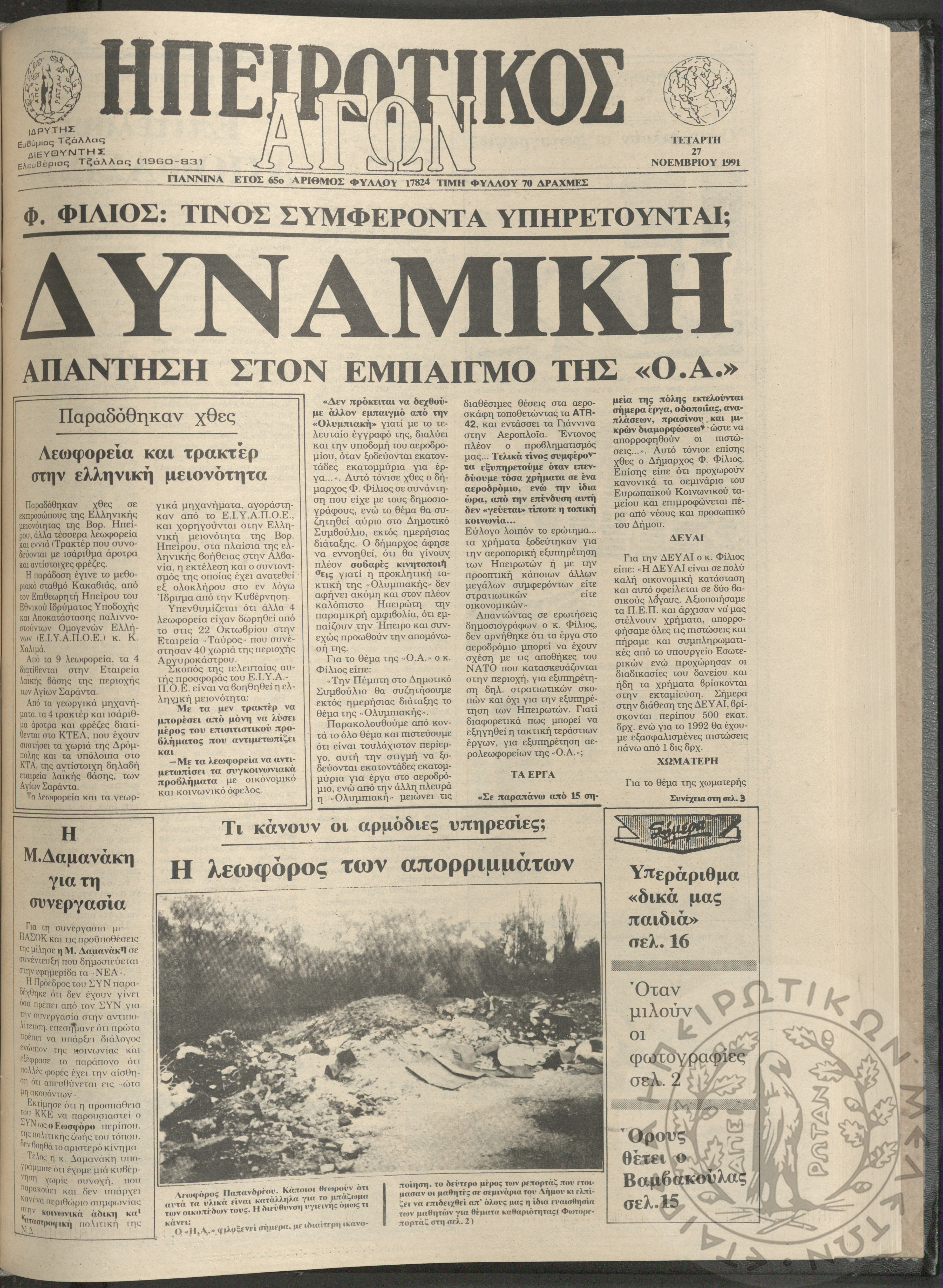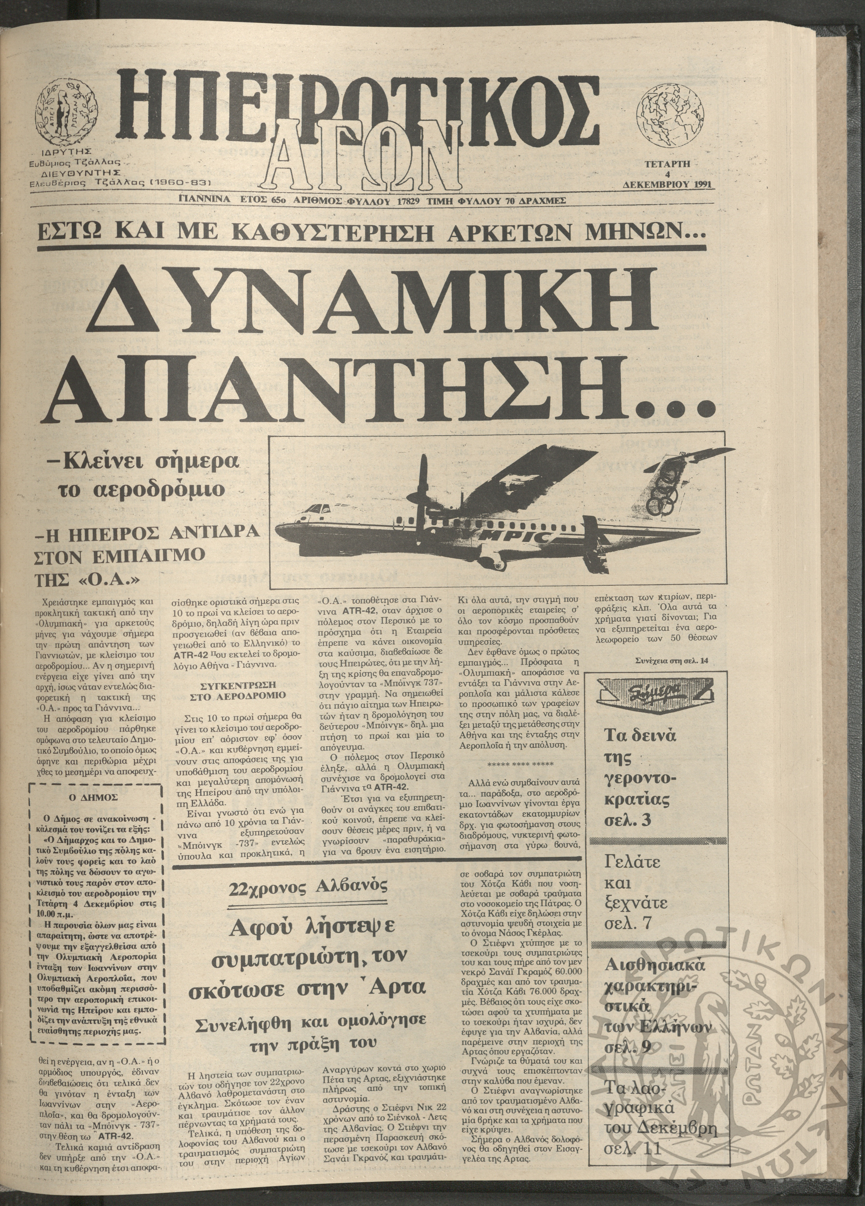 Ηπειρωτικός Αγών : η μεγαλυτέρα ηπειρωτική εφημερίς εκδιδόμενη καθημερινώς εν Ιωαννίνοις 1976 (φ. 13327)Έτος 50, Φ. 13327...