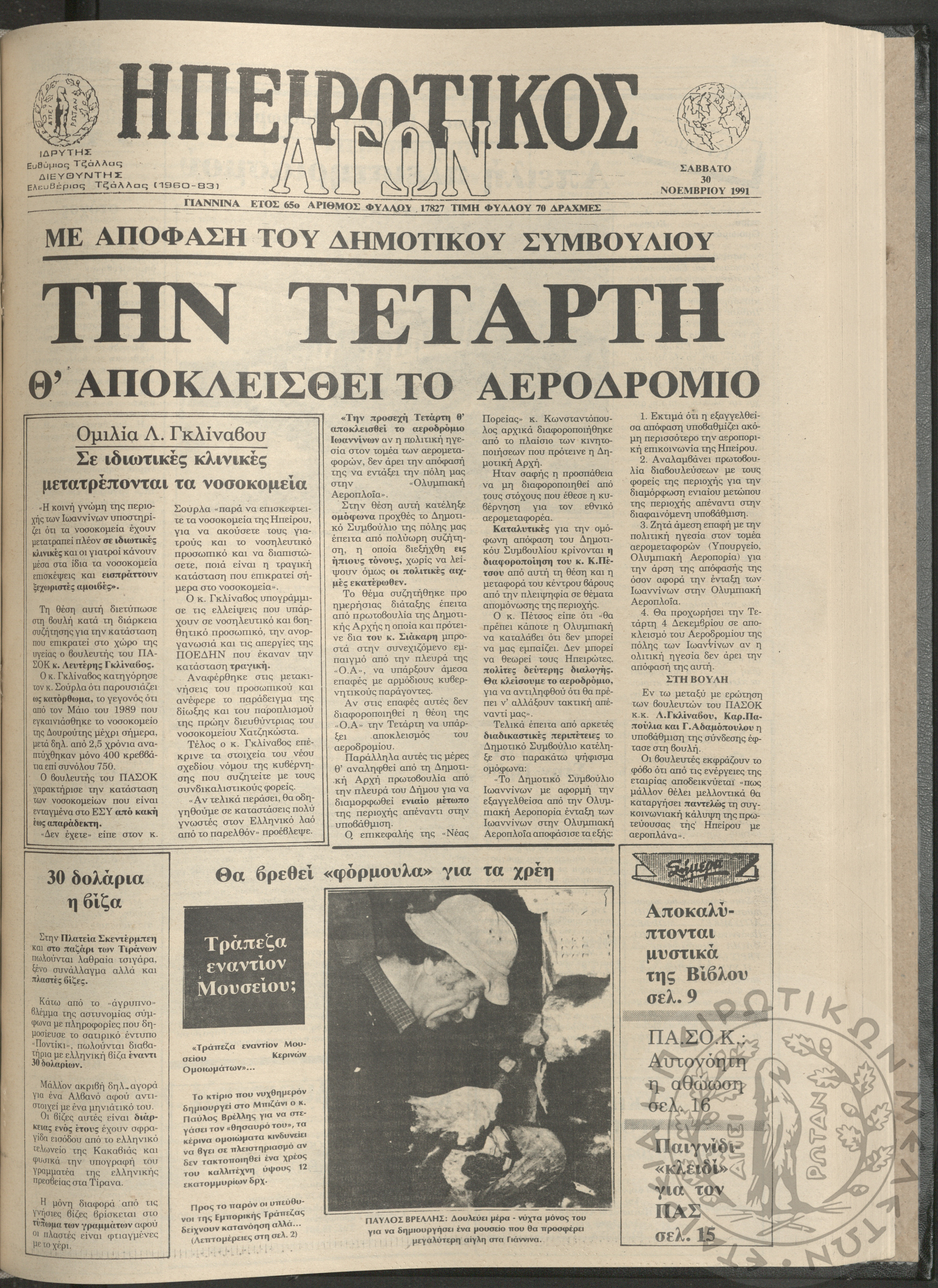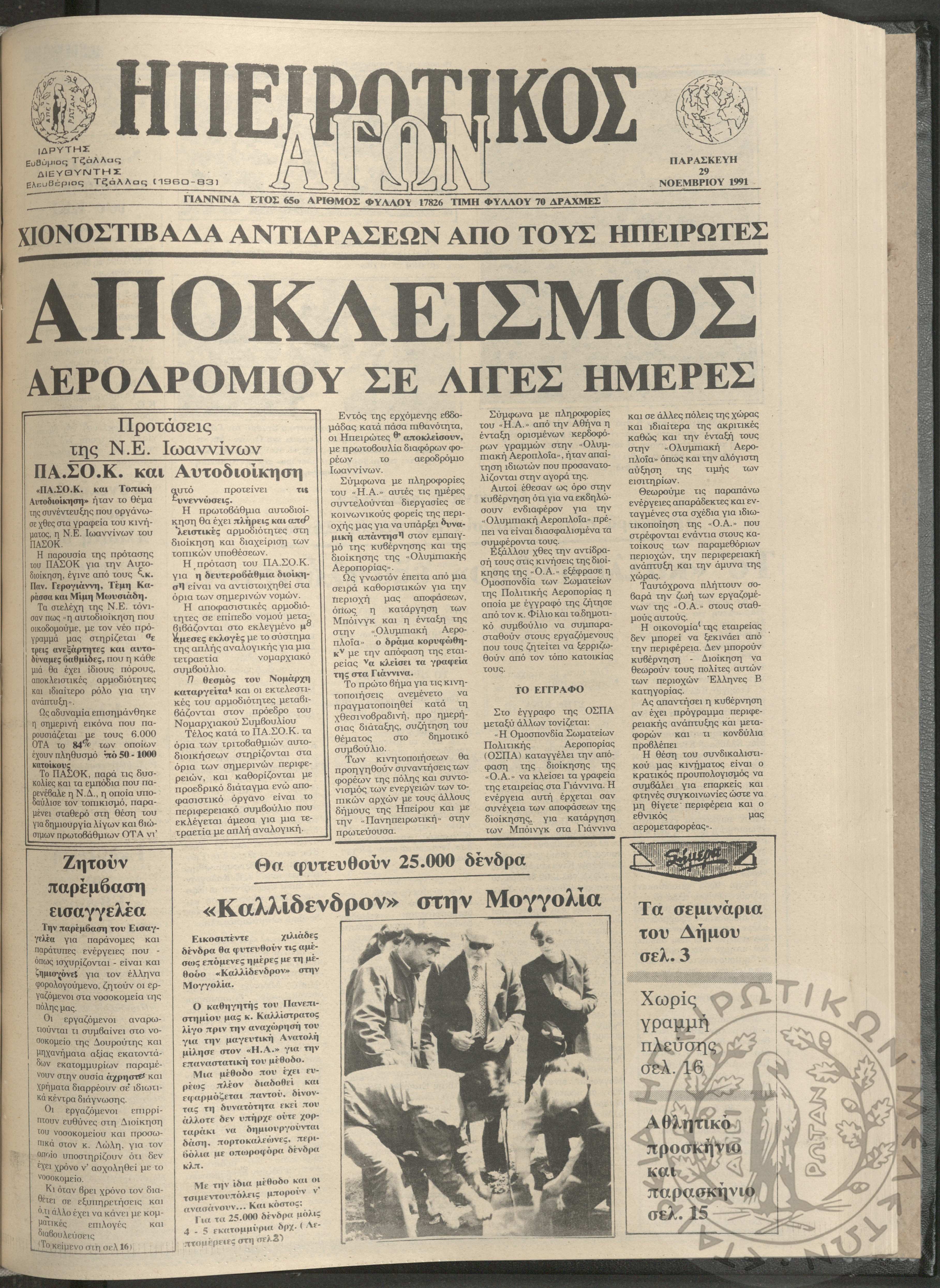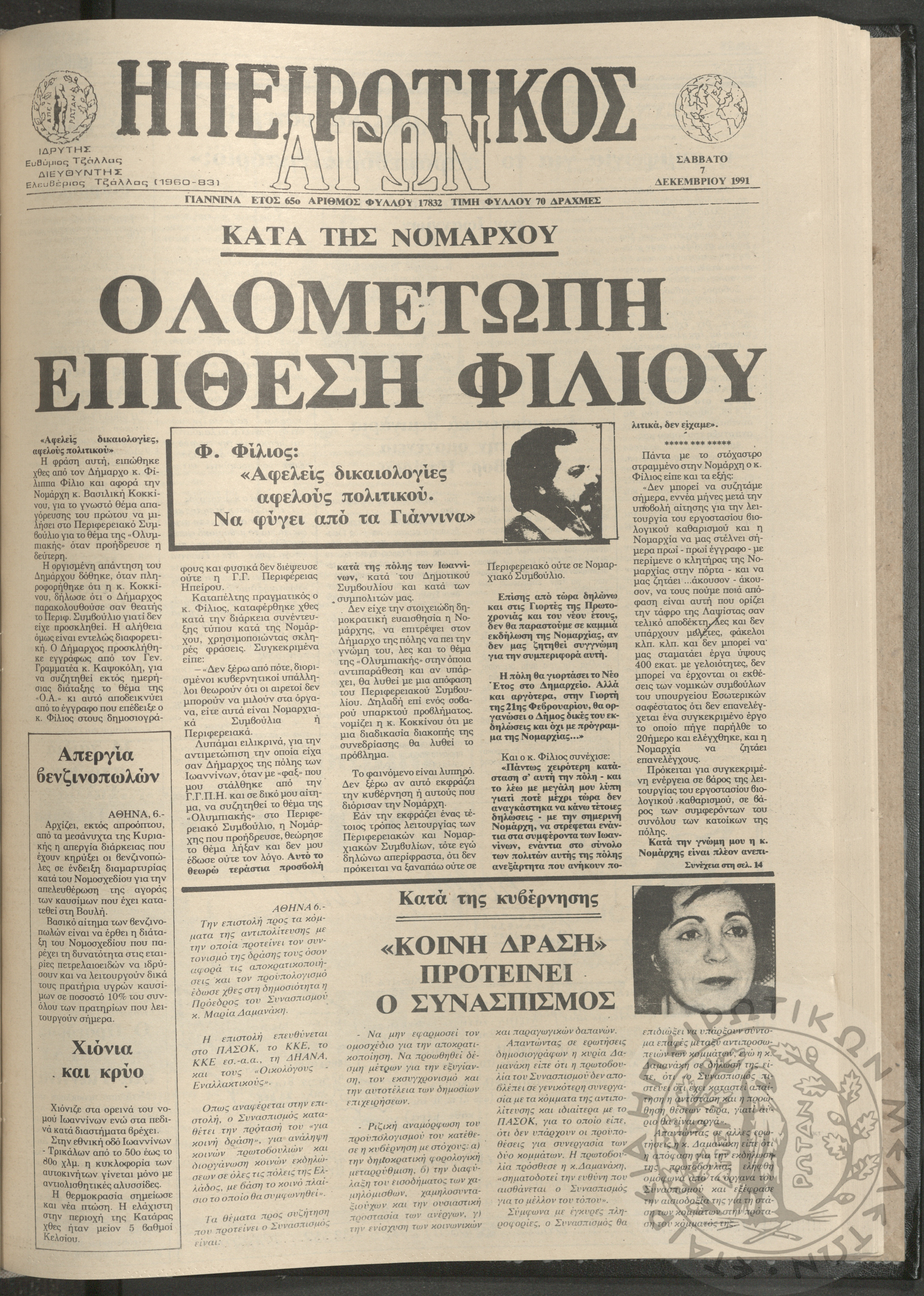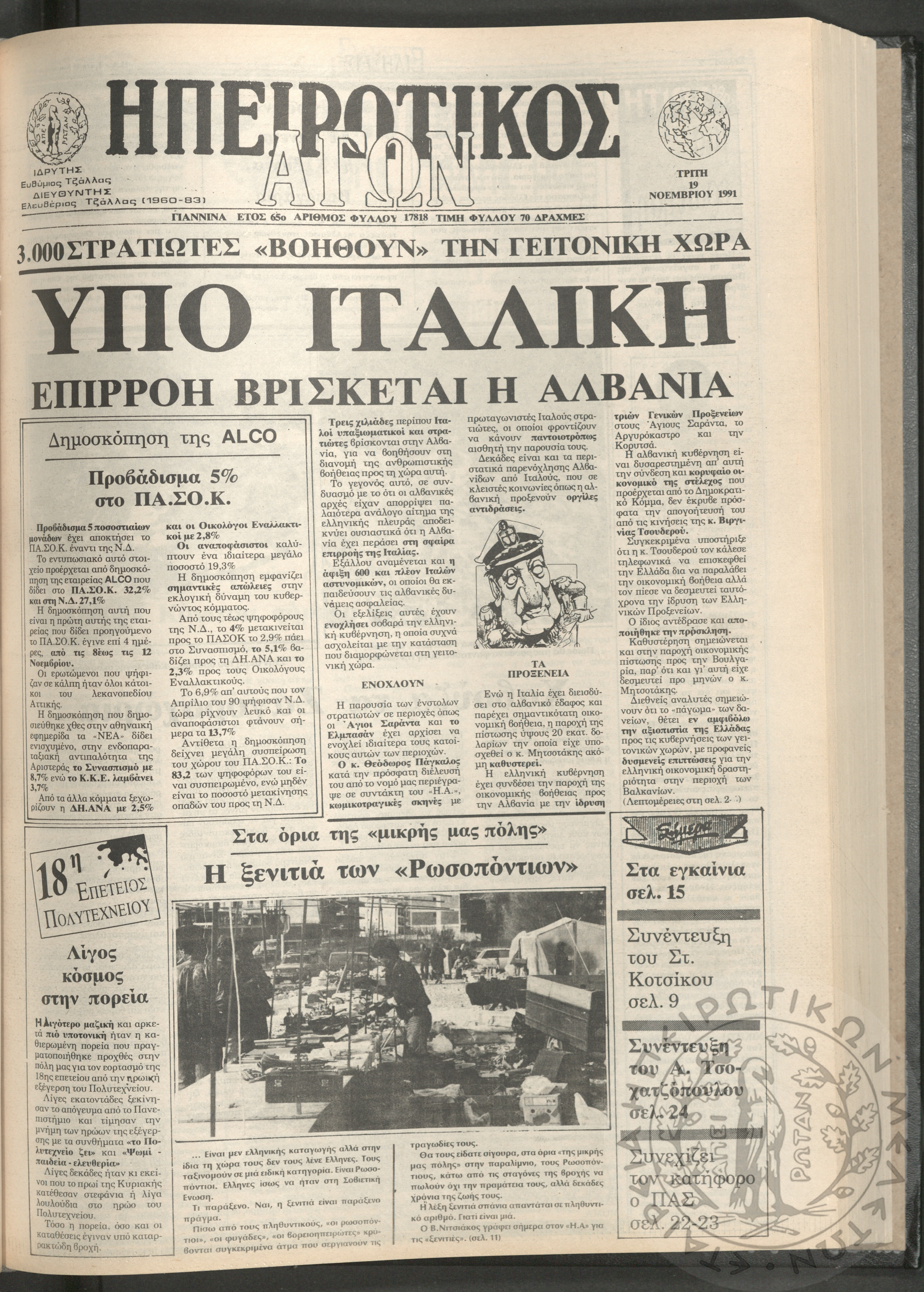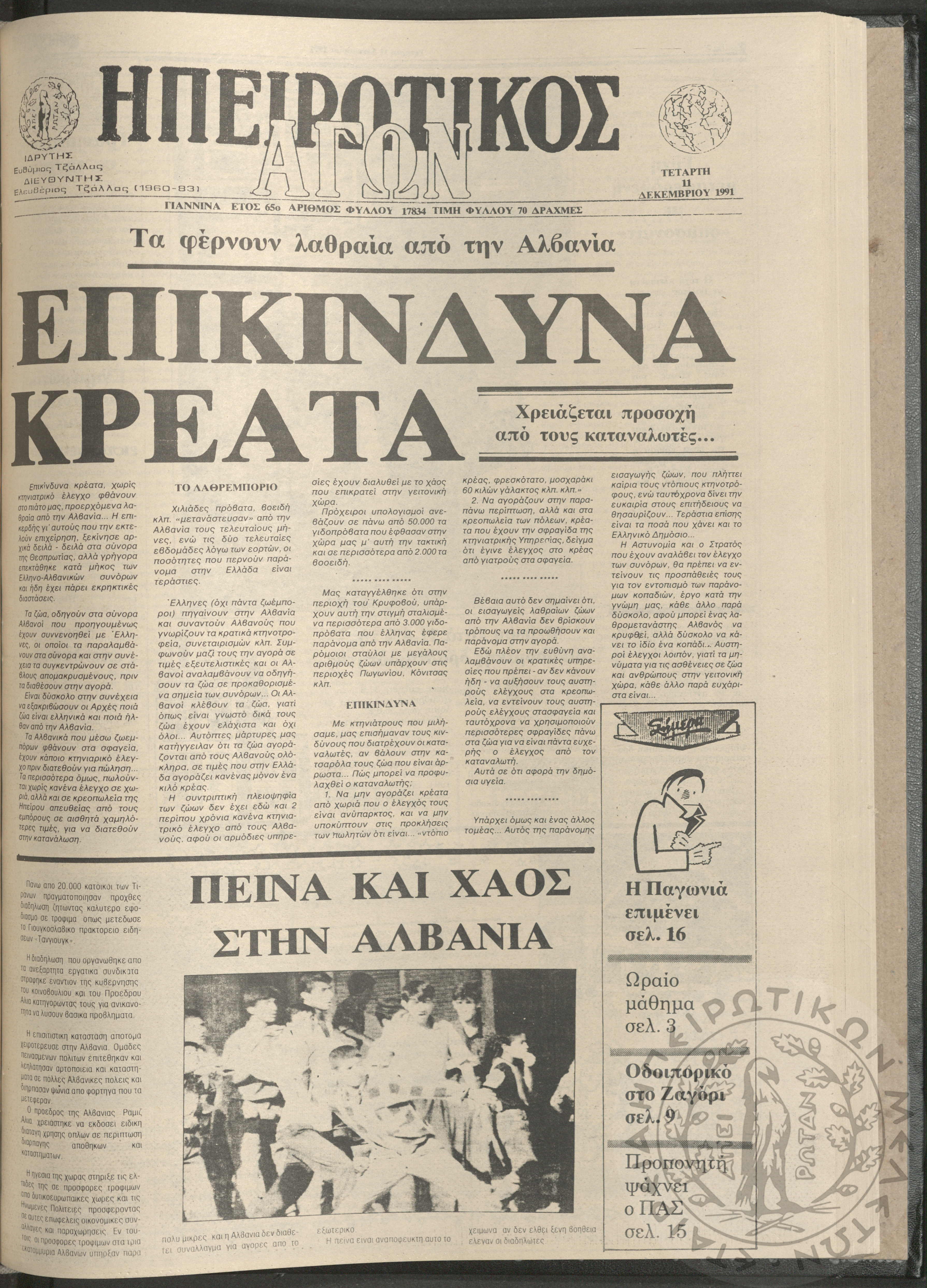 Ηπειρωτικός Αγών : η μεγαλυτέρα ηπειρωτική εφημερίς εκδιδόμενη καθημερινώς εν Ιωαννίνοις 1976 (φ. 13327)Έτος 50, Φ. 13327...