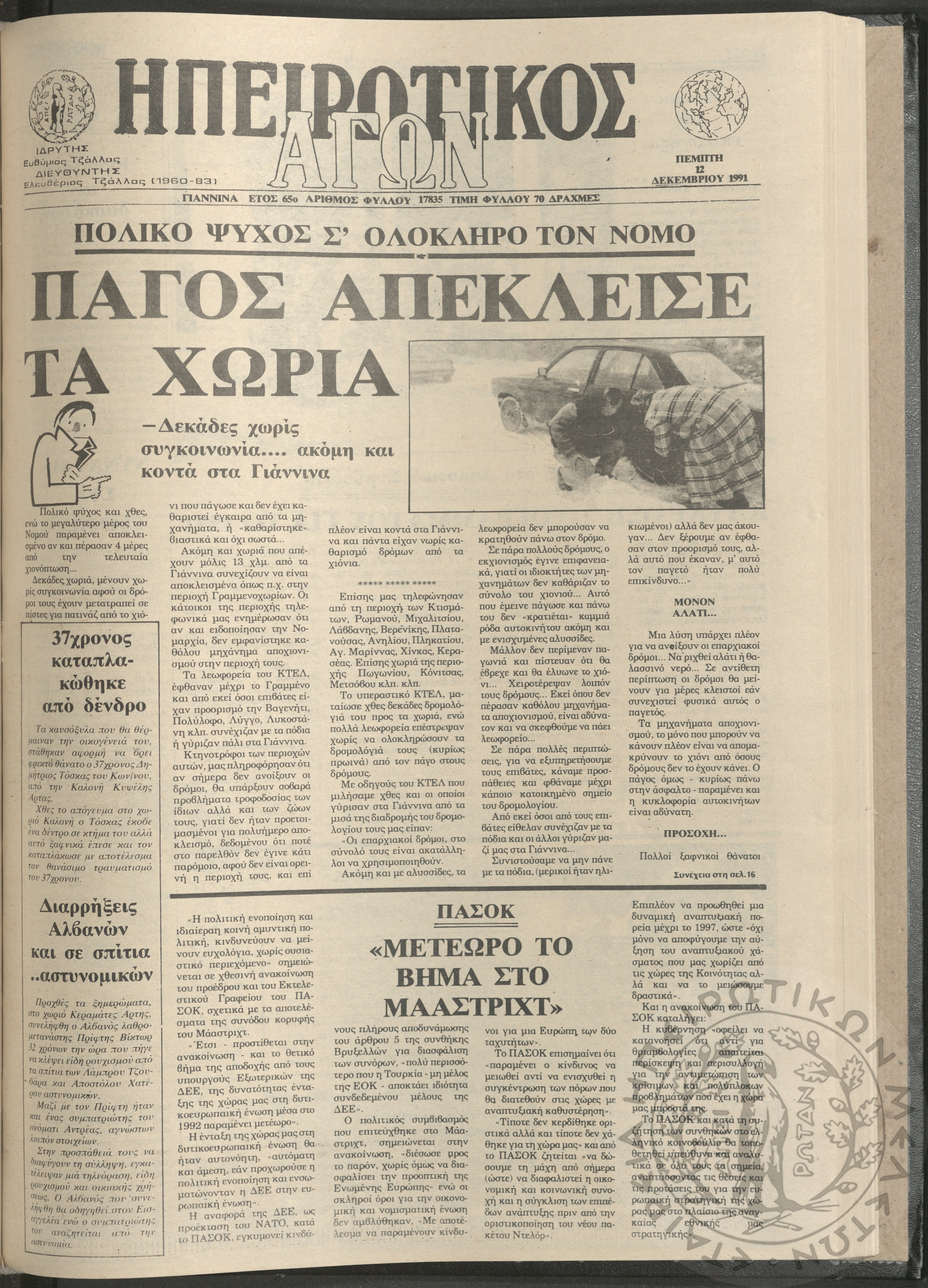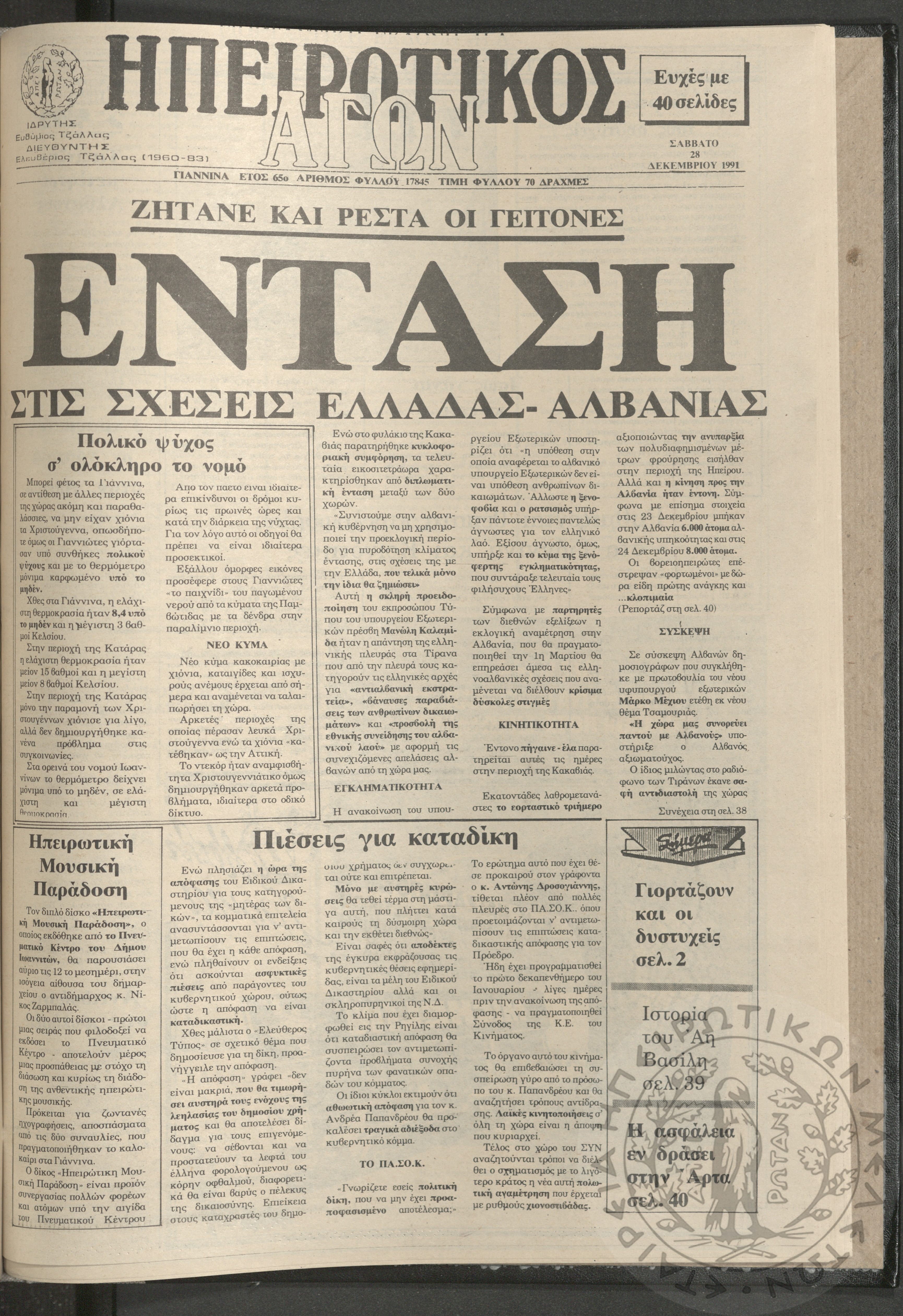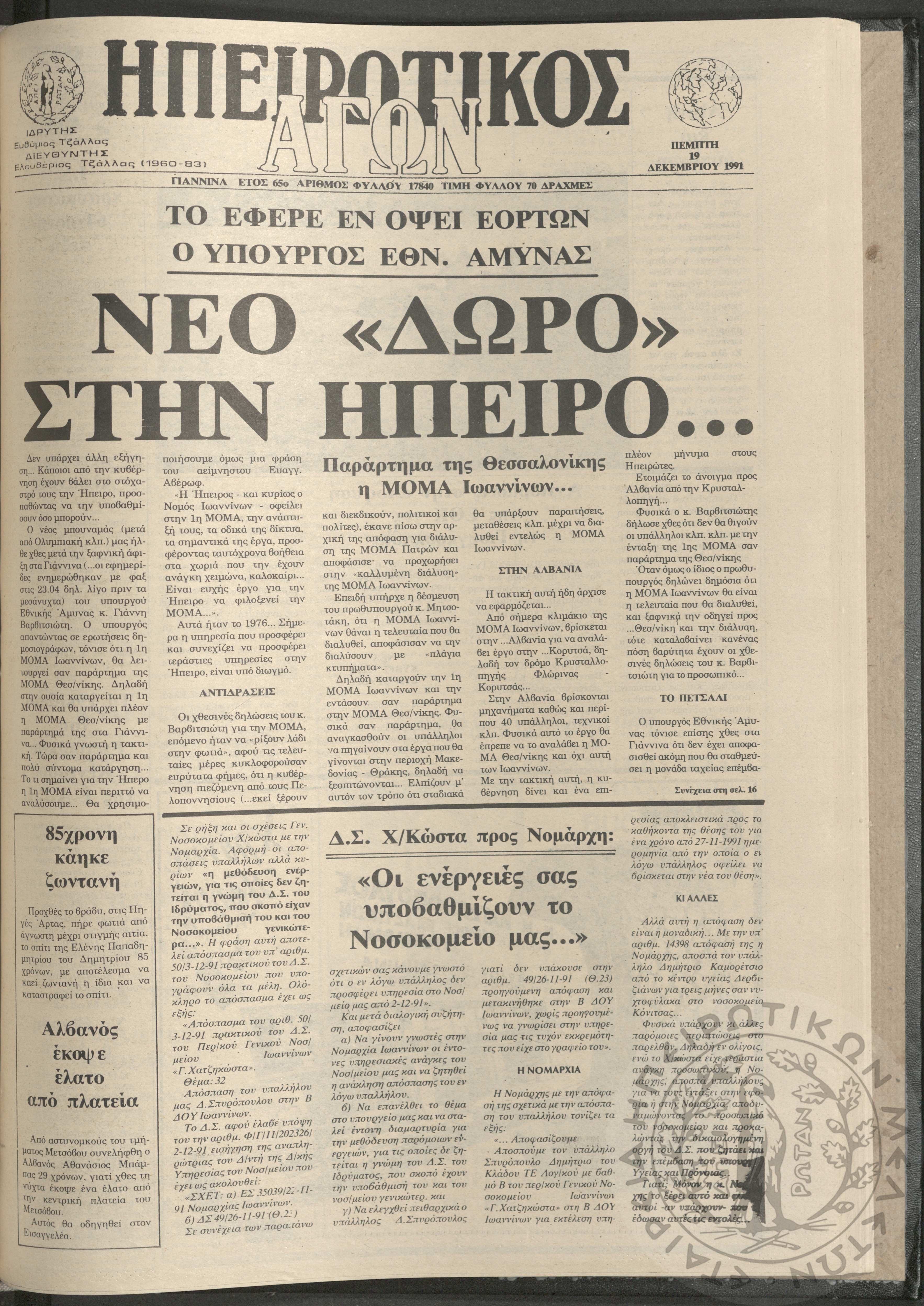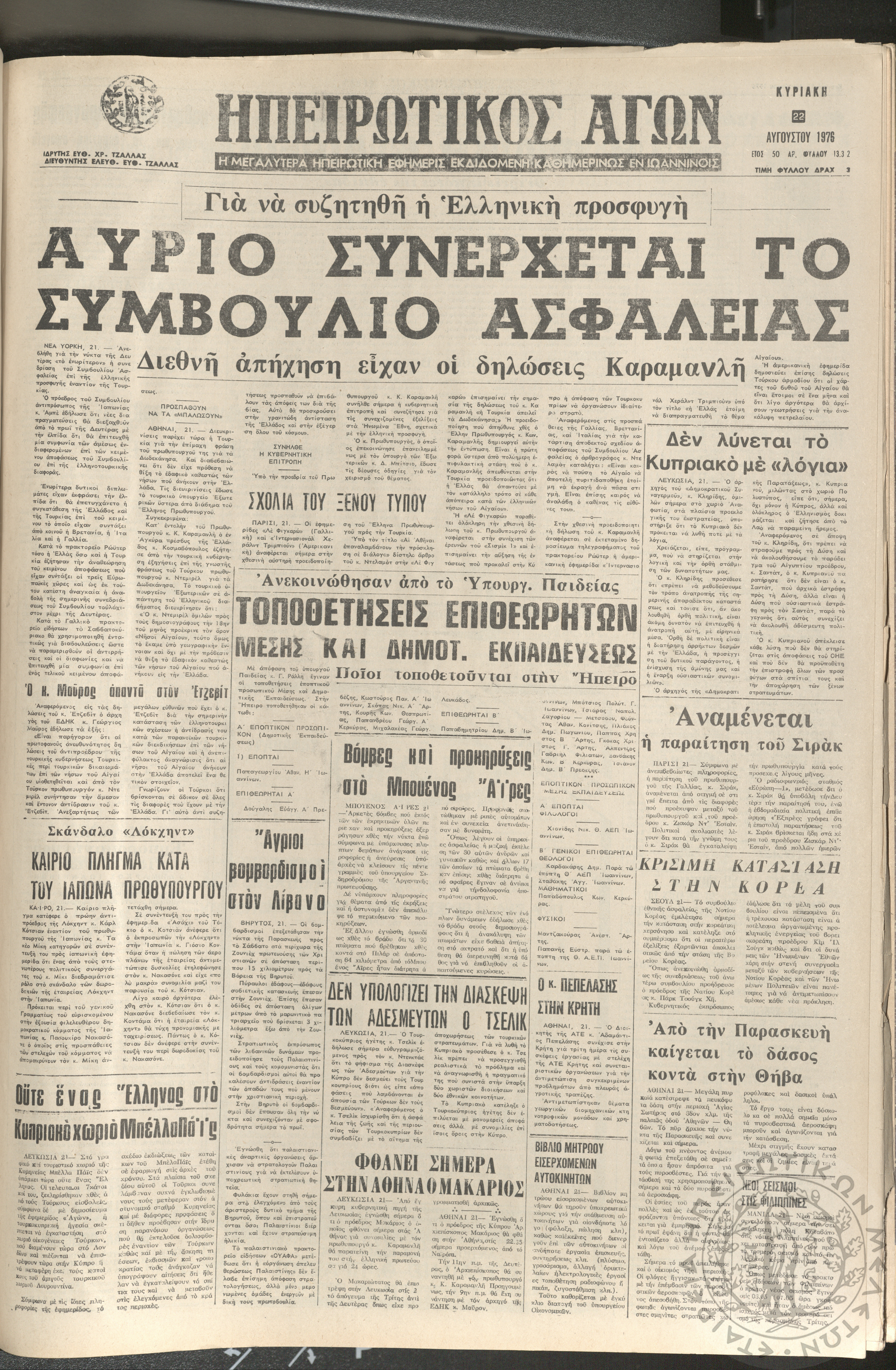 Ηπειρωτικός Αγών : η μεγαλυτέρα ηπειρωτική εφημερίς εκδιδόμενη καθημερινώς εν Ιωαννίνοις 1976 φ. (13319)Έτος 50, Φ. 13319...
