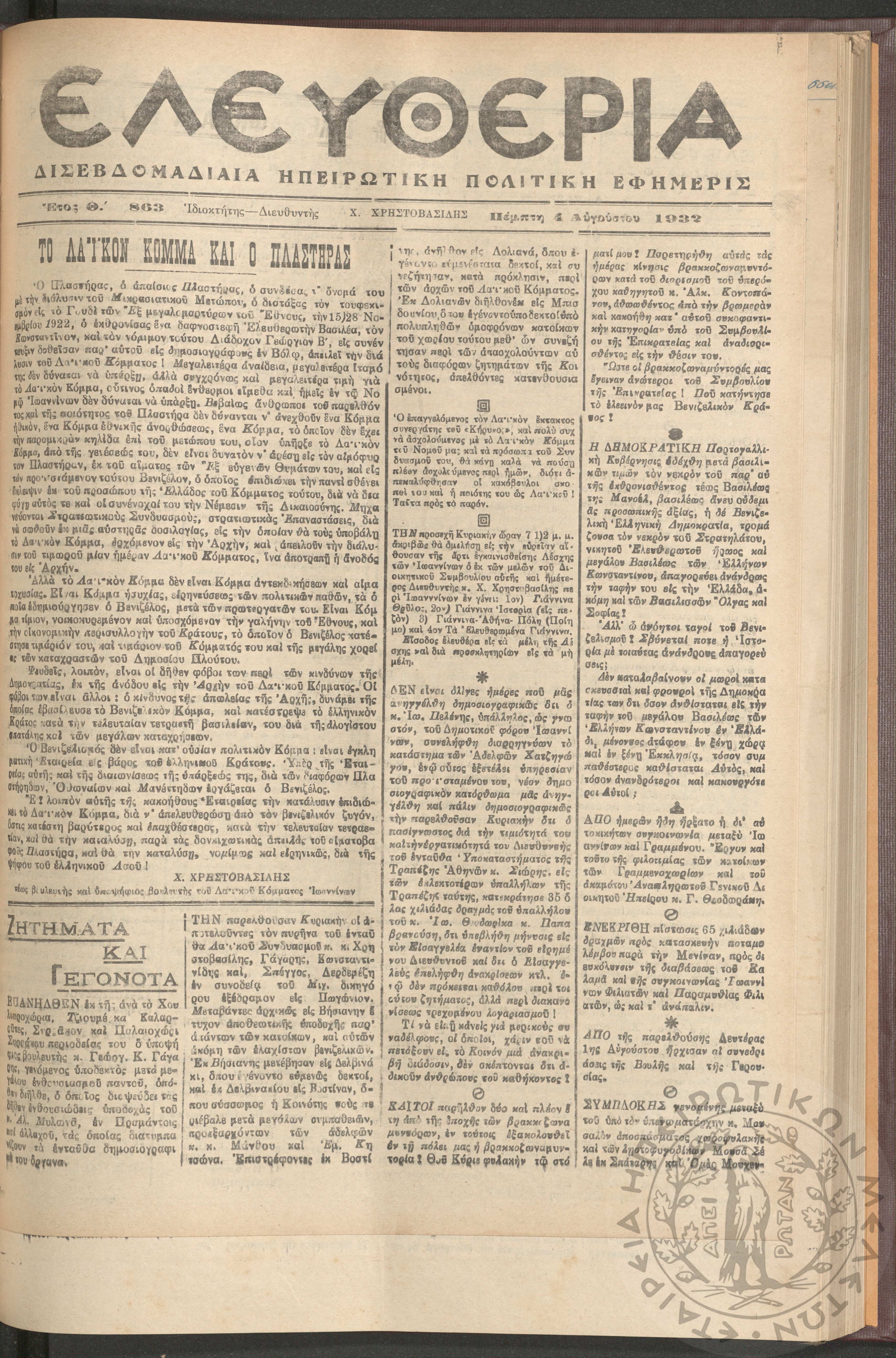Ελευθερία: δισεβδομαδιαία Ηπειρωτική πολιτική εφημερίς (16 Απριλίου 1934)Έτος ΙΒ', φ. 16 Απριλίου 1934...