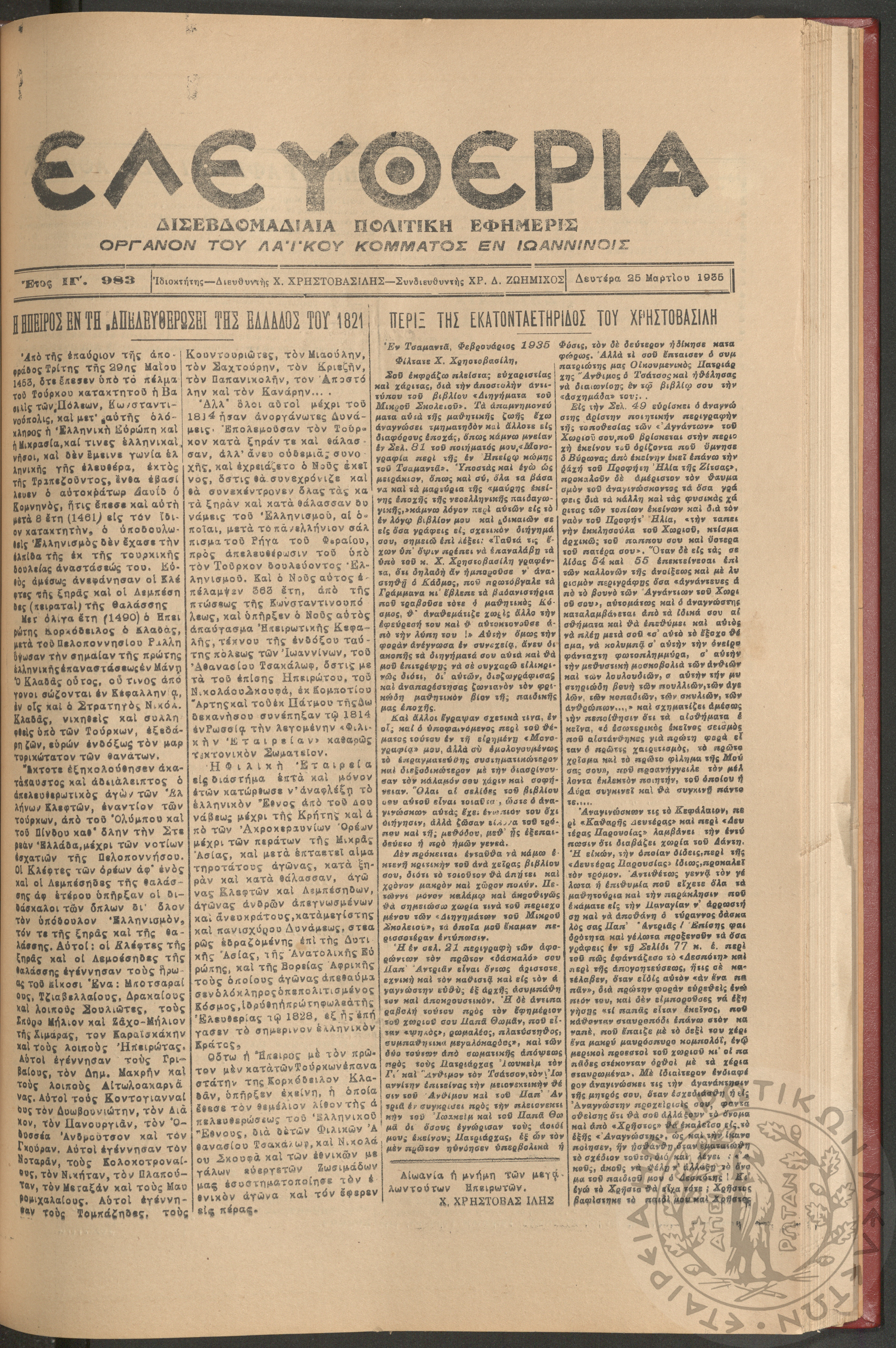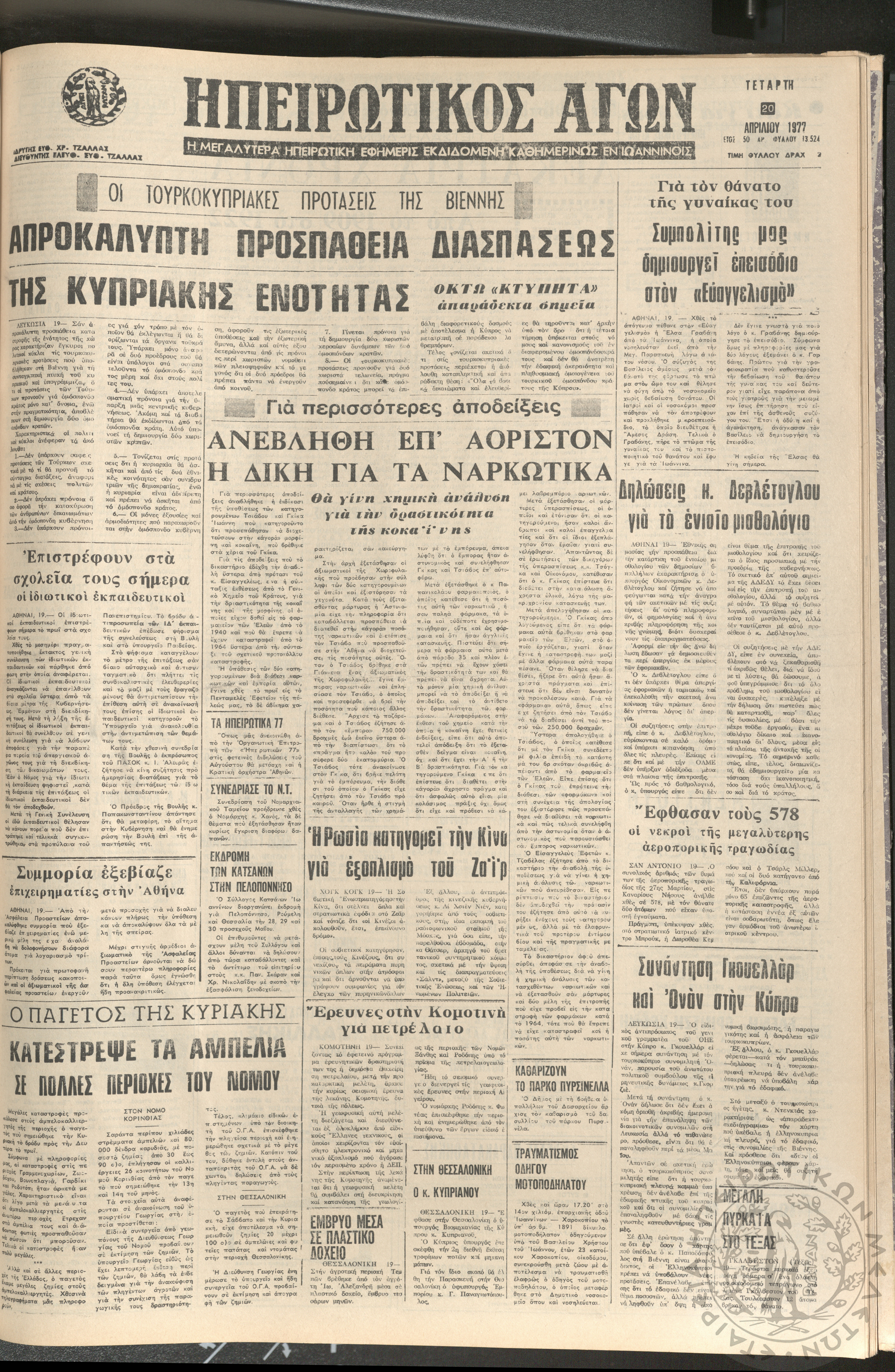 Ηπειρωτικός Αγών : η μεγαλυτέρα ηπειρωτική εφημερίς εκδιδομένη καθημερινώς εν Ιωαννίνοις, 1977, φ. 13525Έτος 50, Φ. 13525...