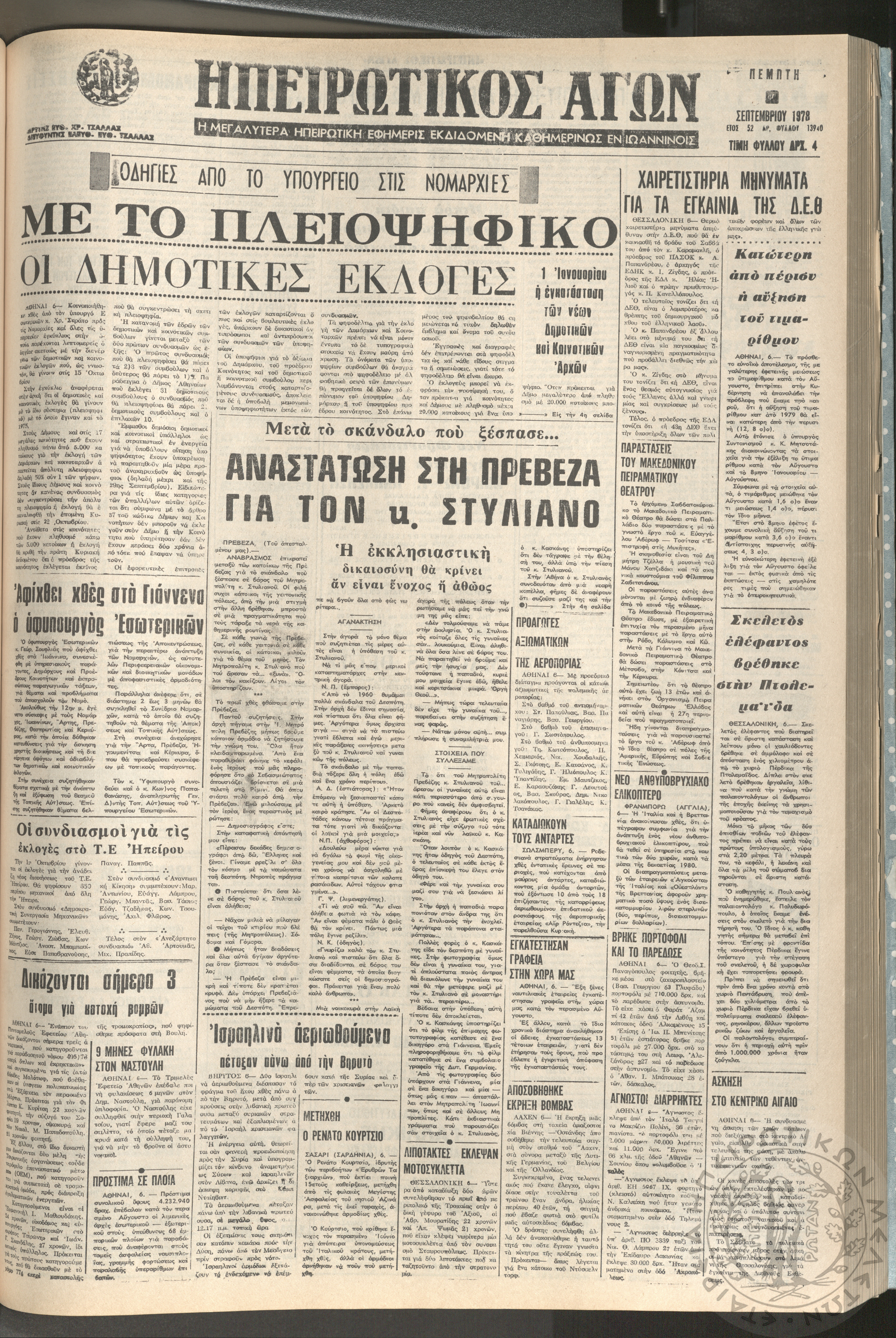 Ηπειρωτικός Αγών : η μεγαλυτέρα ηπειρωτική εφημερίς εκδιδομένη καθημερινώς εν Ιωαννίνοις, 1978, φ. 13940Έτος 51, φ. 13940...
