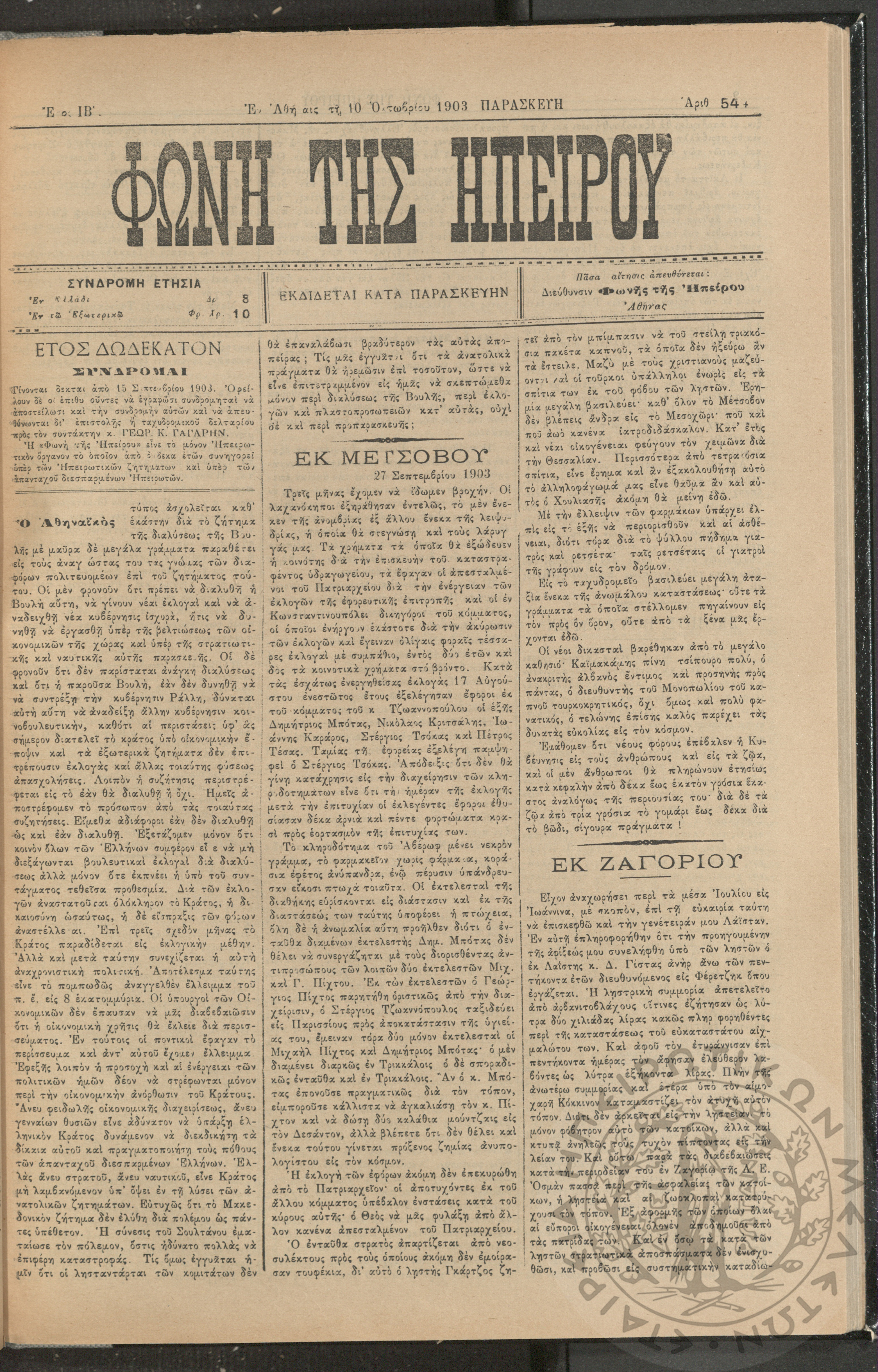 Φωνή της Ηπείρου, 1903, φ. 544