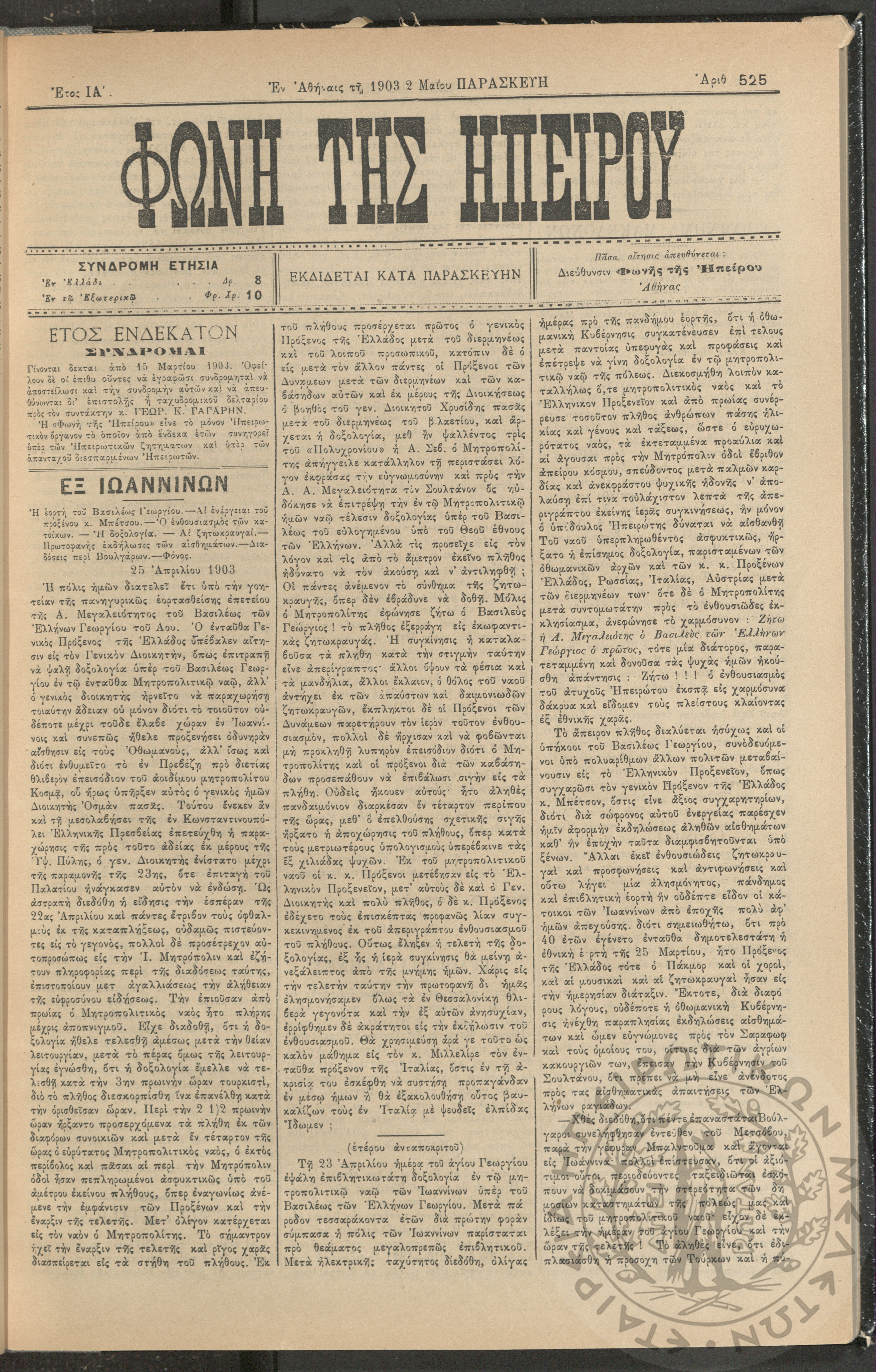 Φωνή της Ηπείρου, 1903, φ. 525