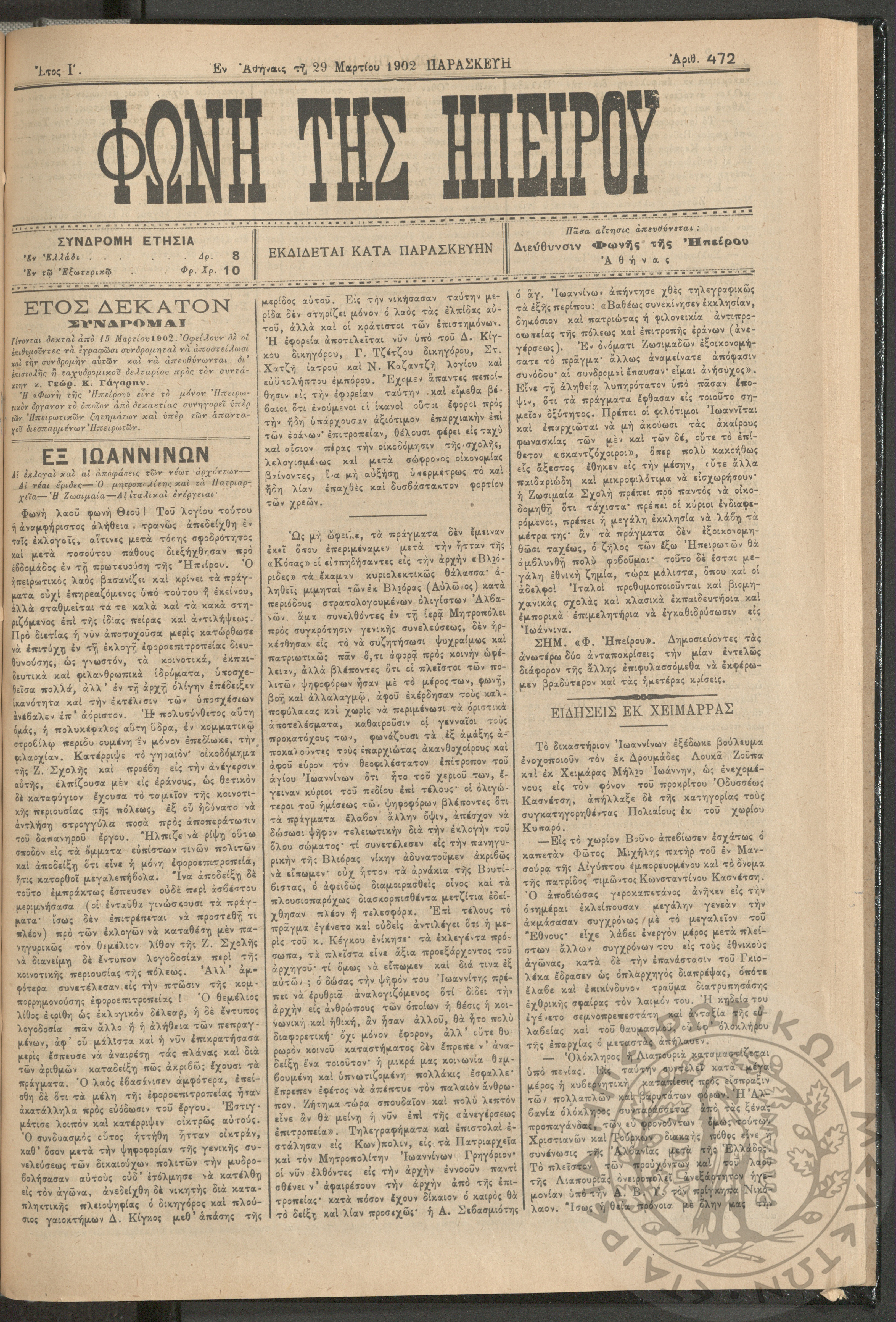 Φωνή της Ηπείρου, 1902, φ. 472