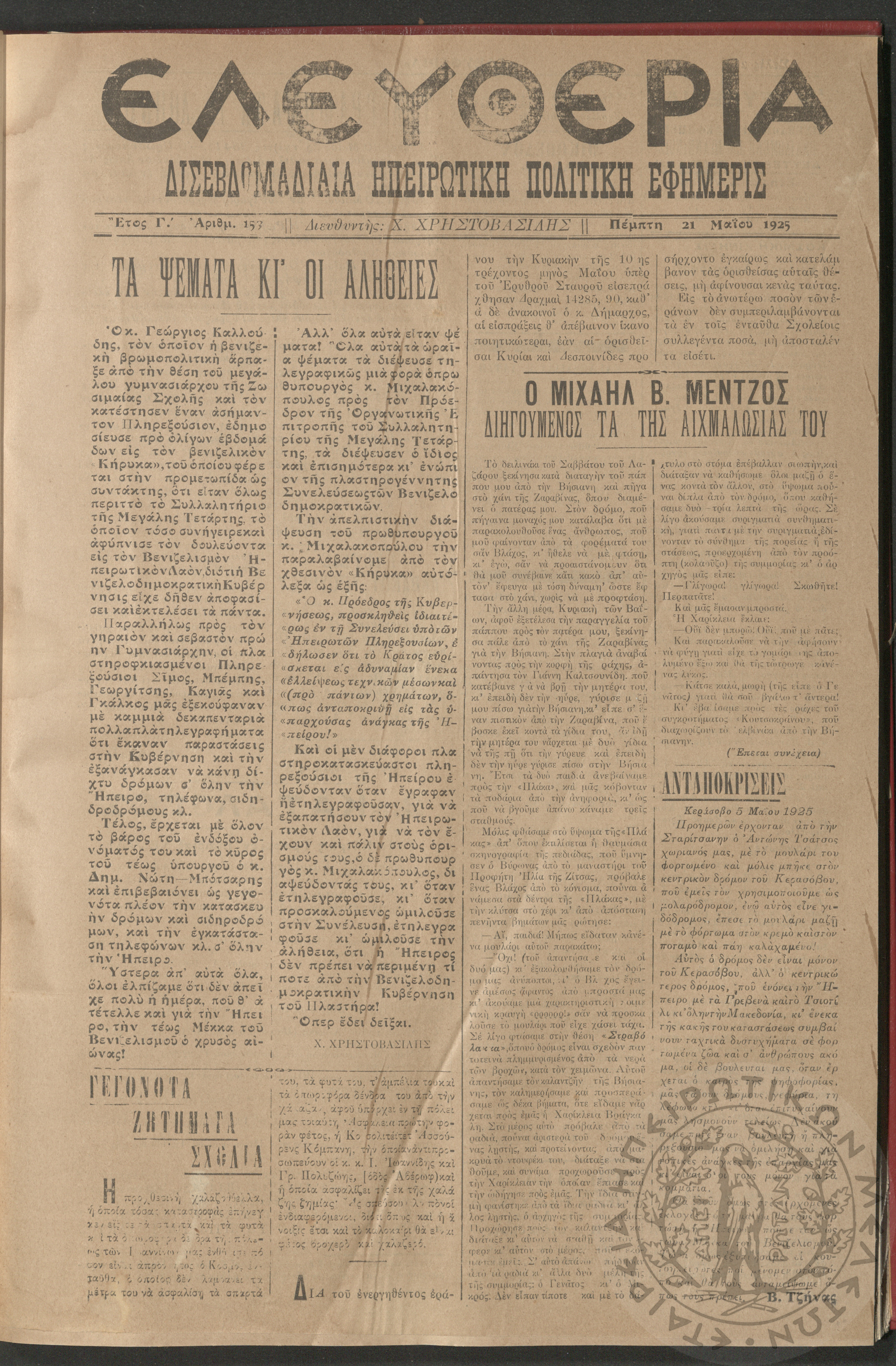 Ελευθερία: δισεβδομαδιαία Ηπειρωτική πολιτική εφημερίς, 1925, φ. 153