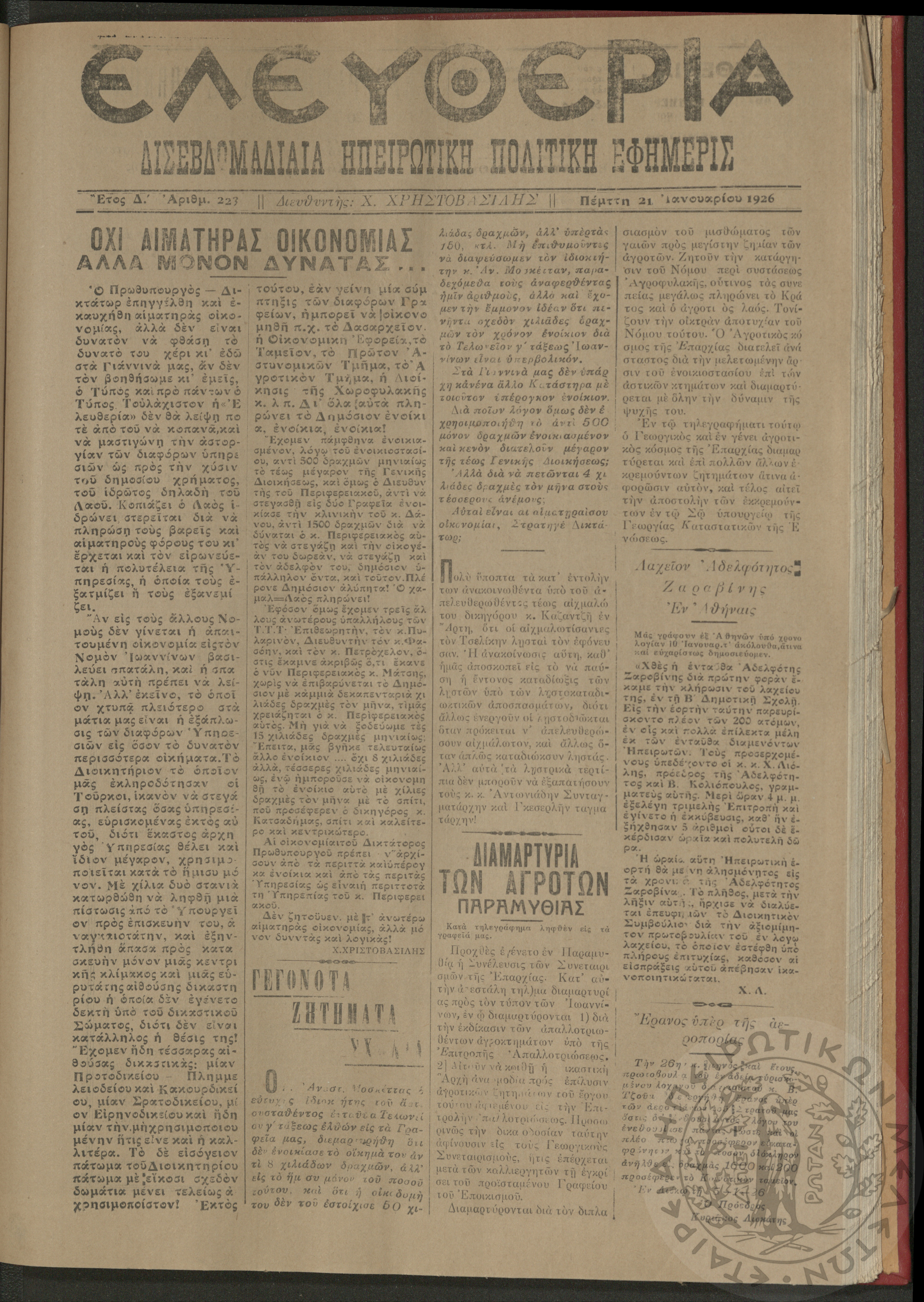 Ελευθερία: δισεβδομαδιαία Ηπειρωτική πολιτική εφημερίς, 1926, φ. 223