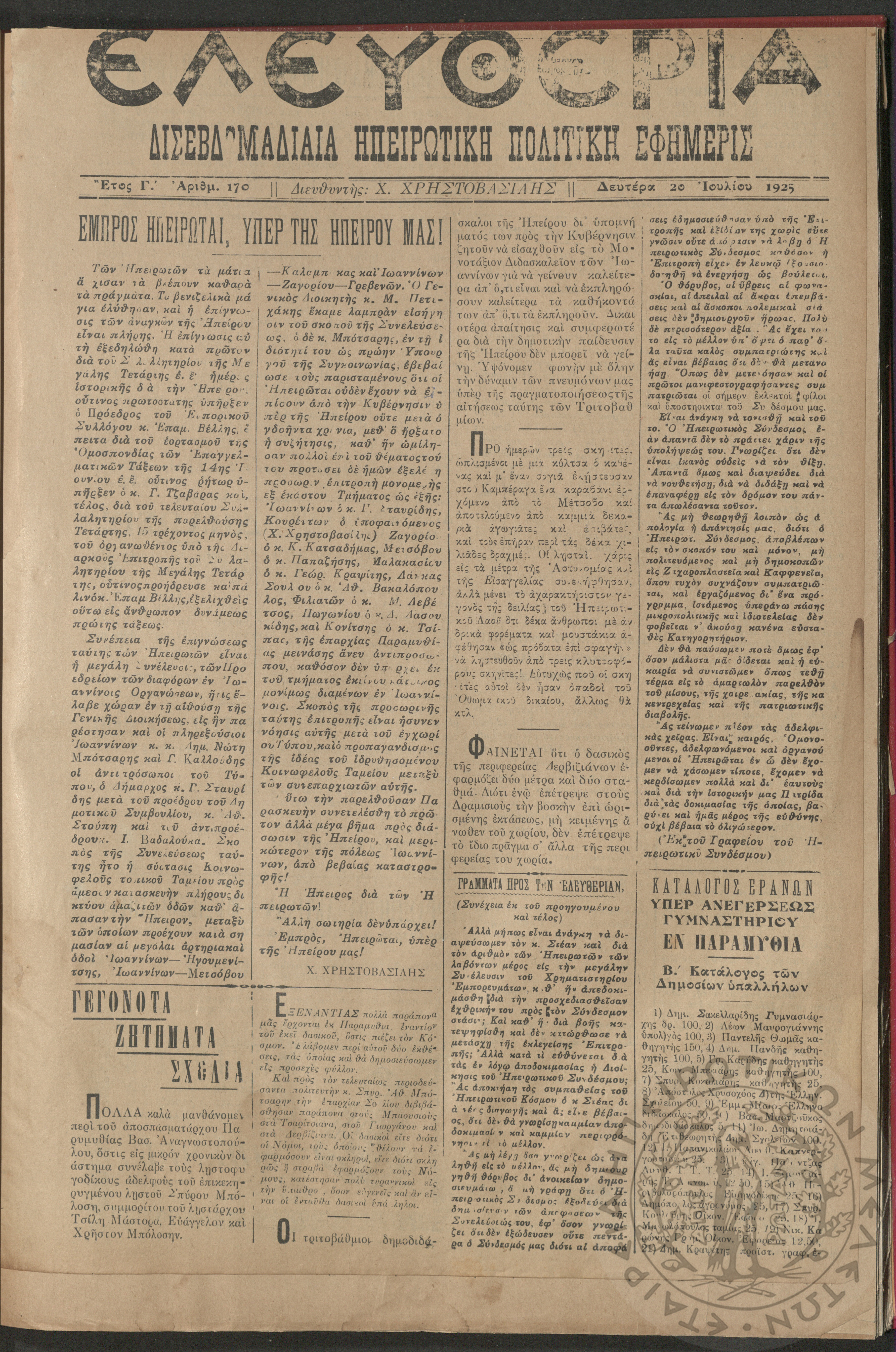 Ελευθερία: δισεβδομαδιαία Ηπειρωτική πολιτική εφημερίς, 1925, φ. 170
