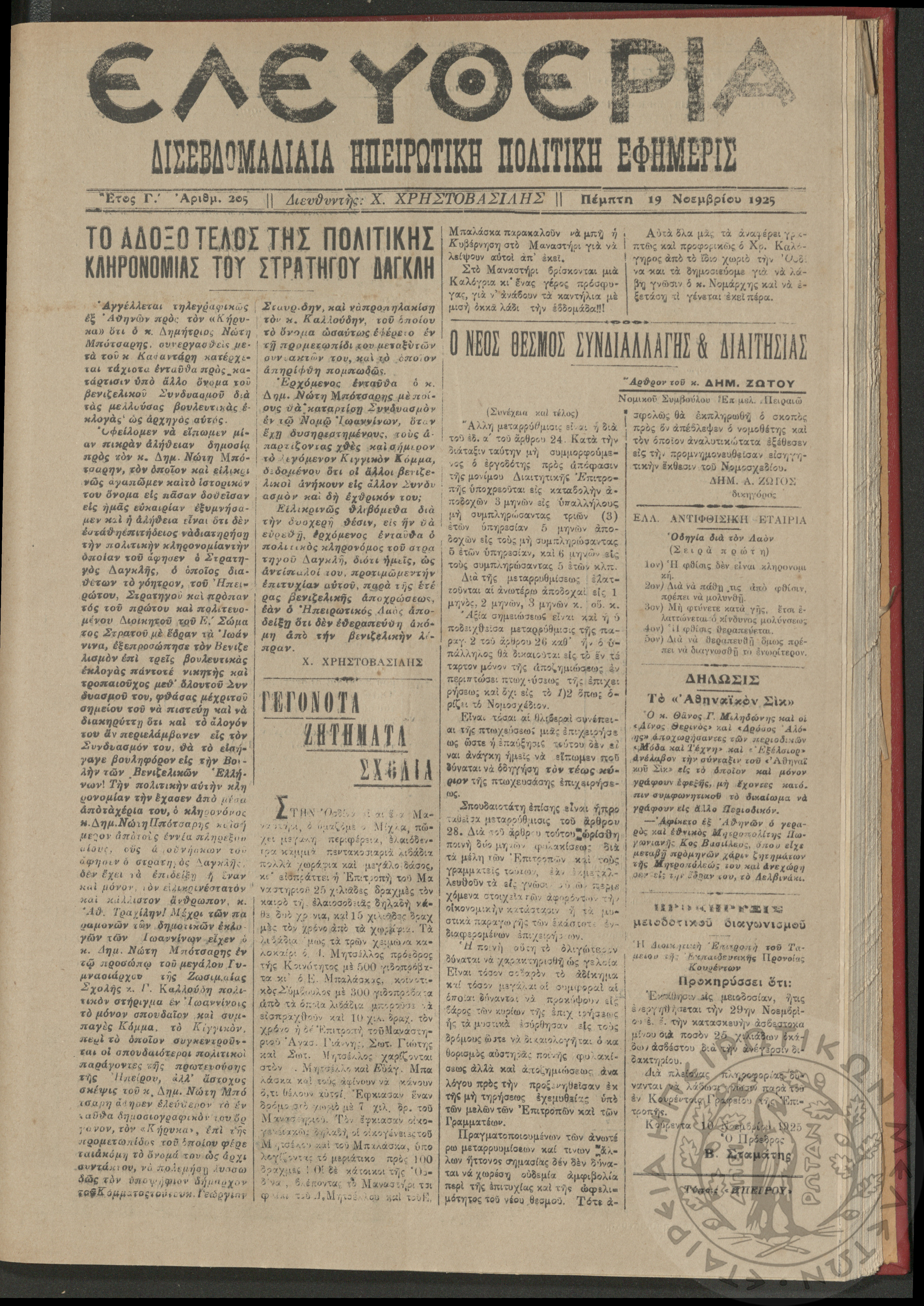 Ελευθερία: δισεβδομαδιαία Ηπειρωτική πολιτική εφημερίς, 1925, φ. 205