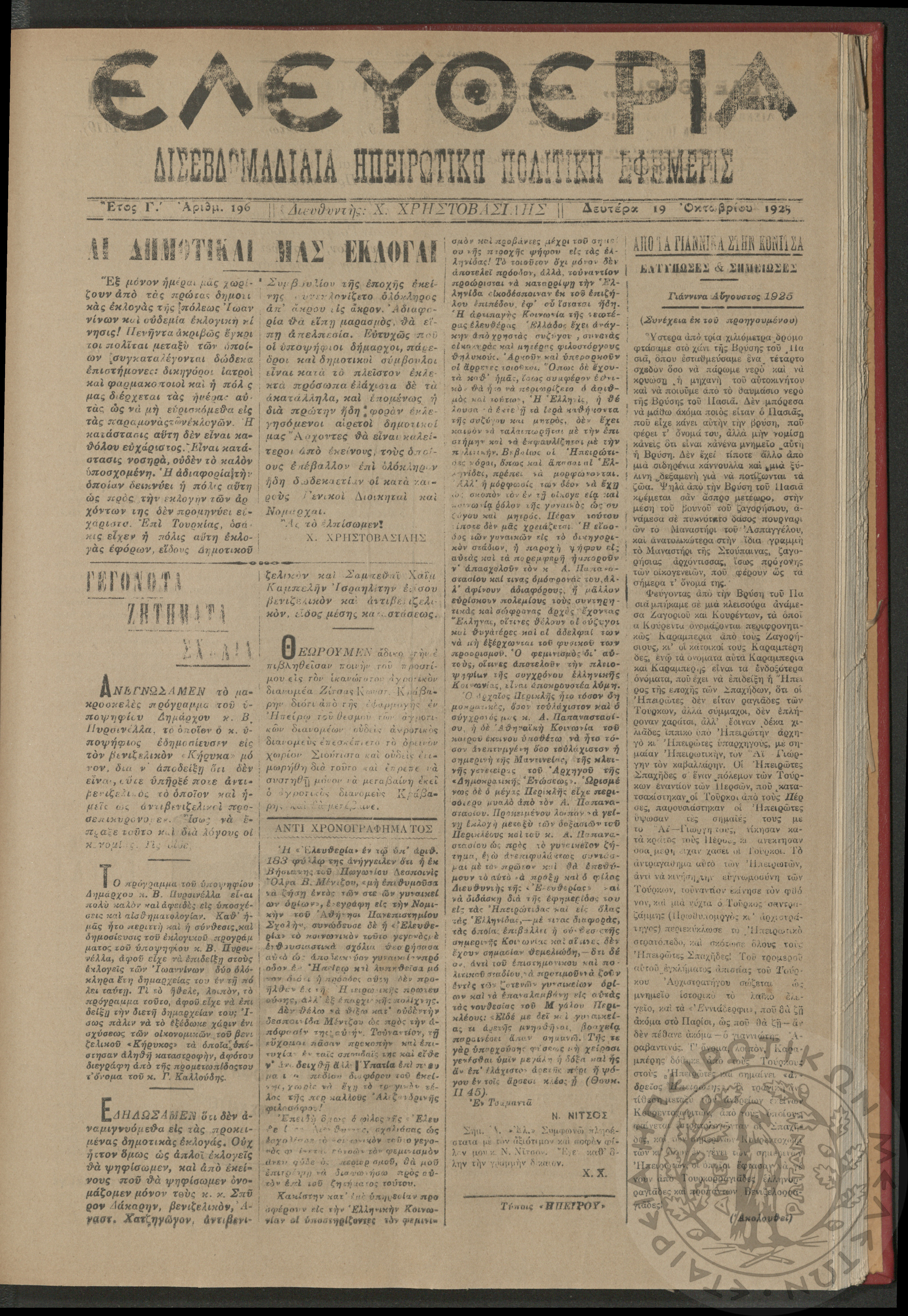 Ελευθερία: δισεβδομαδιαία Ηπειρωτική πολιτική εφημερίς, 1925, φ. 196