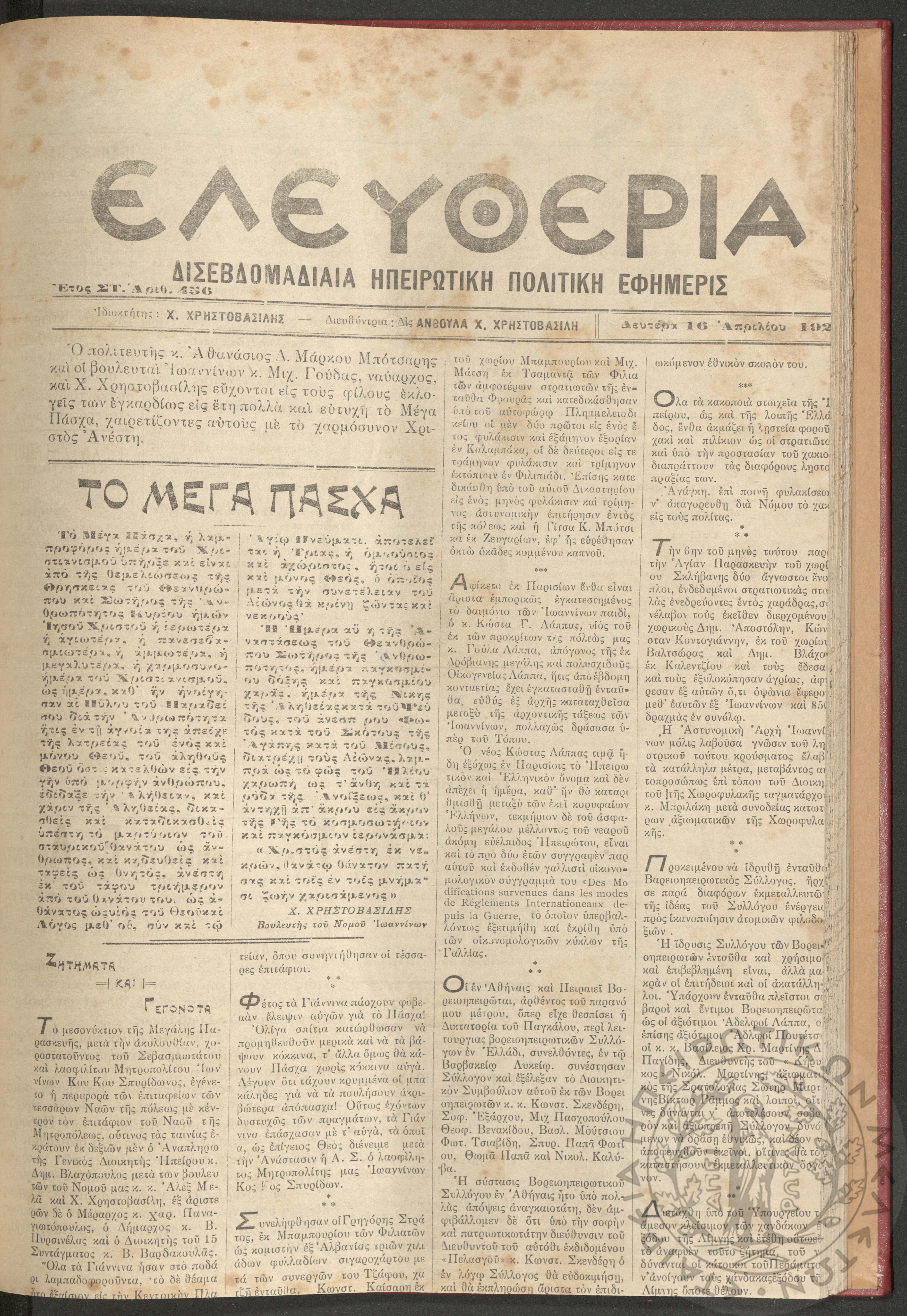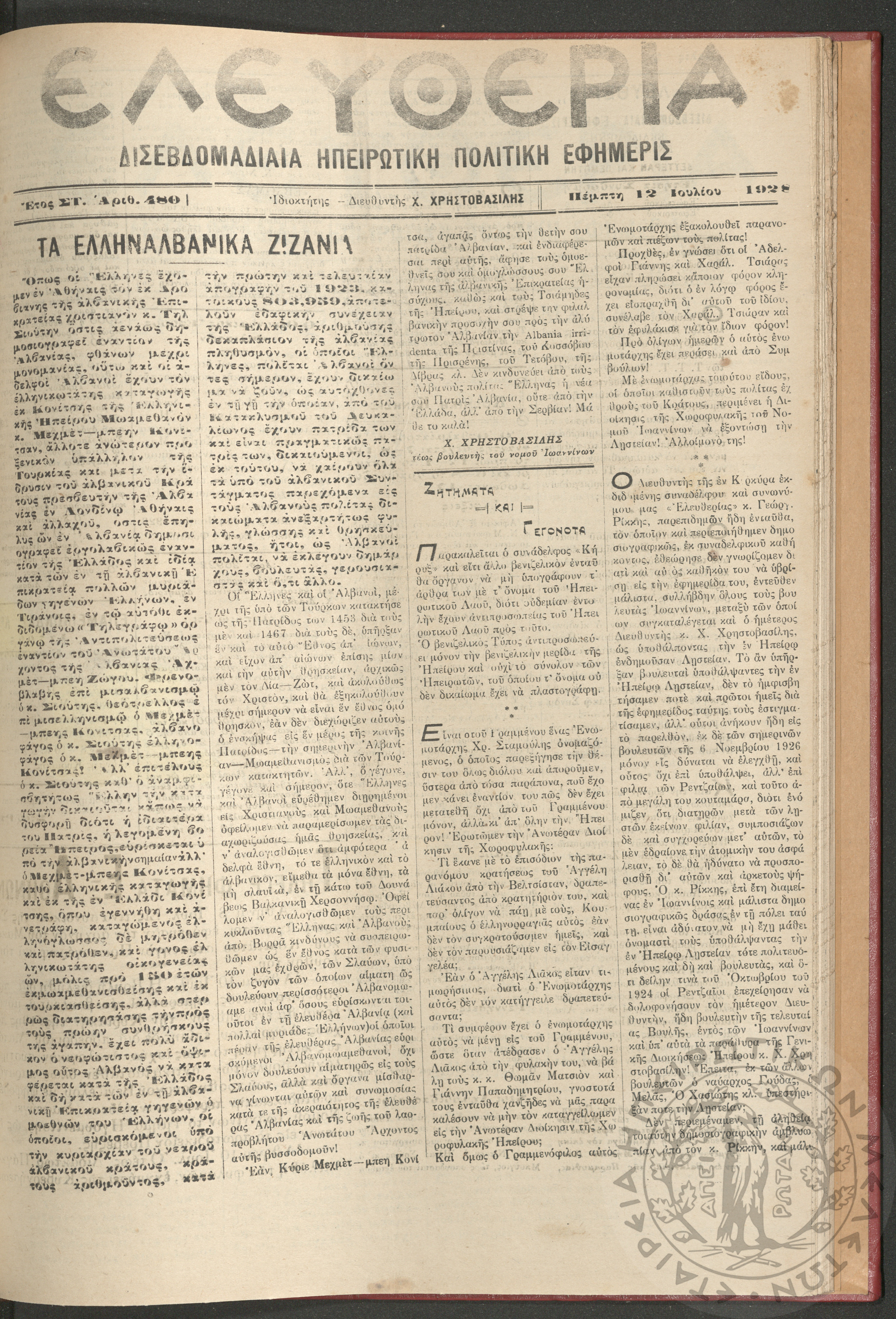 Ελευθερία: δισεβδομαδιαία Ηπειρωτική πολιτική εφημερίς, 1928, φ. 480