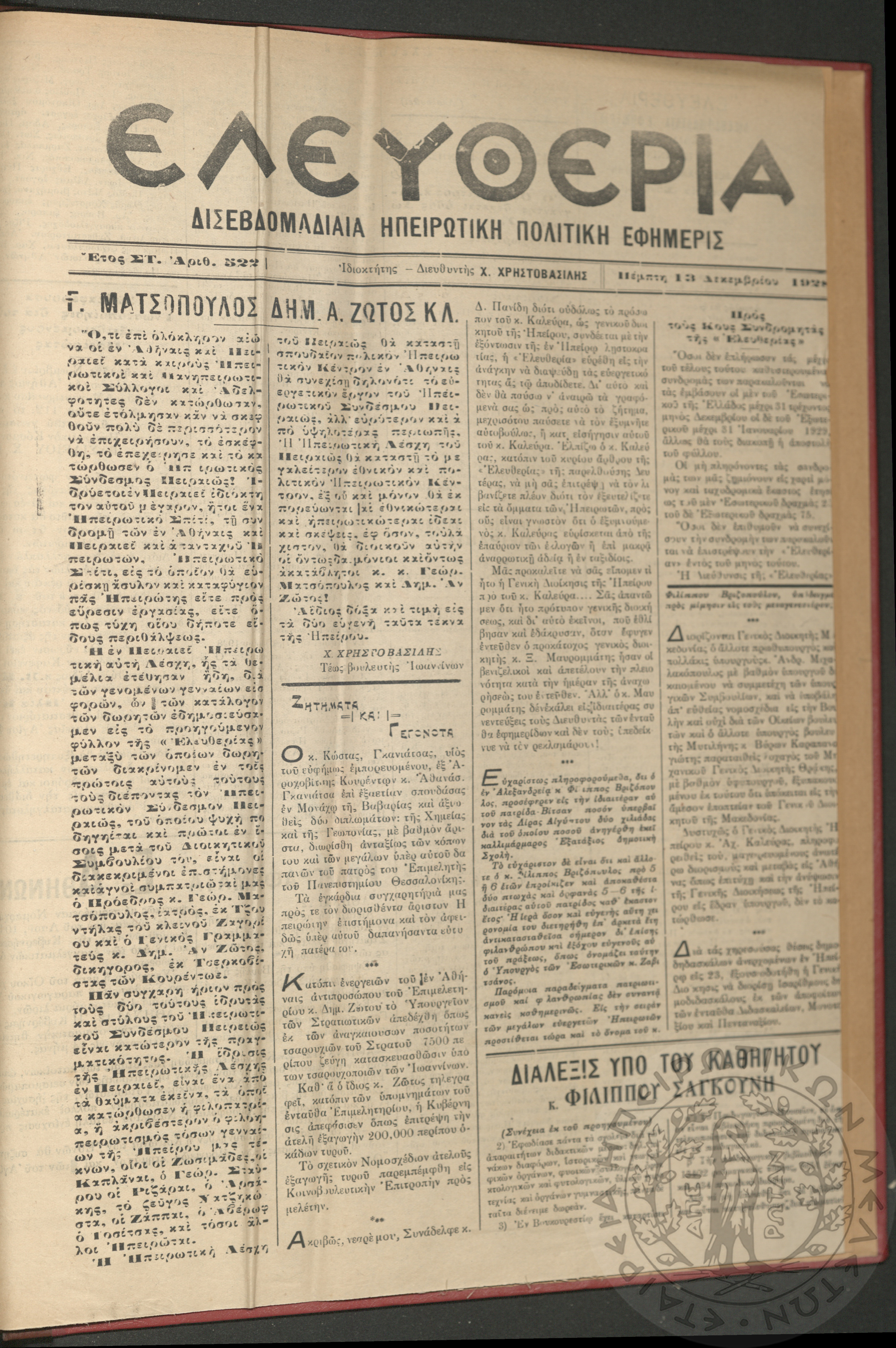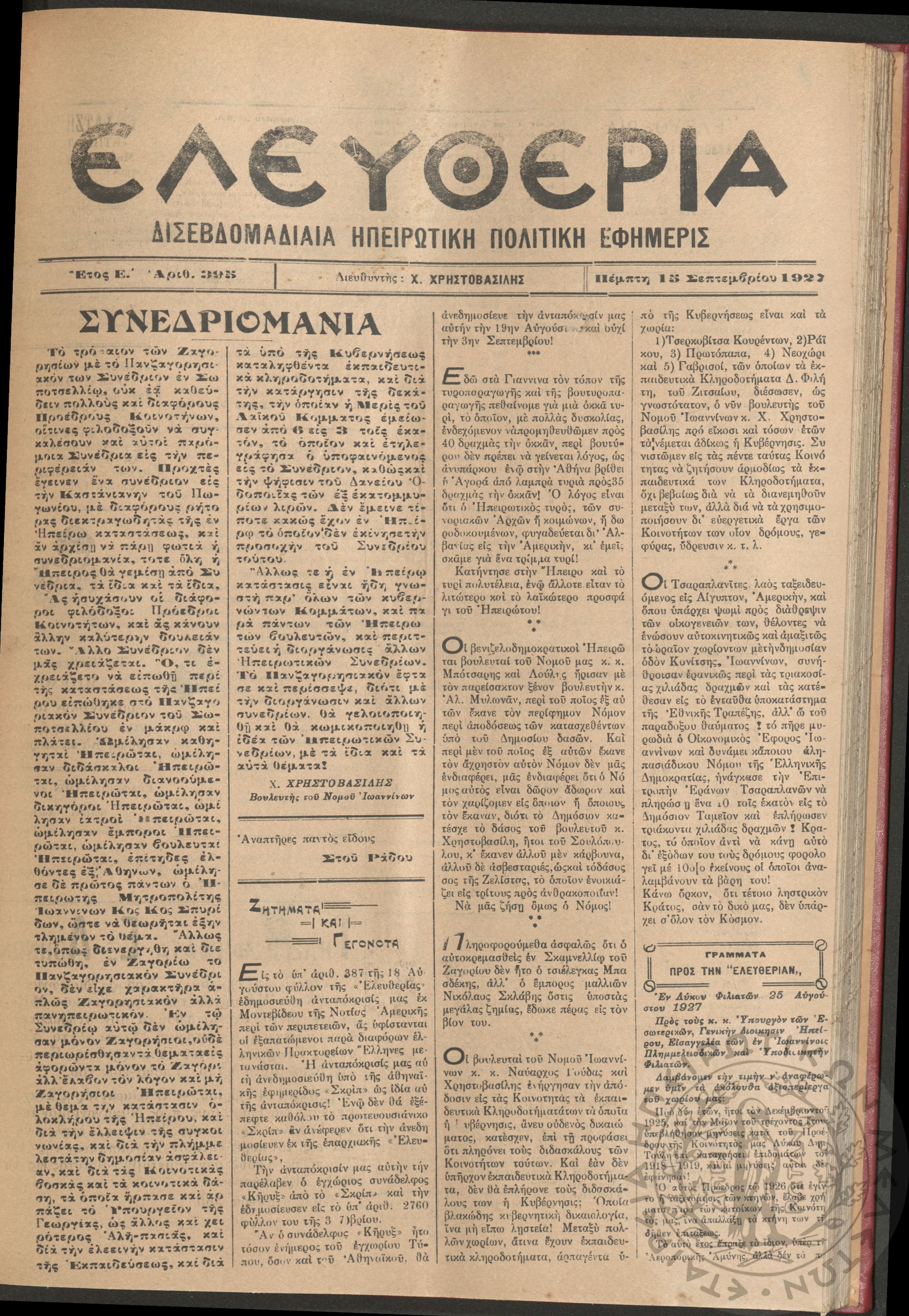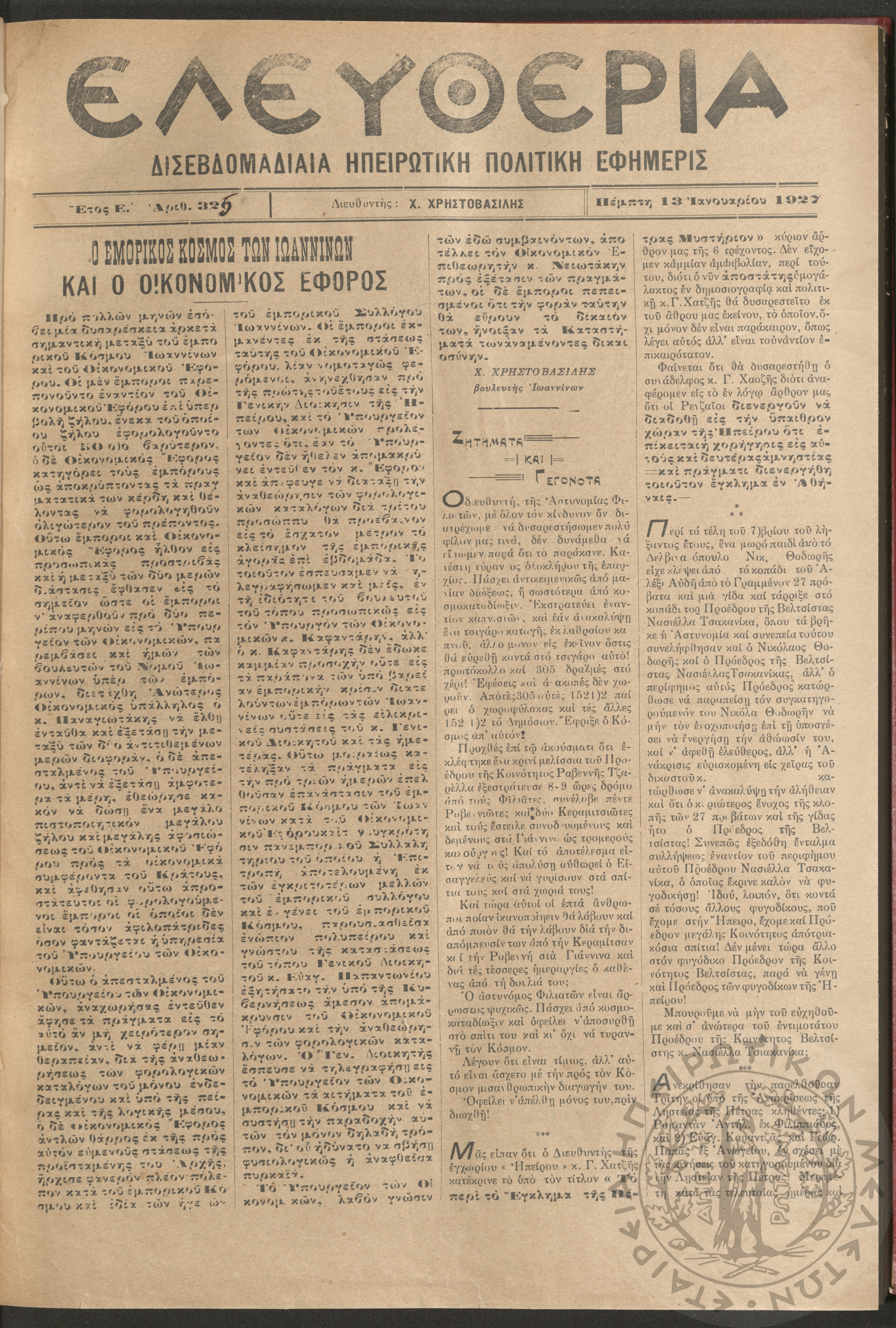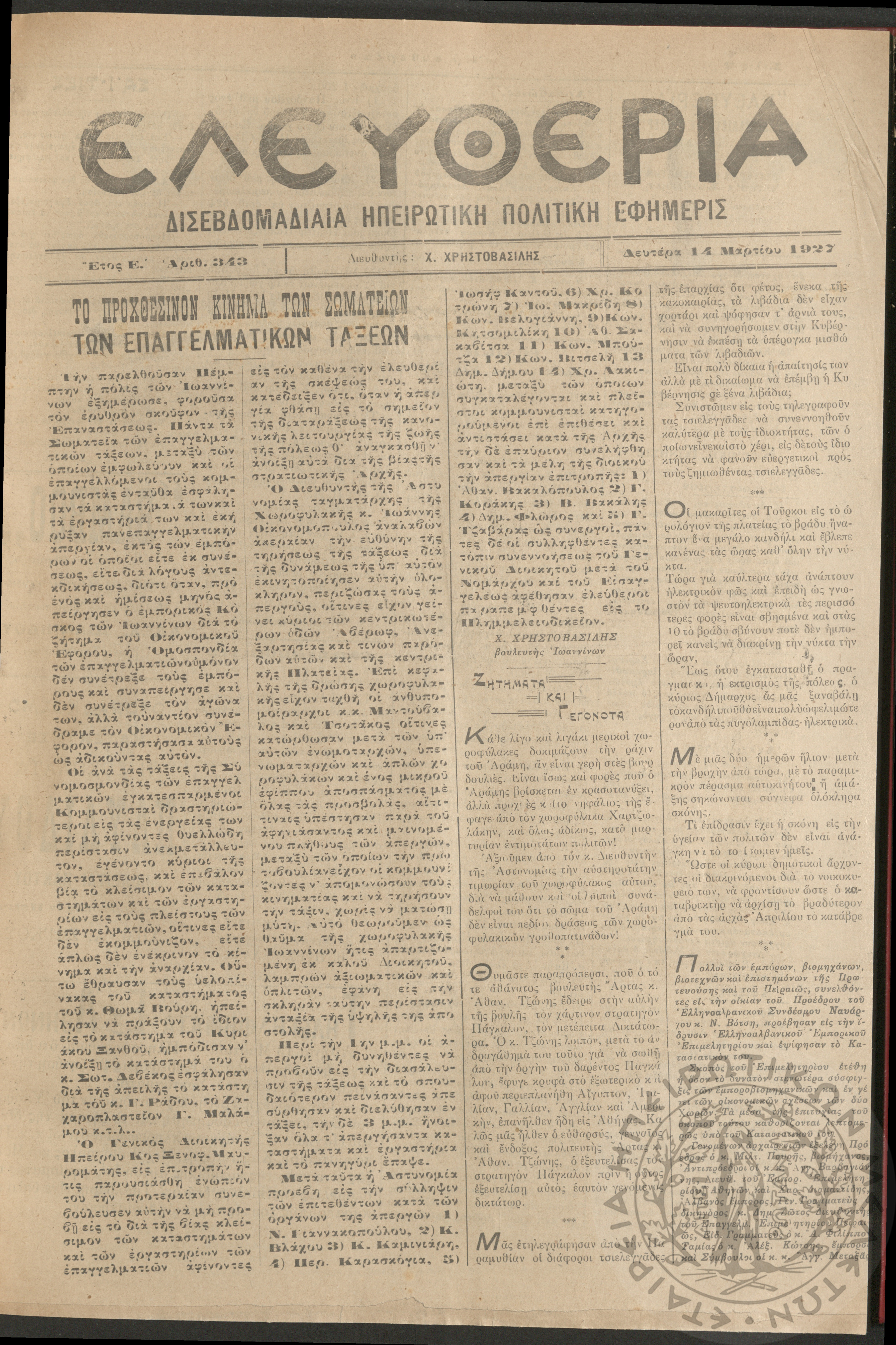 Ελευθερία: δισεβδομαδιαία Ηπειρωτική πολιτική εφημερίς, 1927, φ. 325