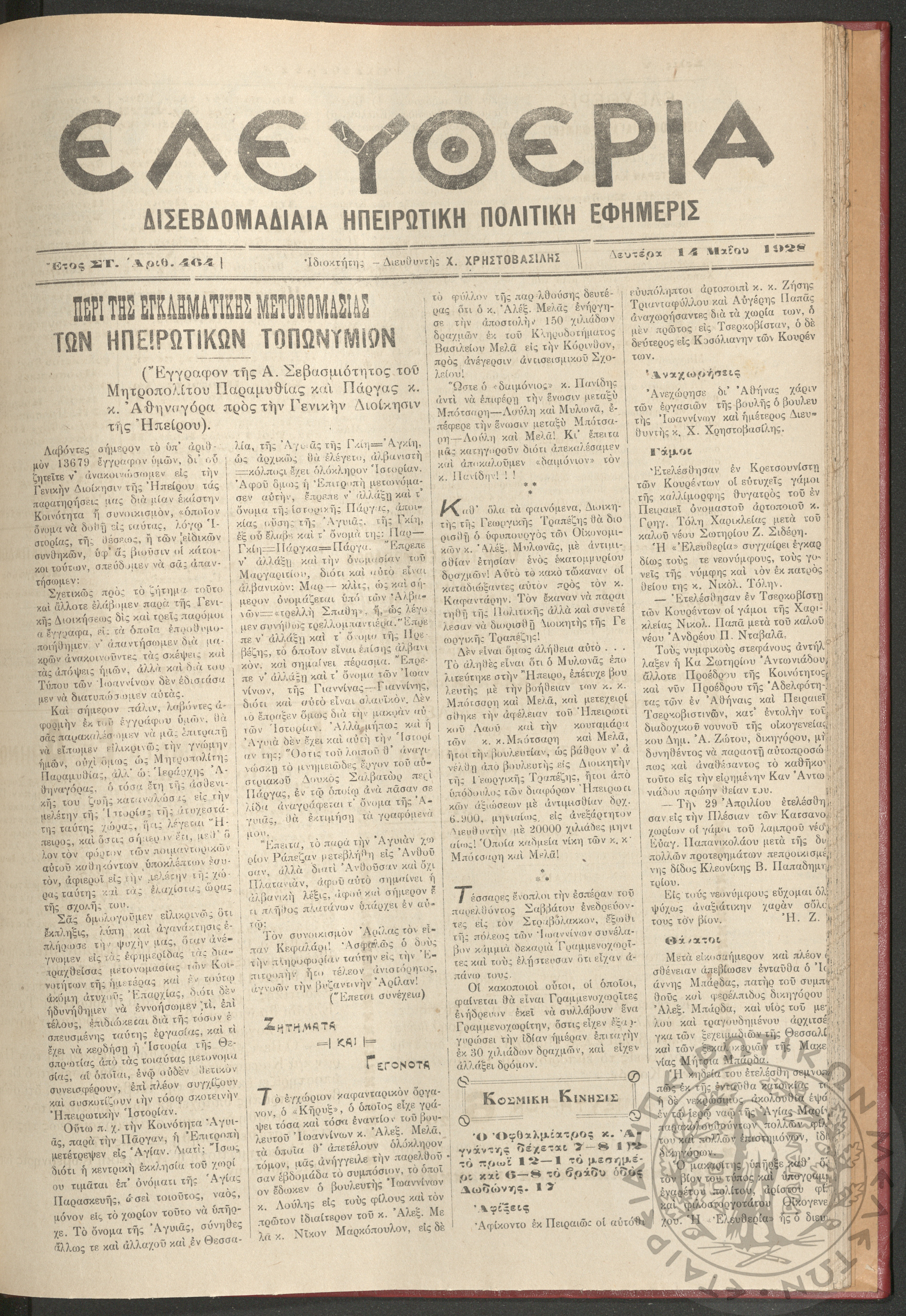 Ελευθερία: δισεβδομαδιαία Ηπειρωτική πολιτική εφημερίς, 1928, φ. 464