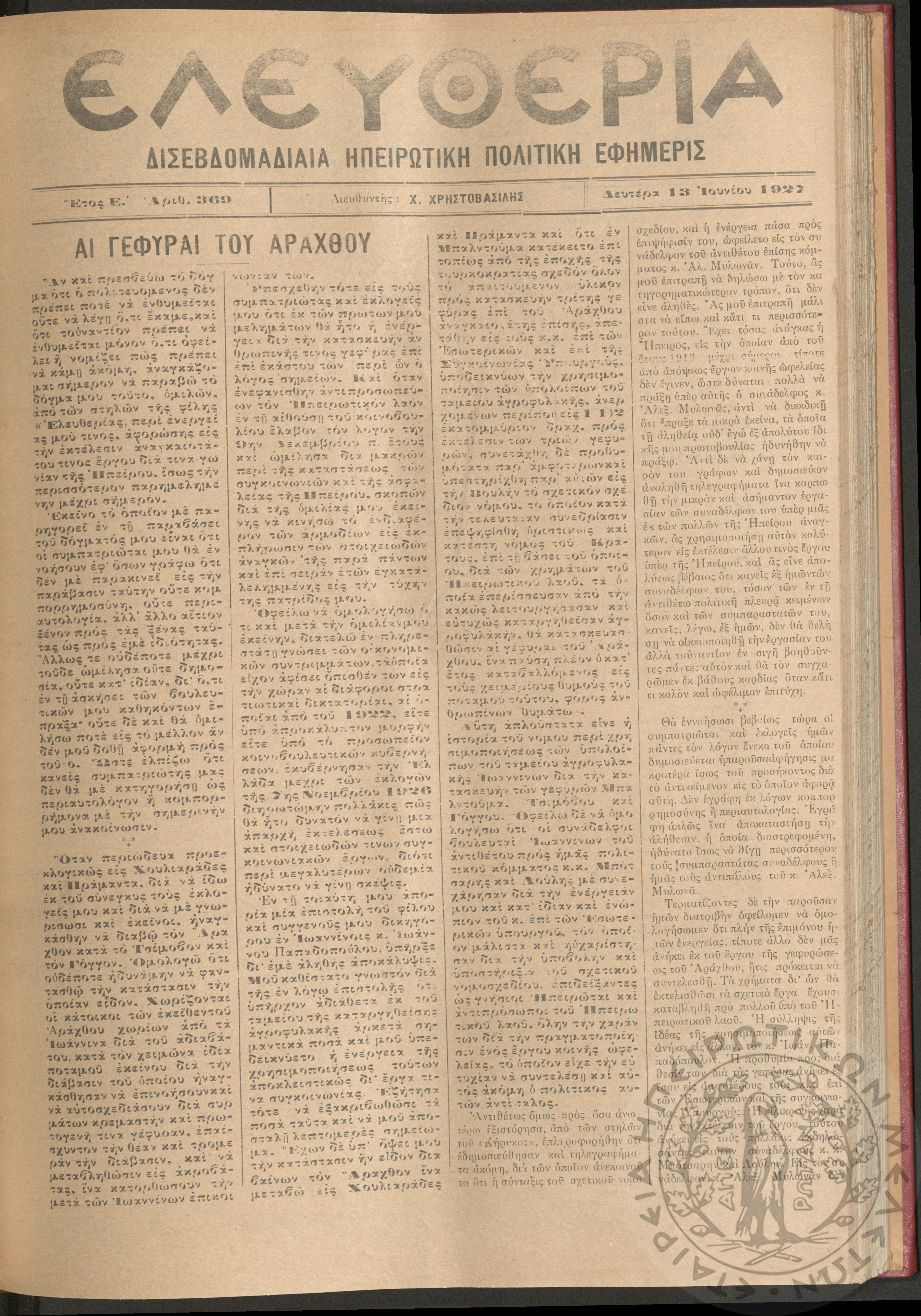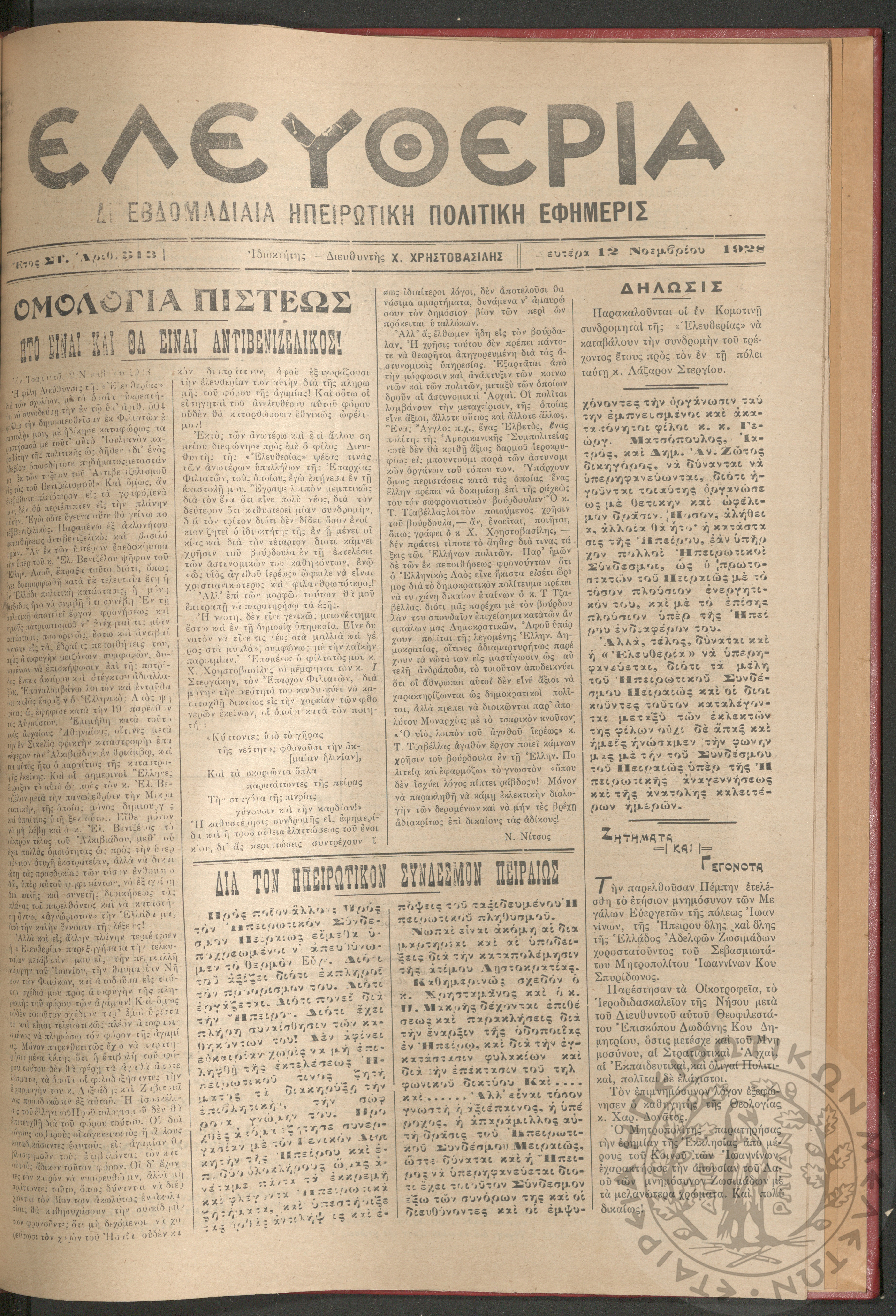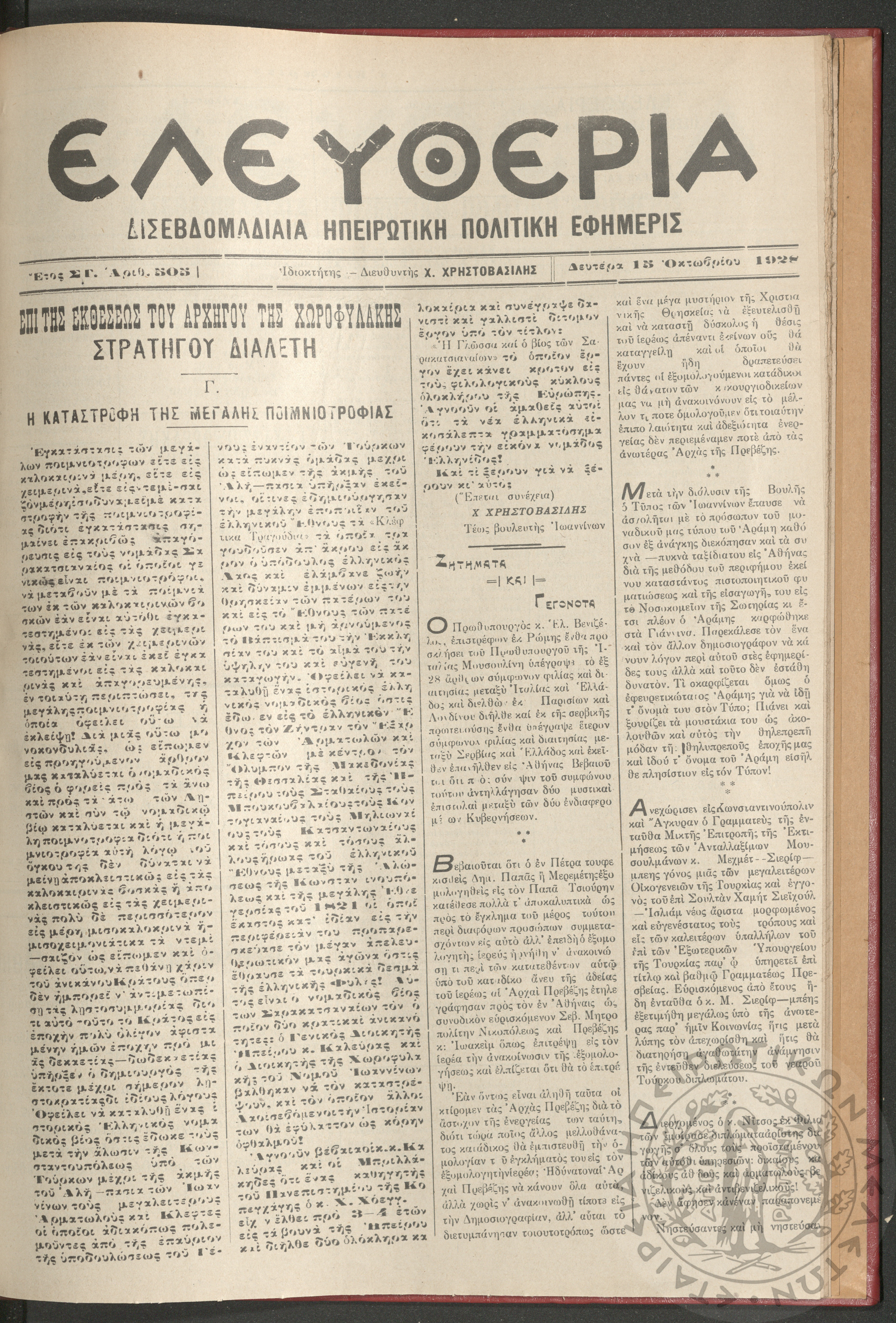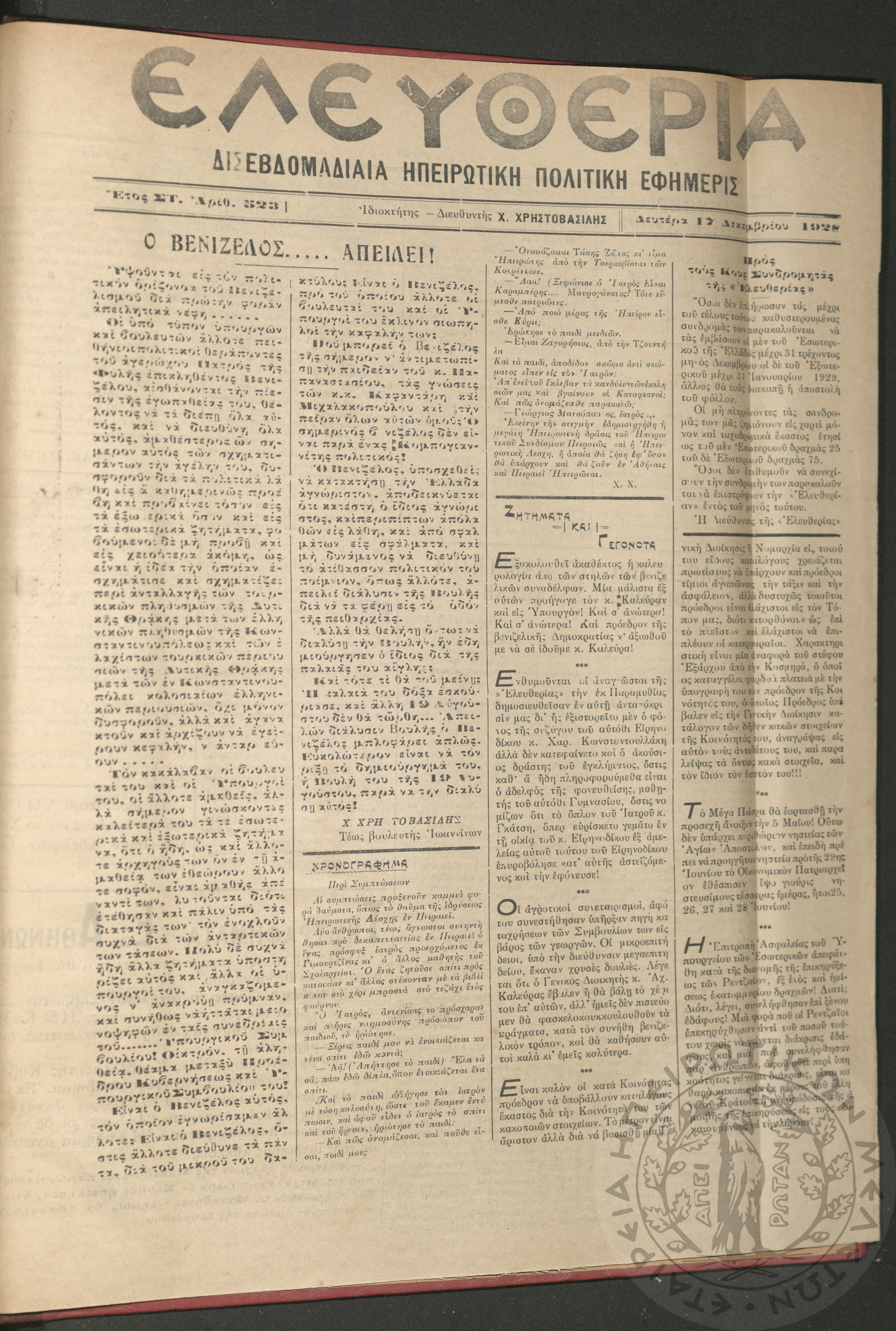 Ελευθερία: δισεβδομαδιαία Ηπειρωτική πολιτική εφημερίς, 1928, φ. 523