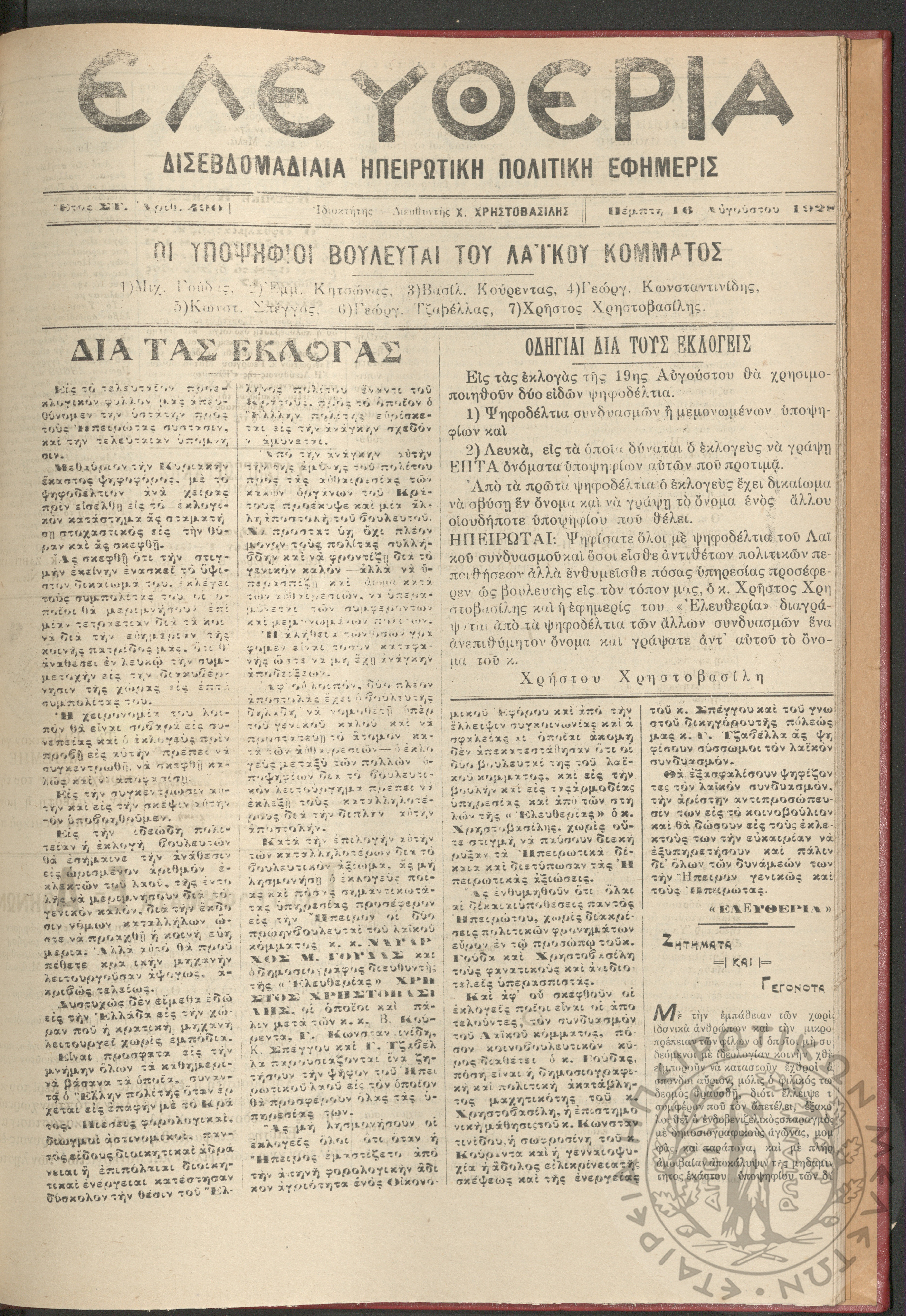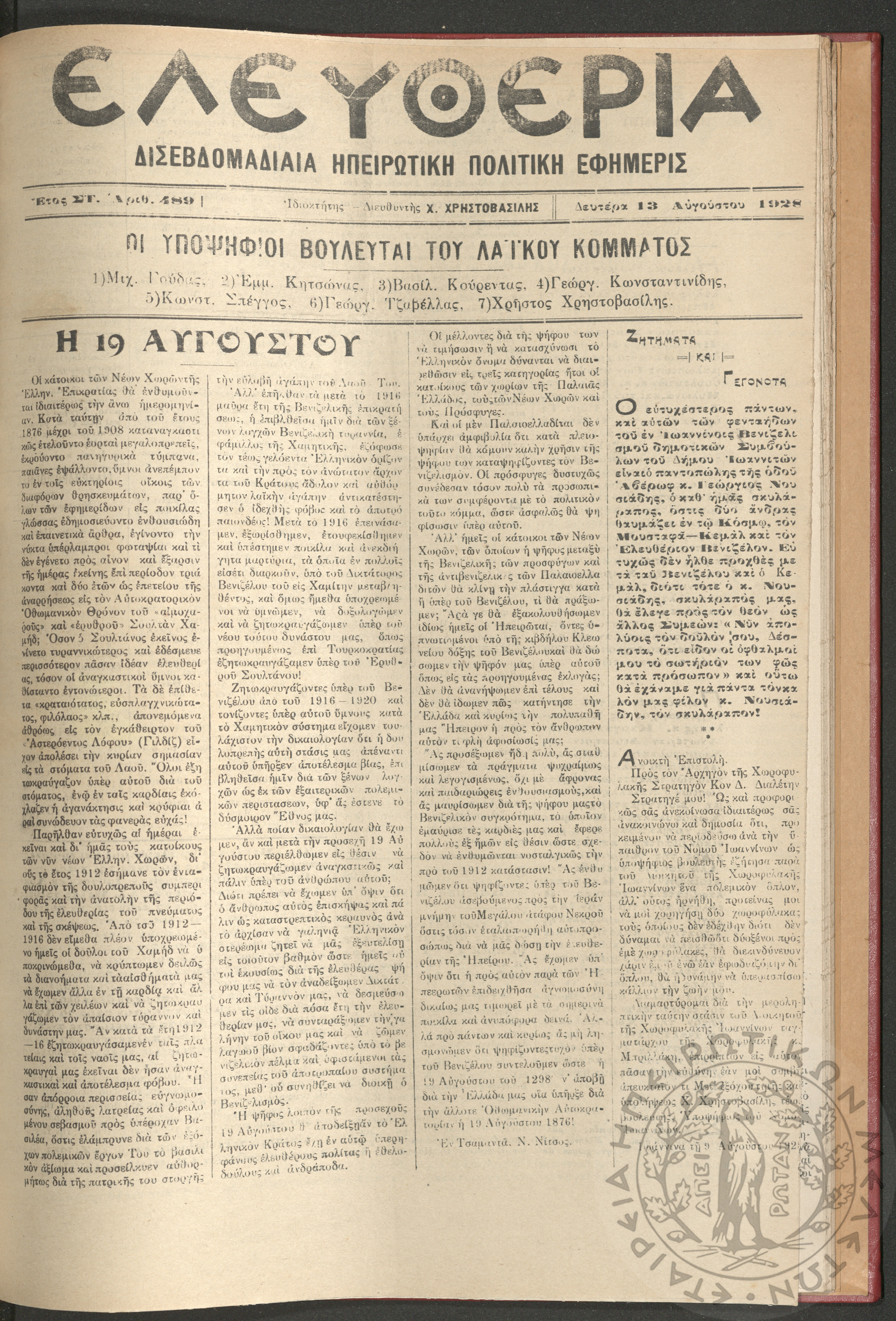 Ελευθερία: δισεβδομαδιαία Ηπειρωτική πολιτική εφημερίς, 1928, φ. 474