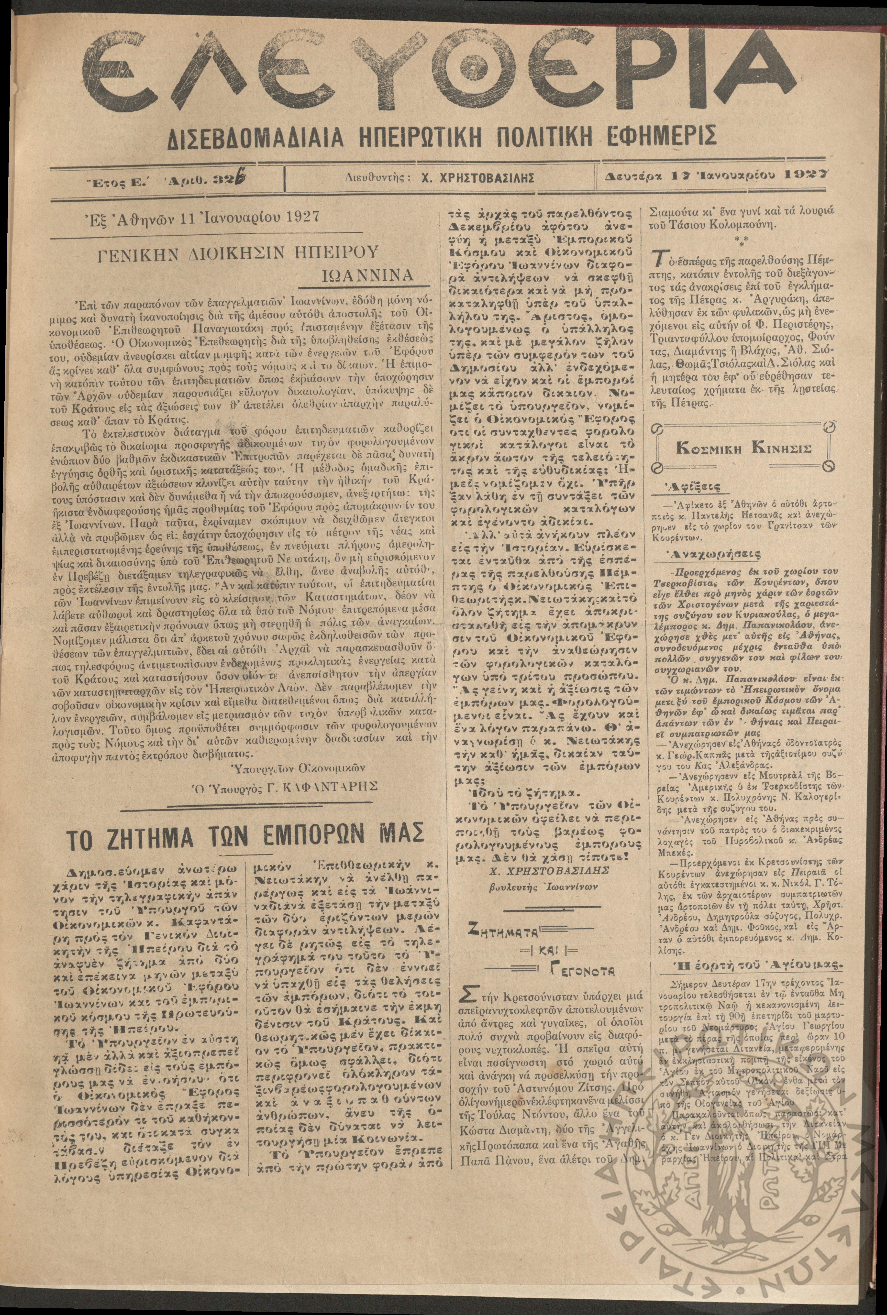 Ελευθερία: δισεβδομαδιαία Ηπειρωτική πολιτική εφημερίς, 1927, φ. 326