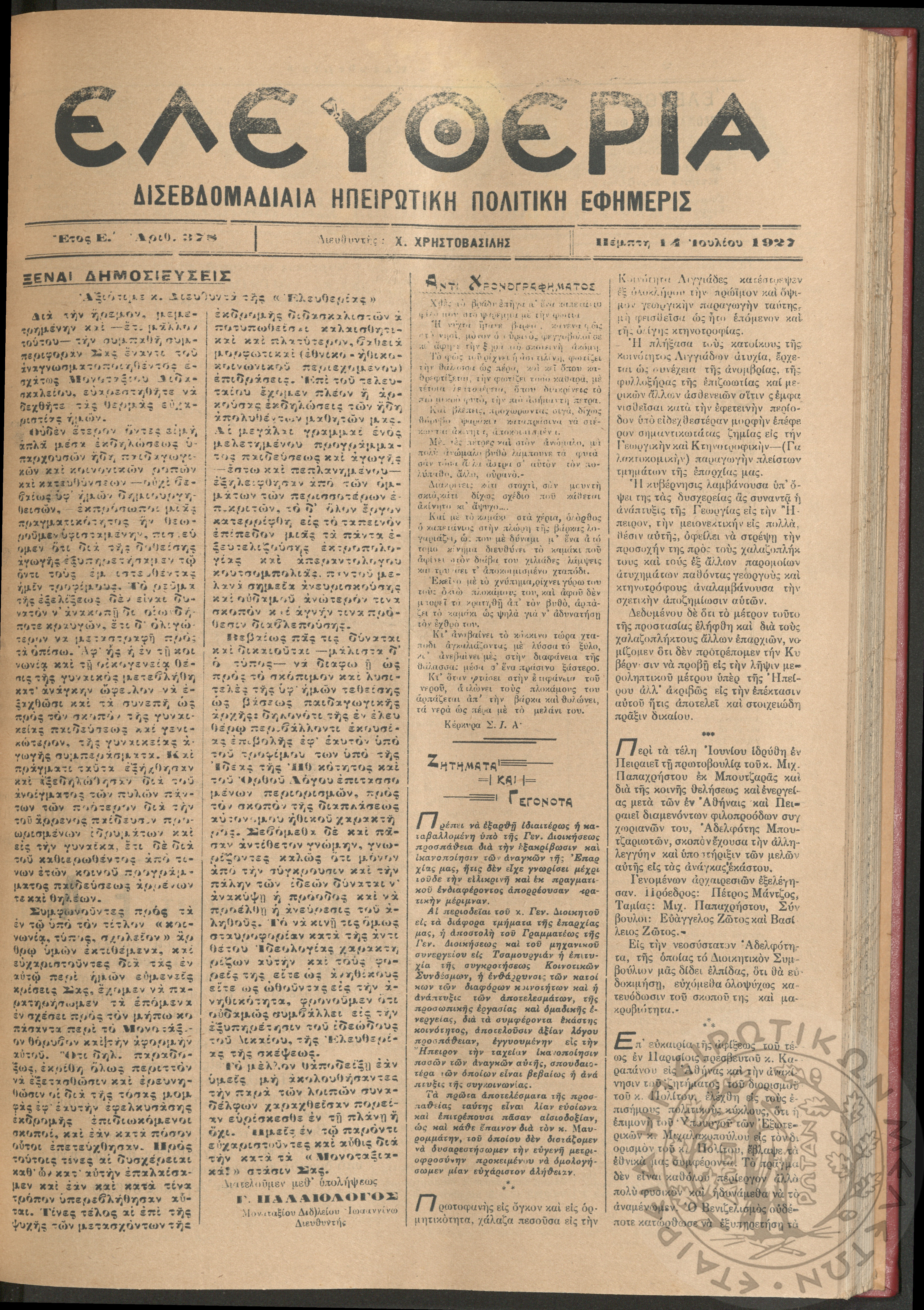 Ελευθερία: δισεβδομαδιαία Ηπειρωτική πολιτική εφημερίς, 1928, φ. 522