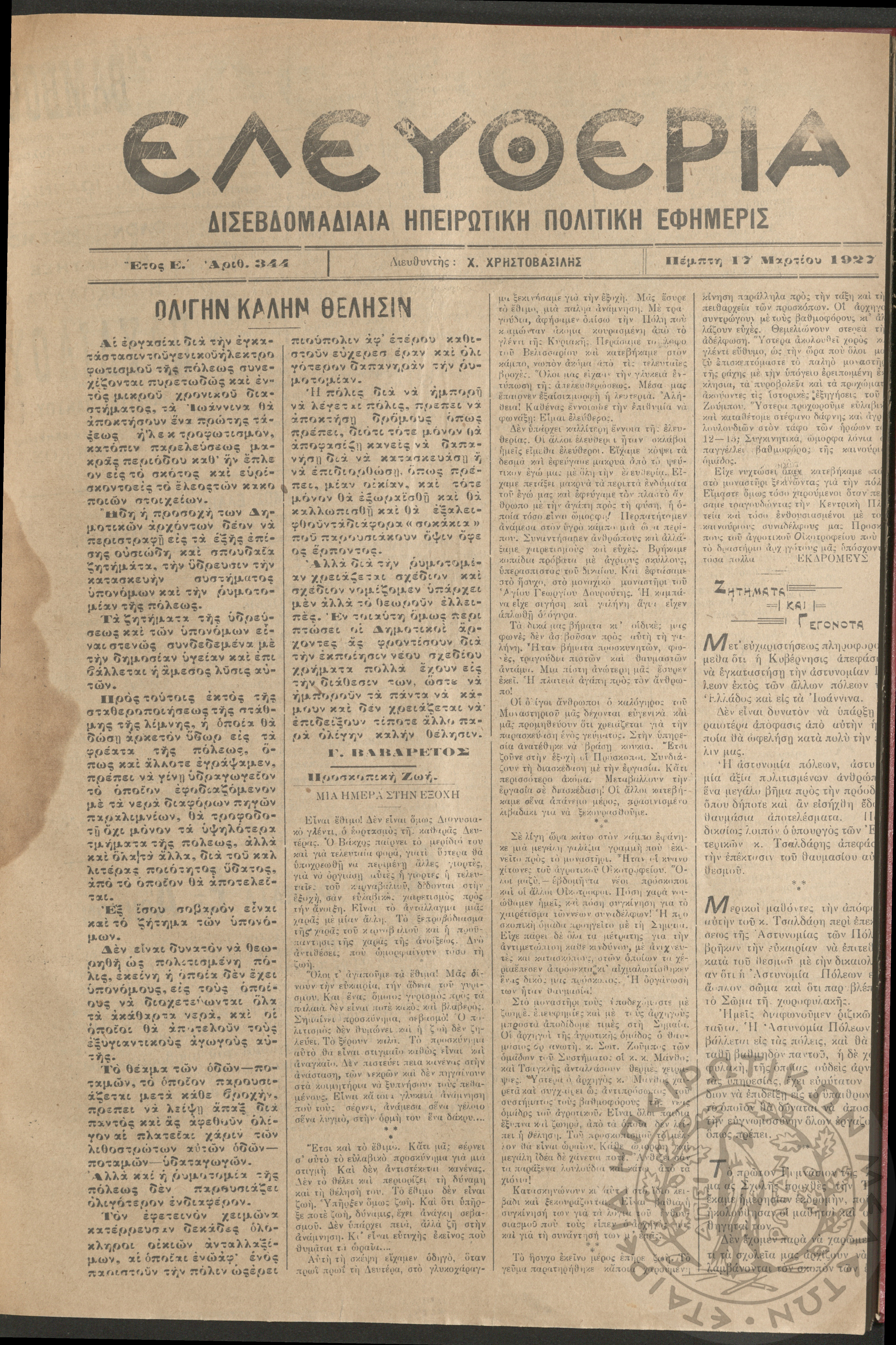 Ελευθερία: δισεβδομαδιαία Ηπειρωτική πολιτική εφημερίς, 1927, φ. 344