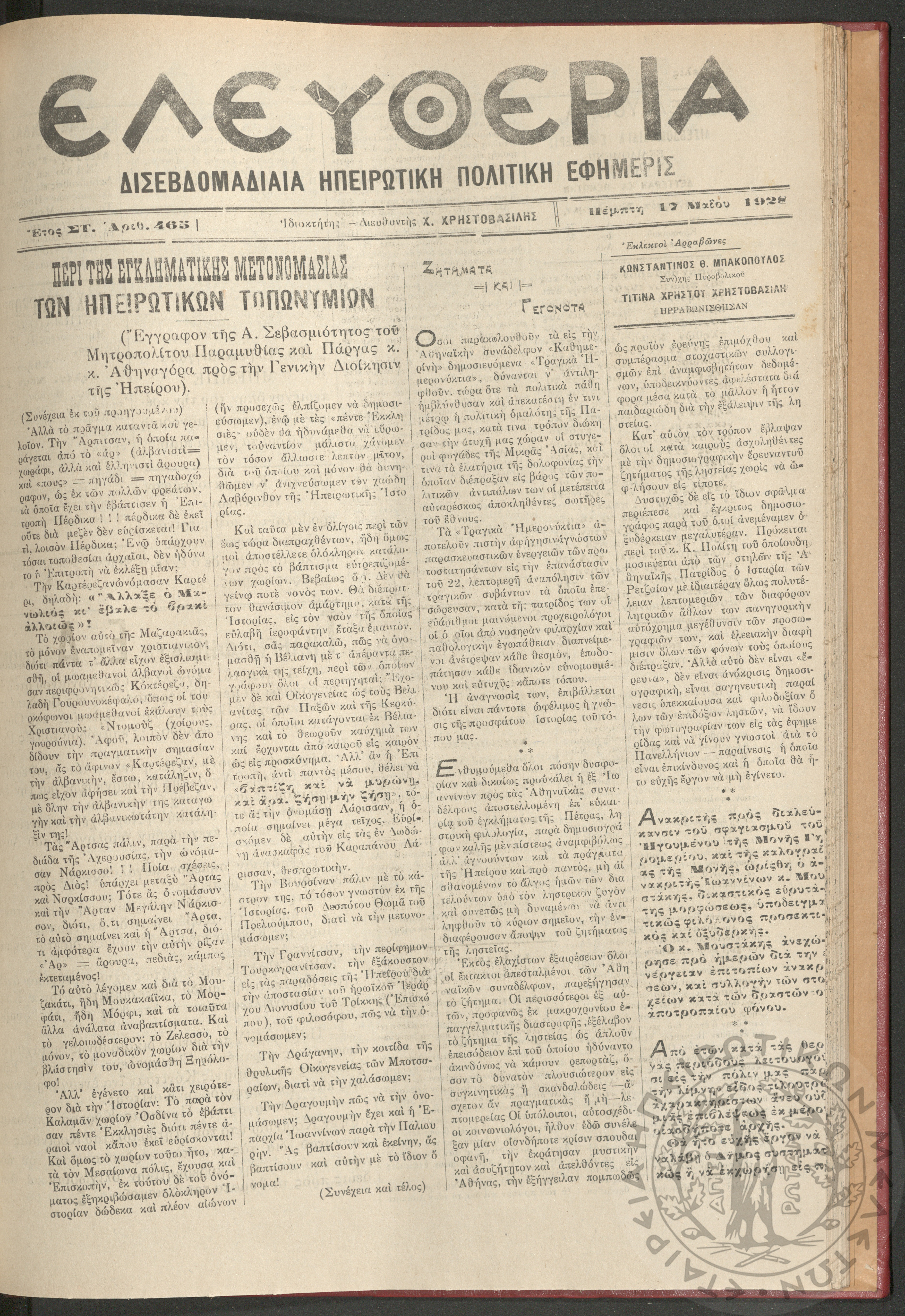 Ελευθερία: δισεβδομαδιαία Ηπειρωτική πολιτική εφημερίς, 1928, φ. 465