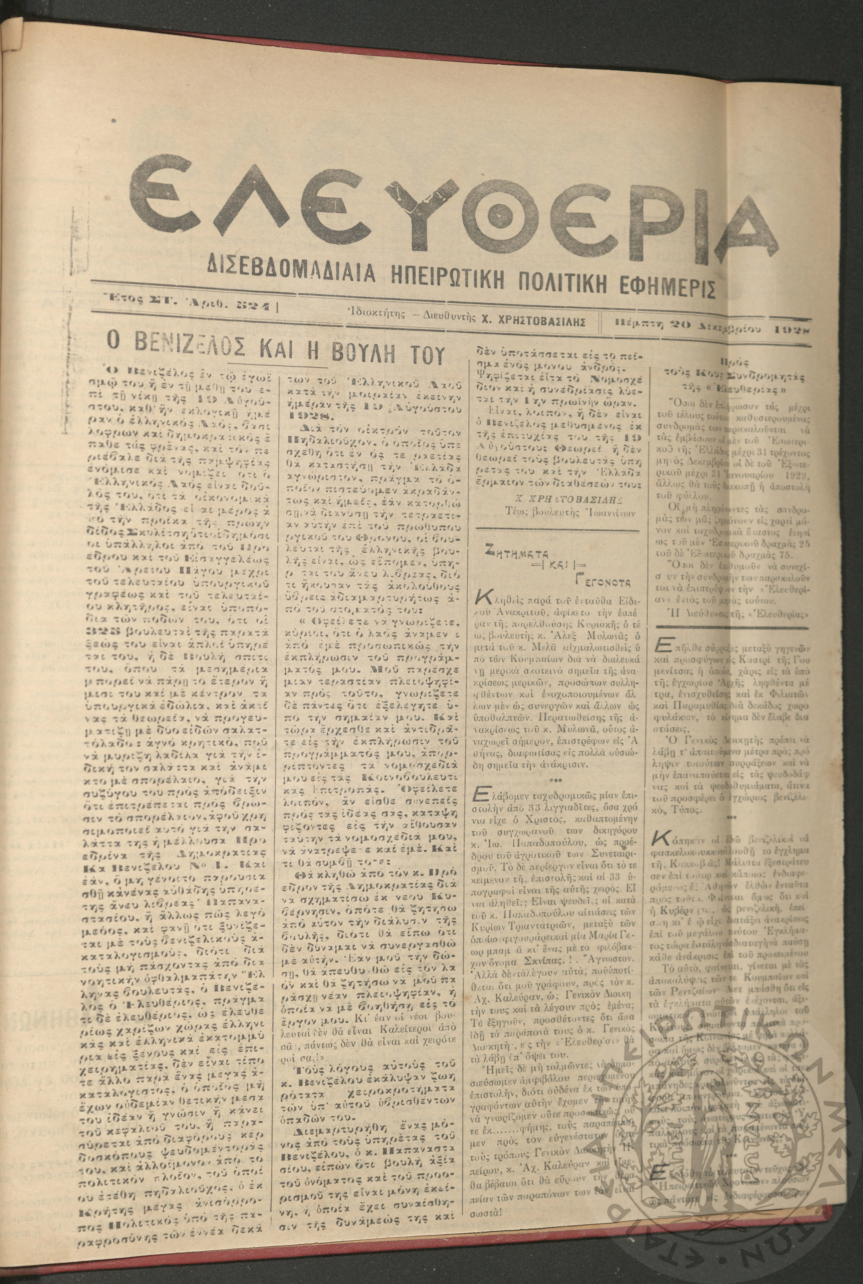 Ελευθερία: δισεβδομαδιαία Ηπειρωτική πολιτική εφημερίς, 1928, φ. 524