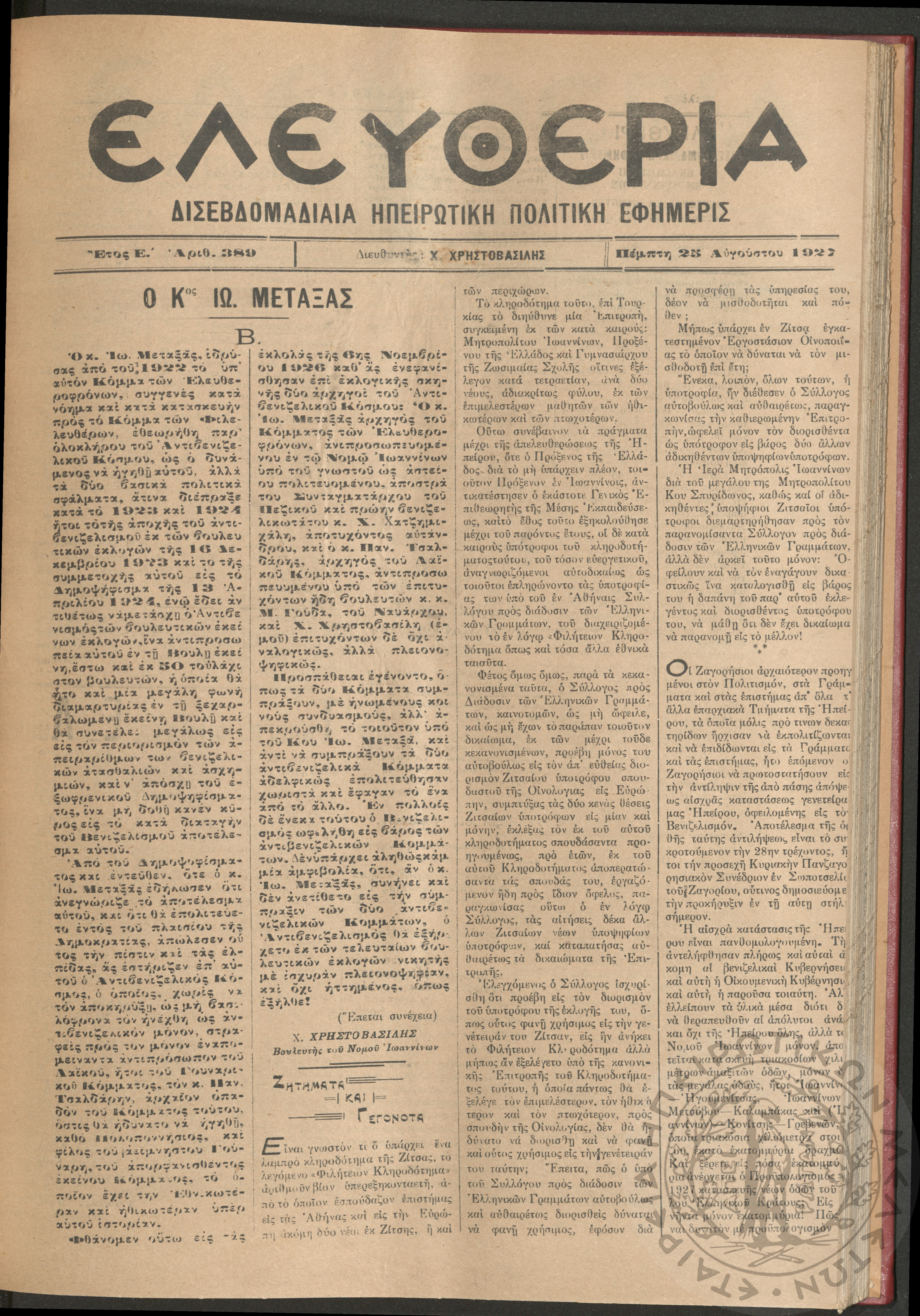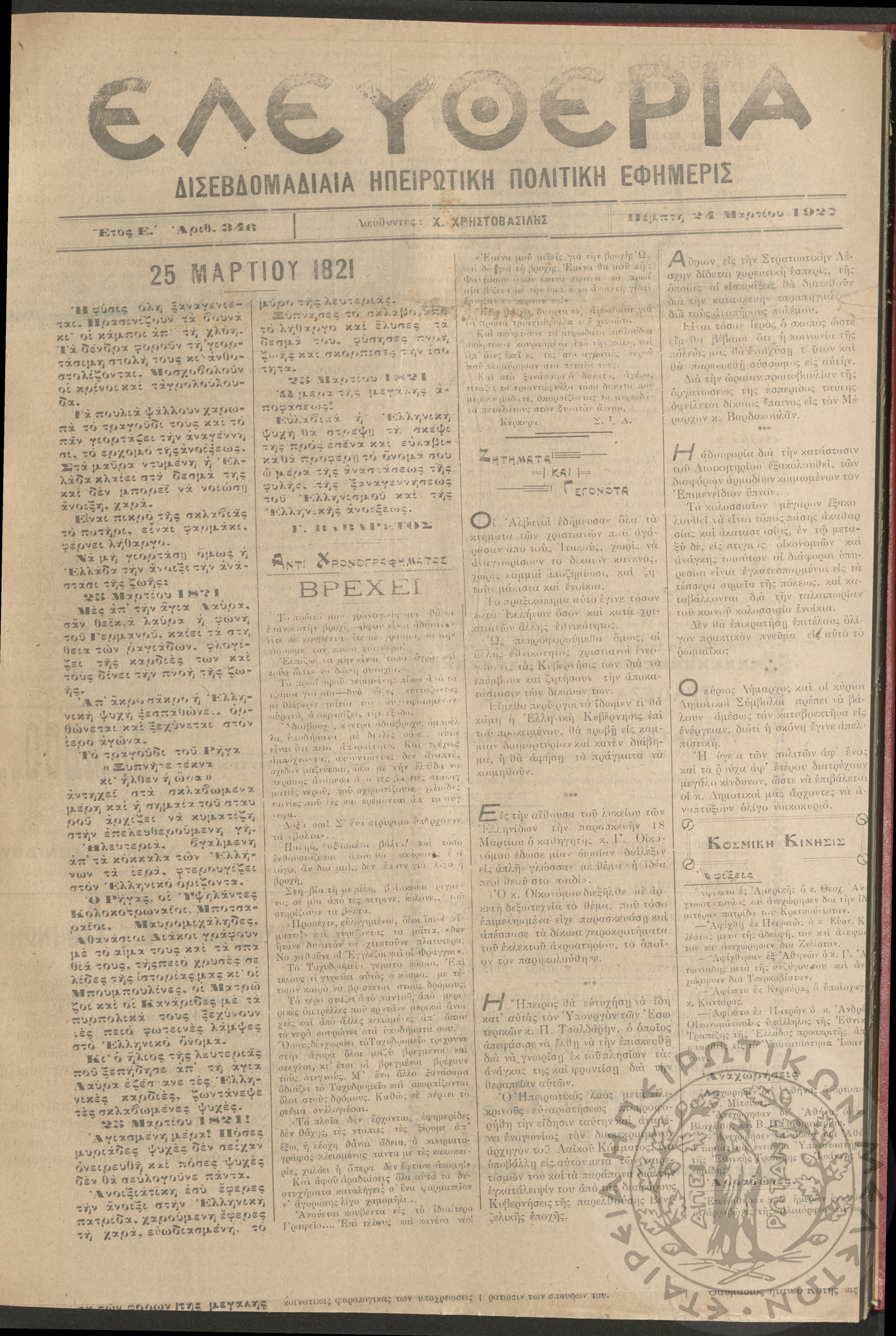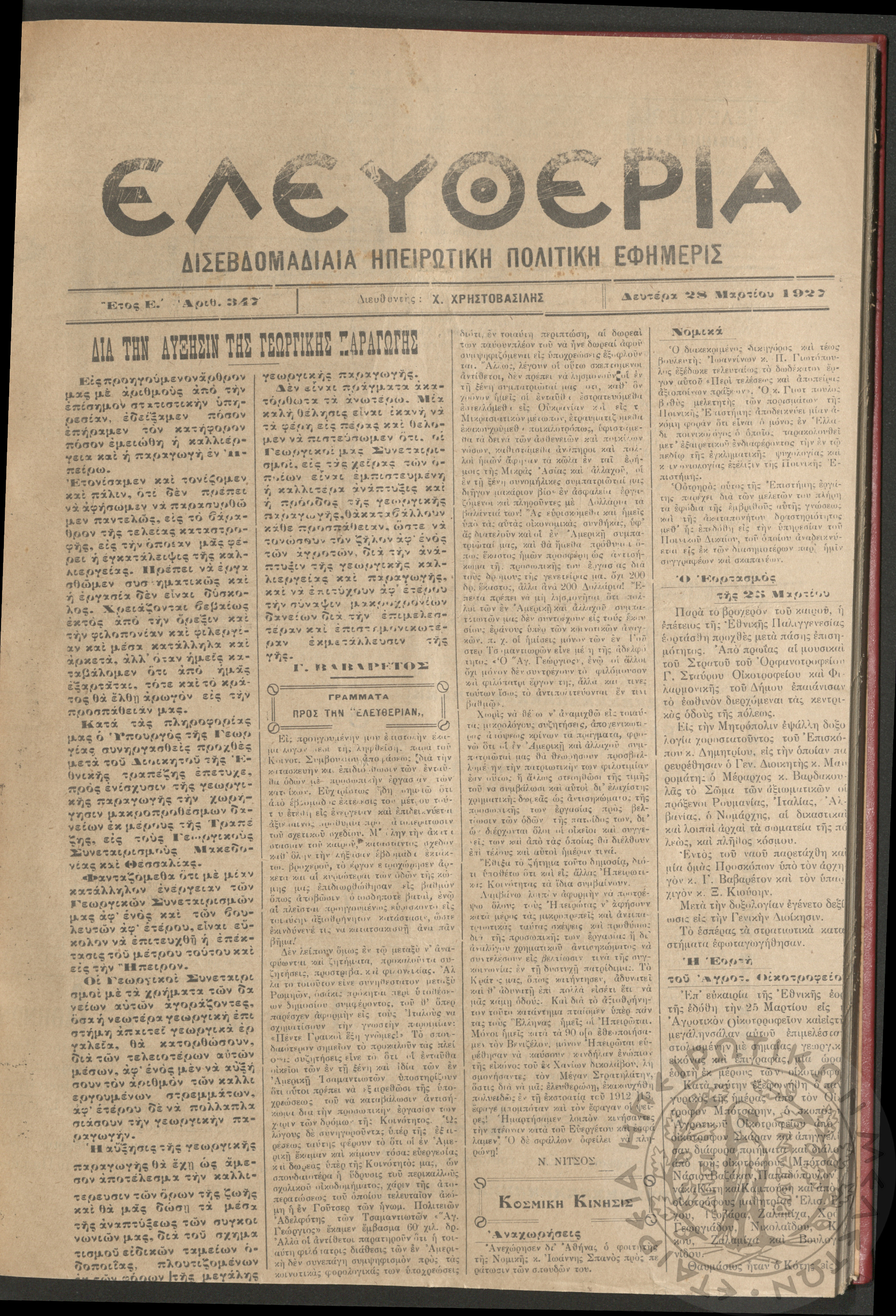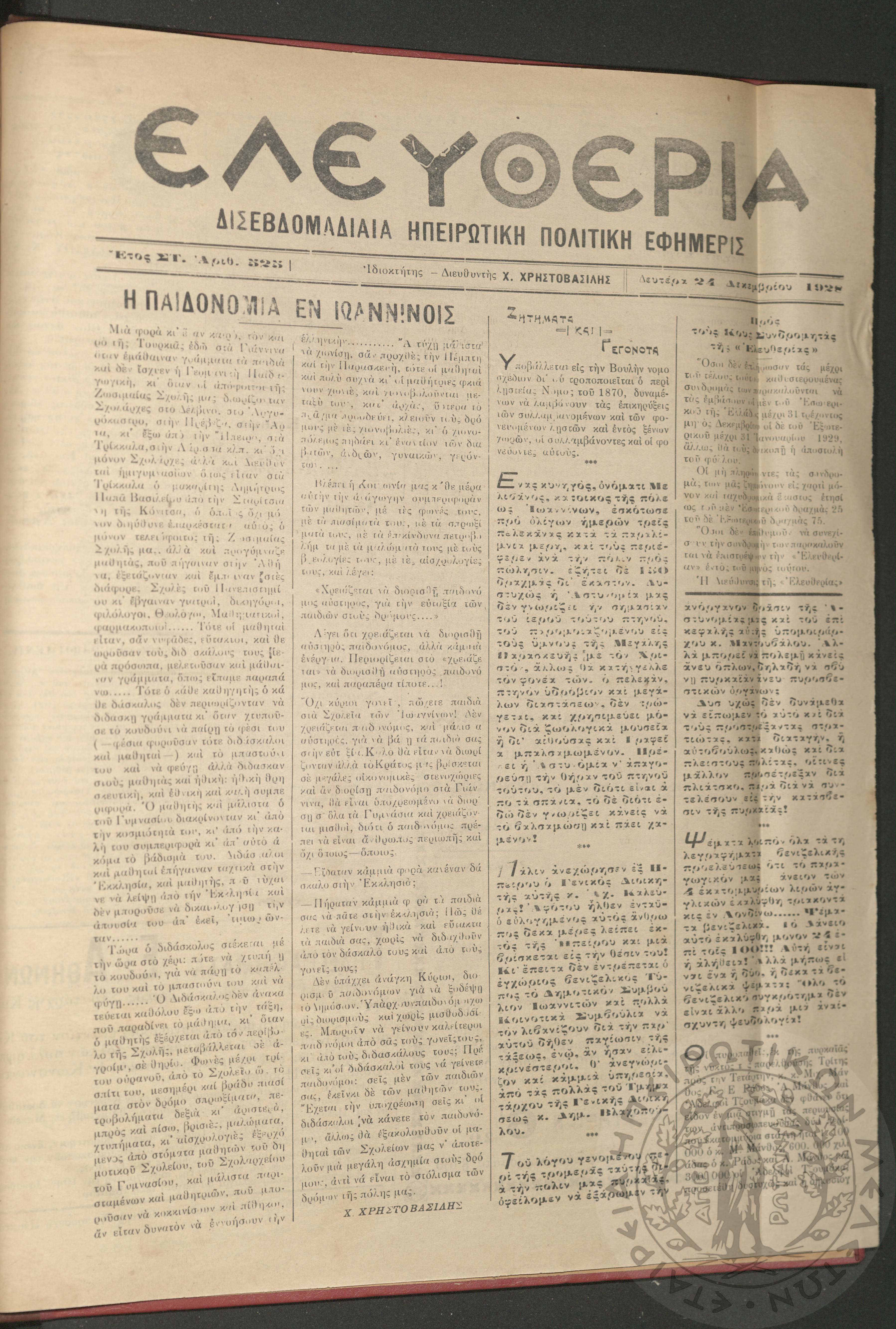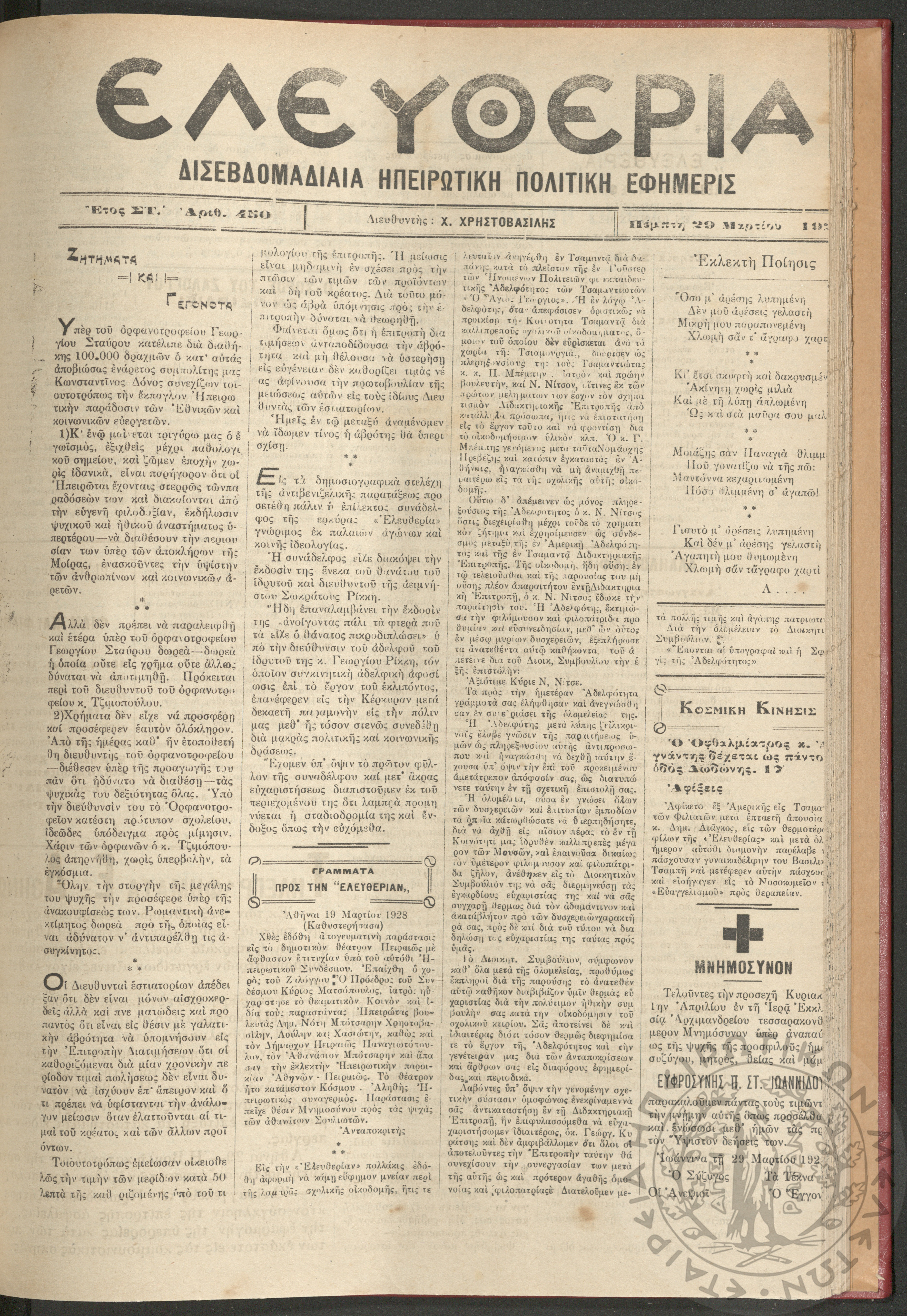 Ελευθερία: δισεβδομαδιαία Ηπειρωτική πολιτική εφημερίς, 1928, φ. 525