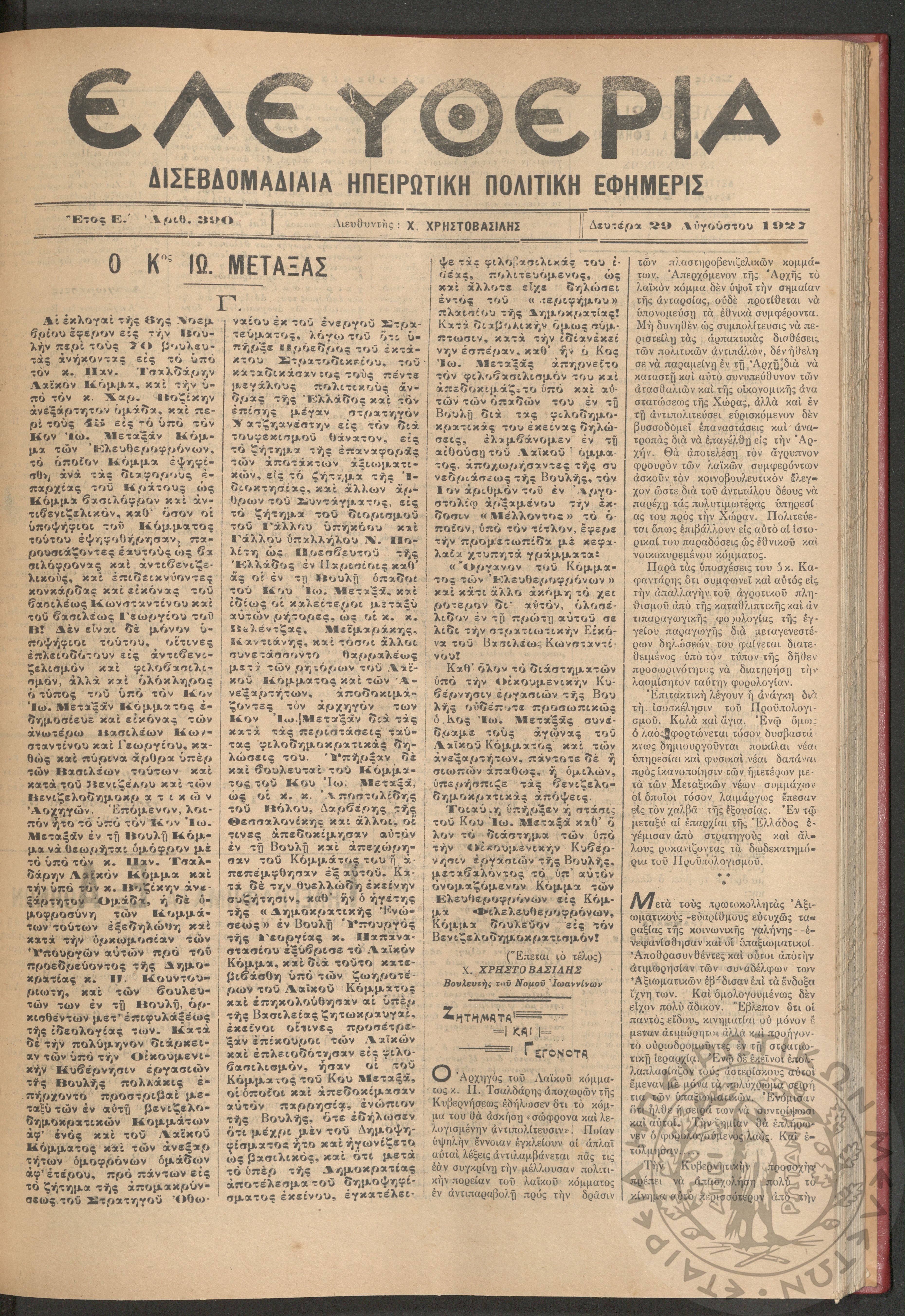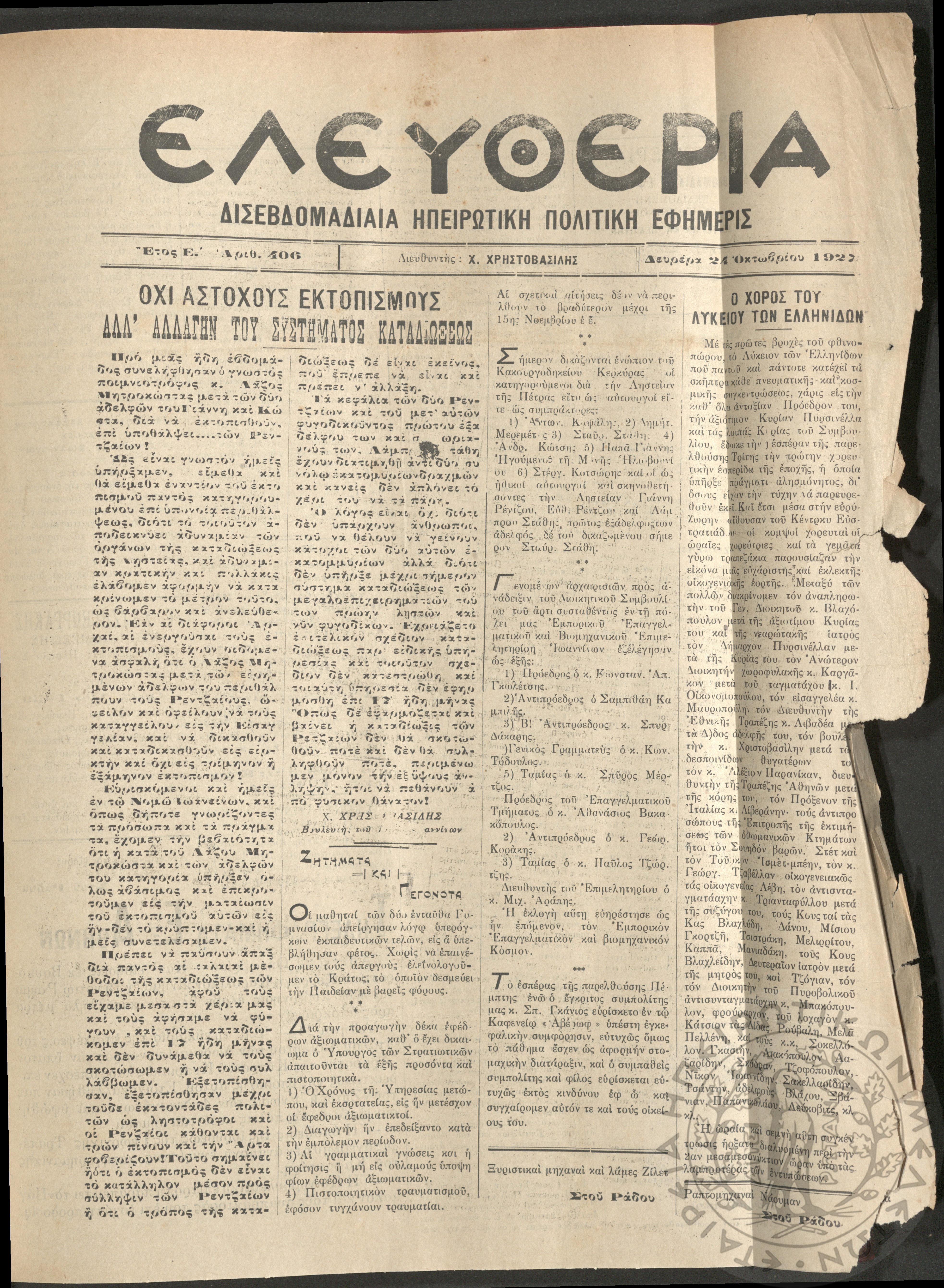 Ελευθερία: δισεβδομαδιαία Ηπειρωτική πολιτική εφημερίς, 1928, φ. 476