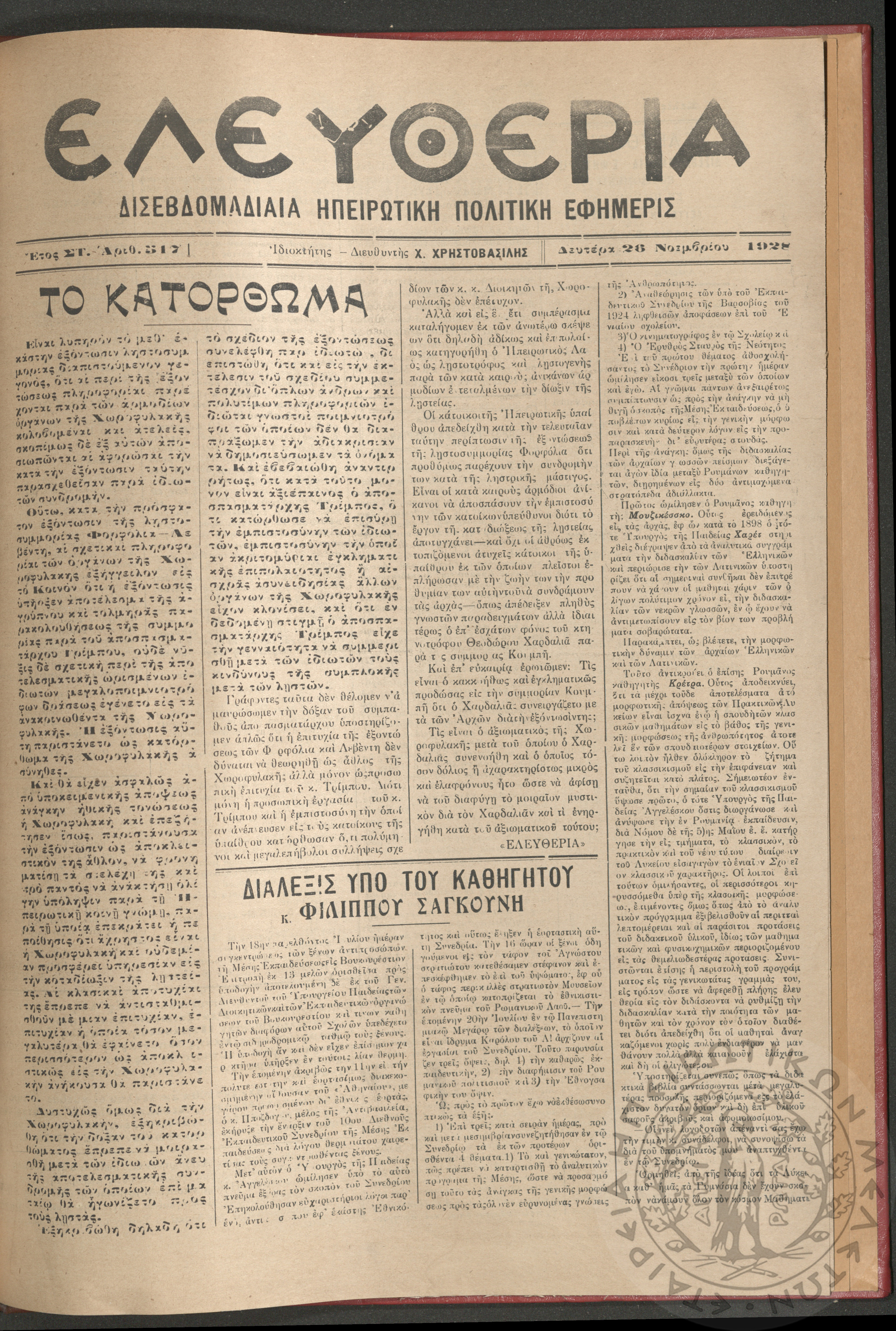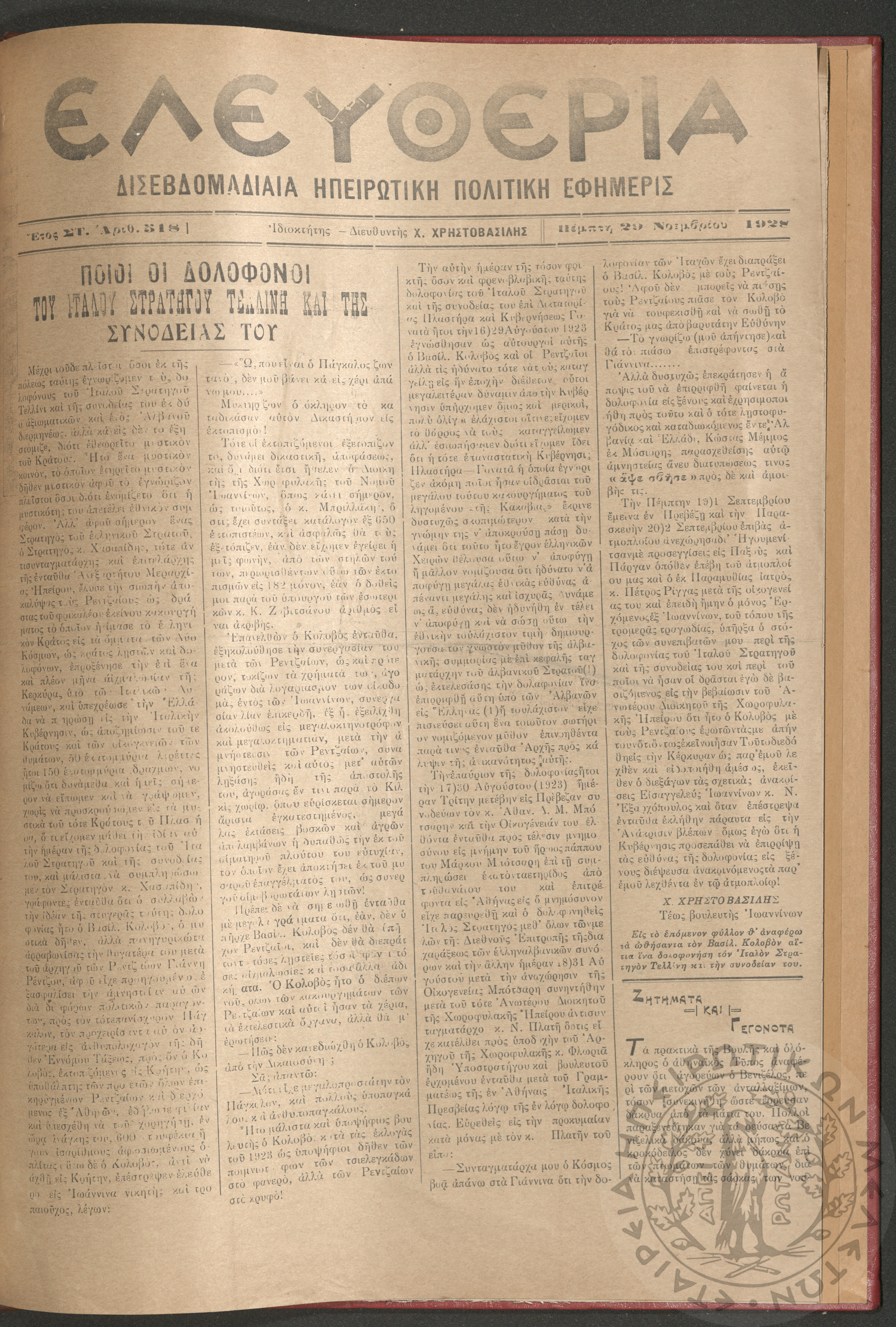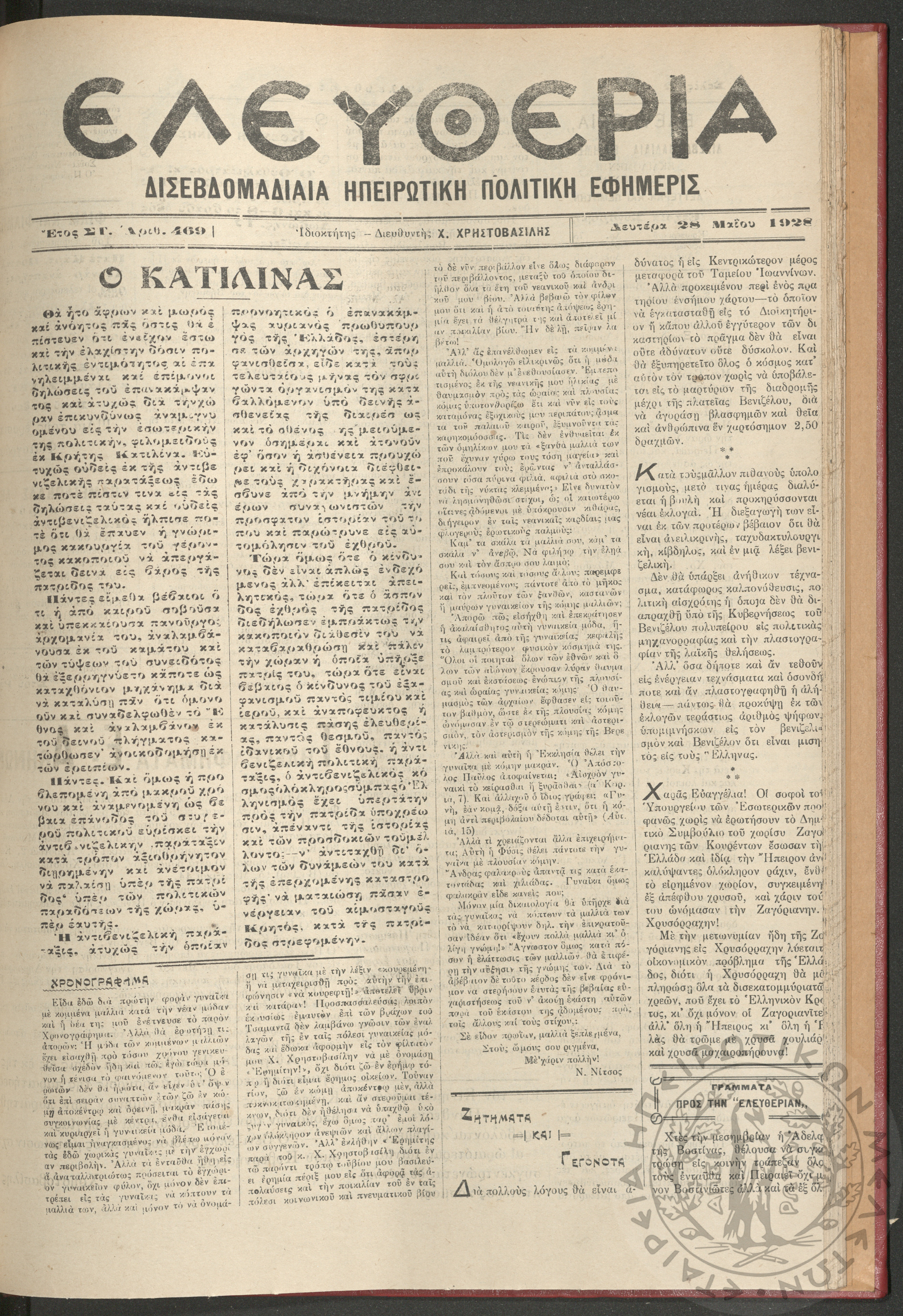 Ελευθερία: δισεβδομαδιαία Ηπειρωτική πολιτική εφημερίς, 1928, φ. 469