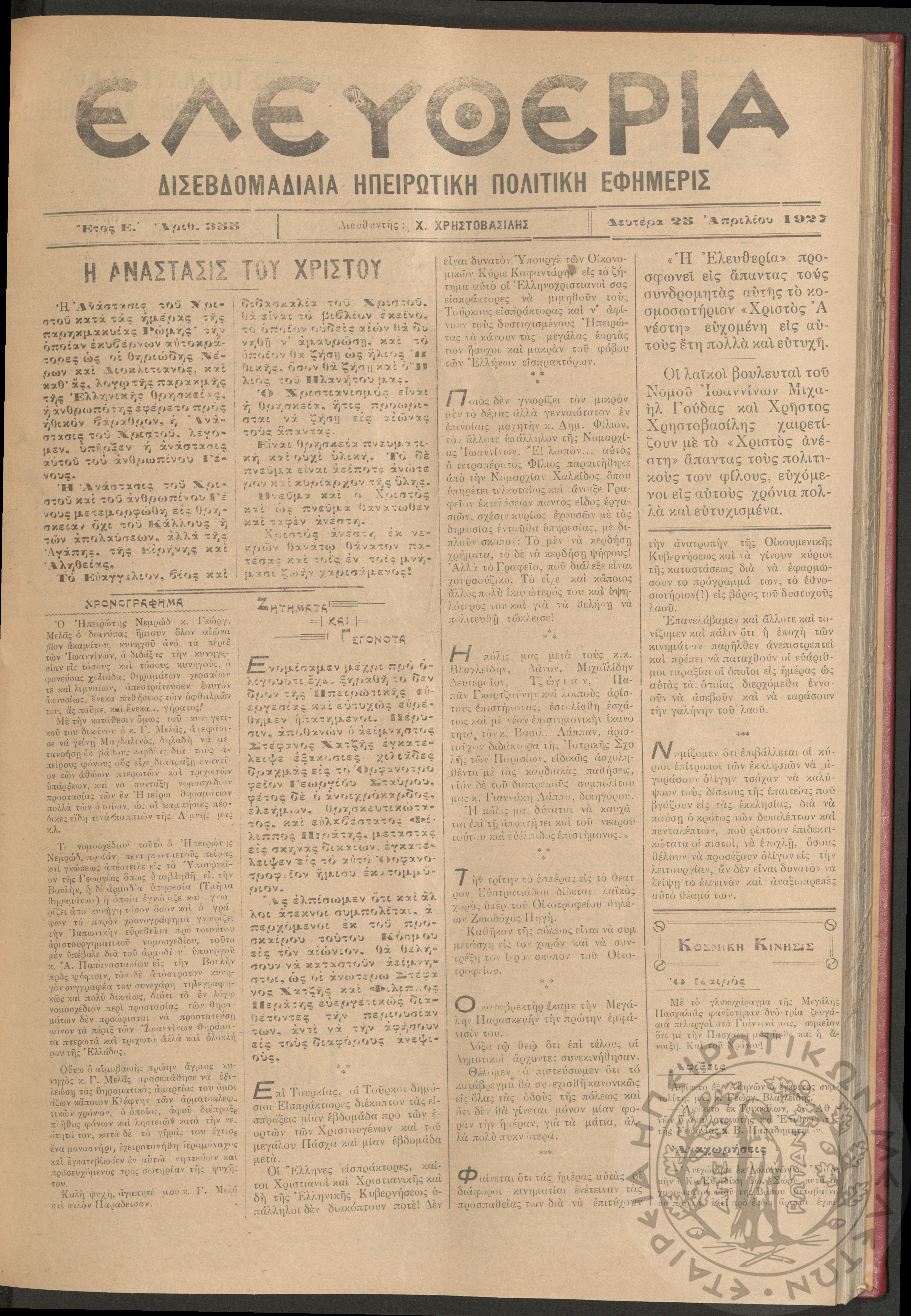Ελευθερία: δισεβδομαδιαία Ηπειρωτική πολιτική εφημερίς, 1927, φ. 330