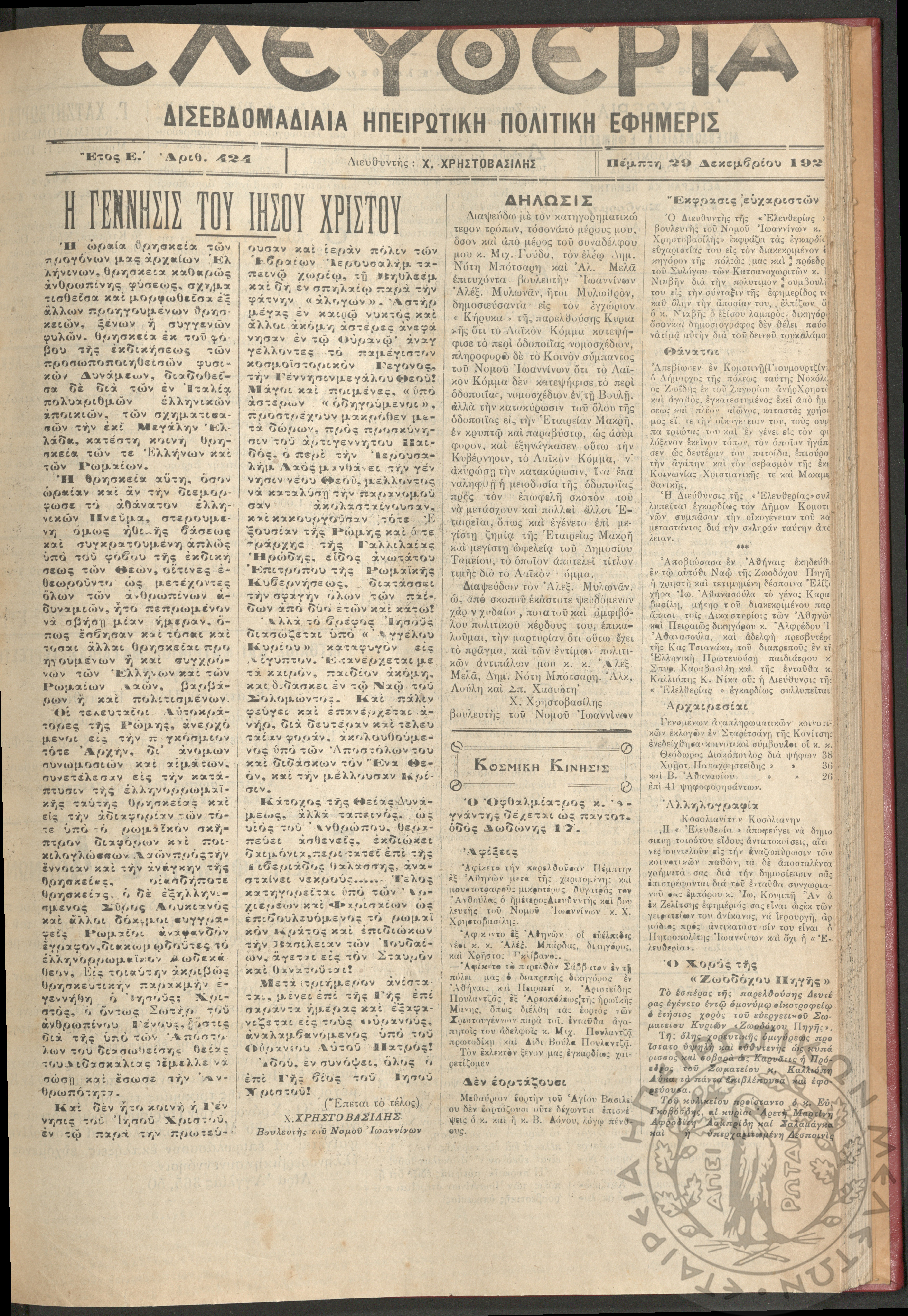 Ελευθερία: δισεβδομαδιαία Ηπειρωτική πολιτική εφημερίς, 1927, φ. 424