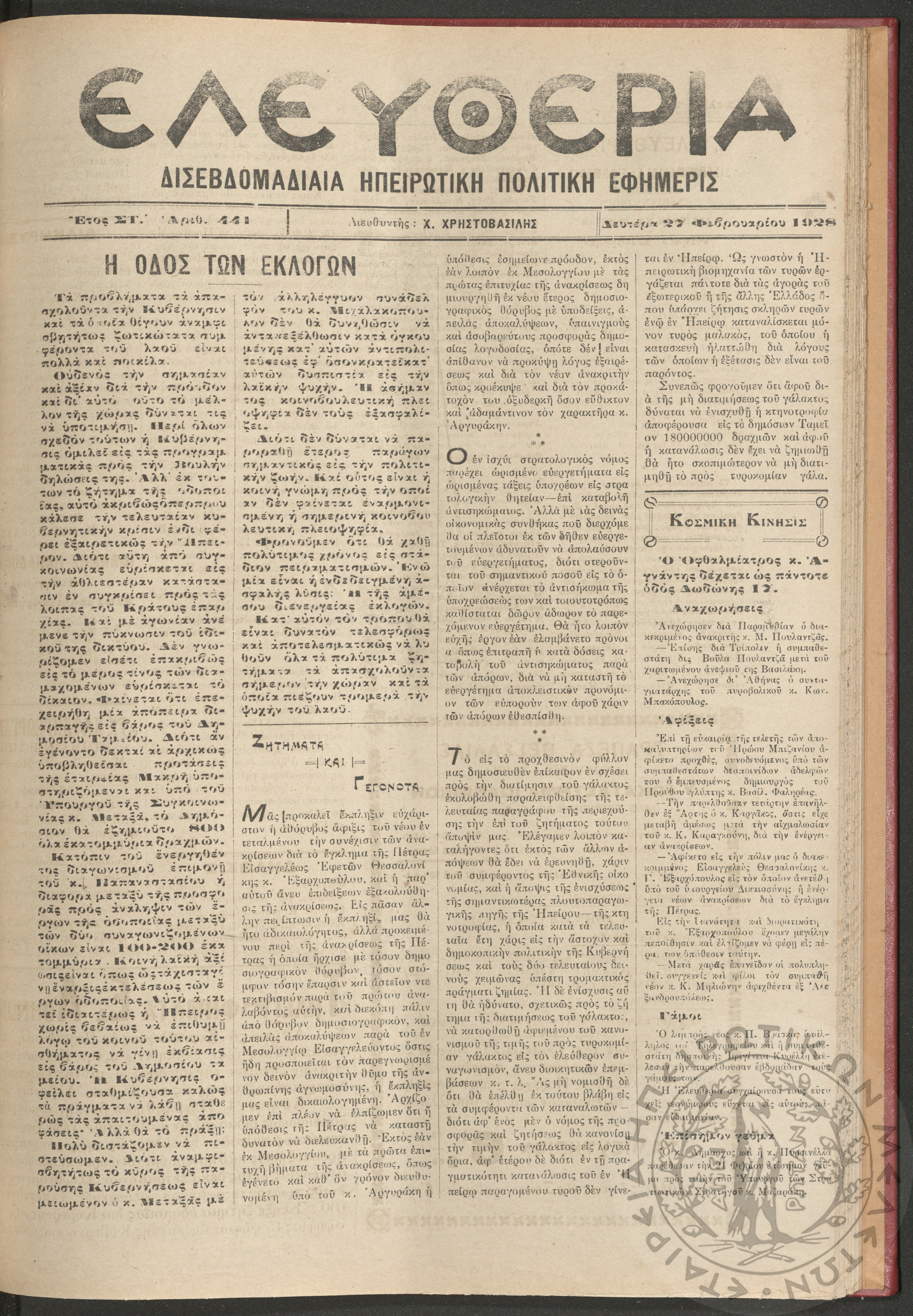 Ελευθερία: δισεβδομαδιαία Ηπειρωτική πολιτική εφημερίς, 1928, φ. 441