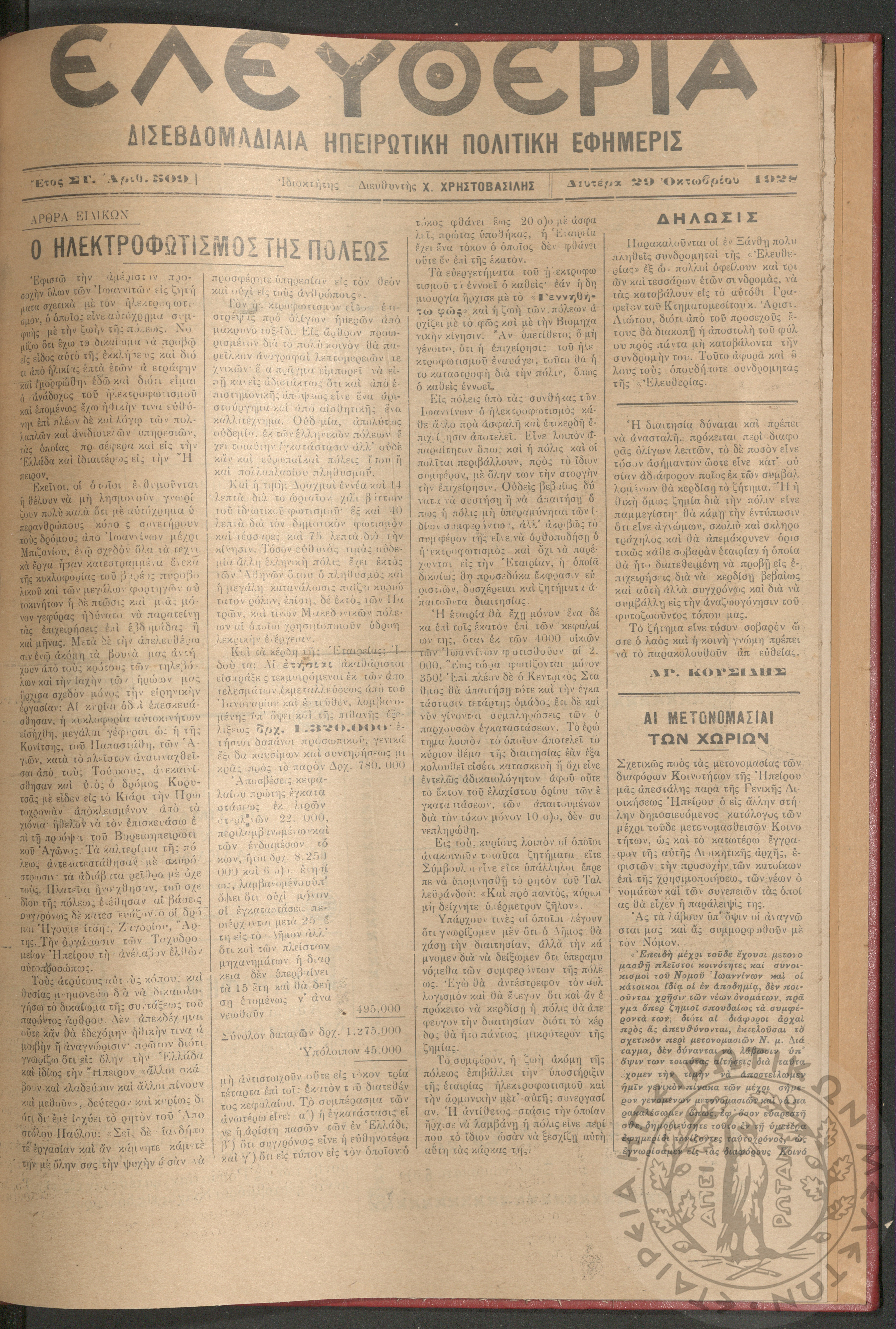 Ελευθερία: δισεβδομαδιαία Ηπειρωτική πολιτική εφημερίς, 1928, φ. 518