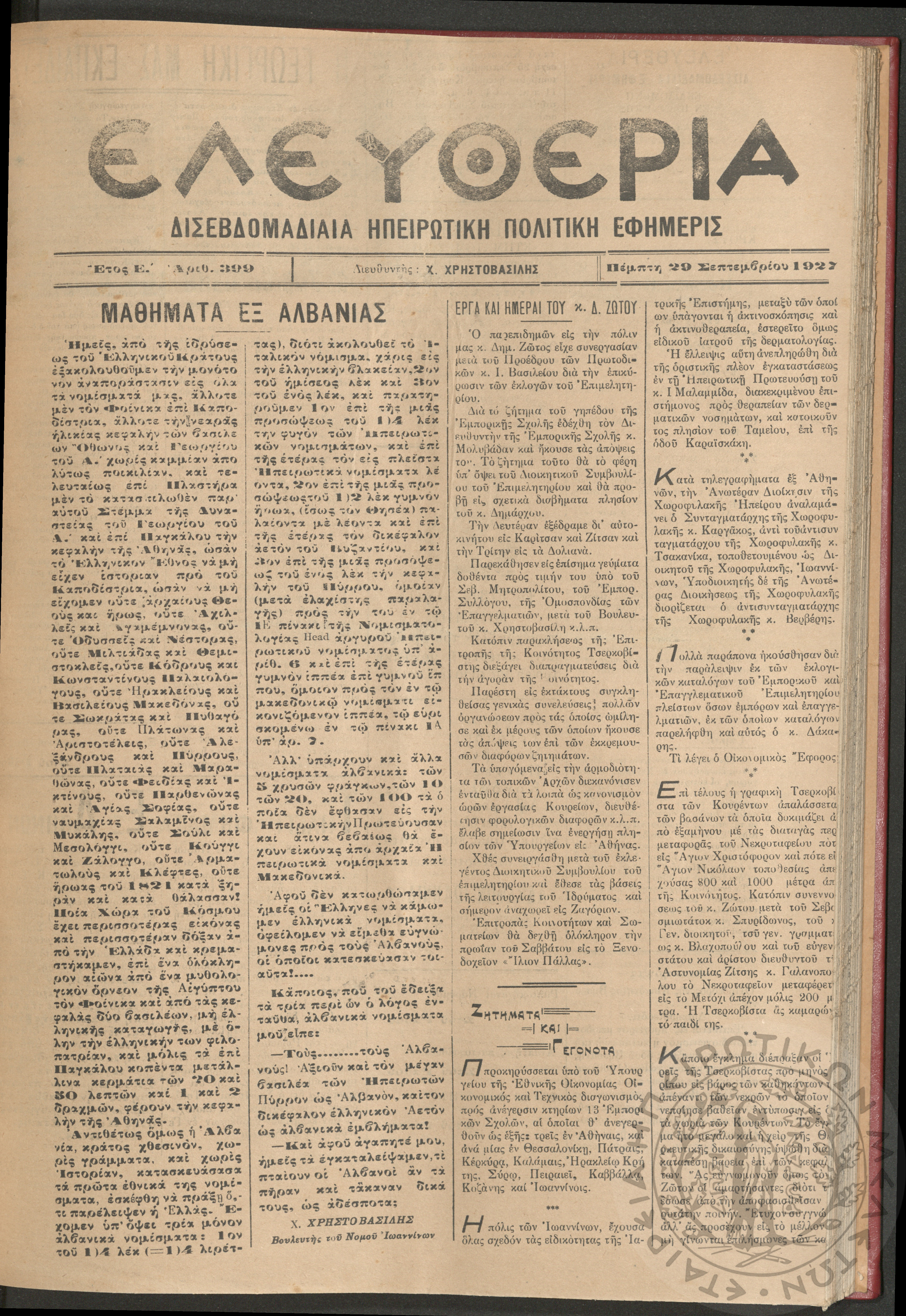 Ελευθερία: δισεβδομαδιαία Ηπειρωτική πολιτική εφημερίς, 1927, φ. 355