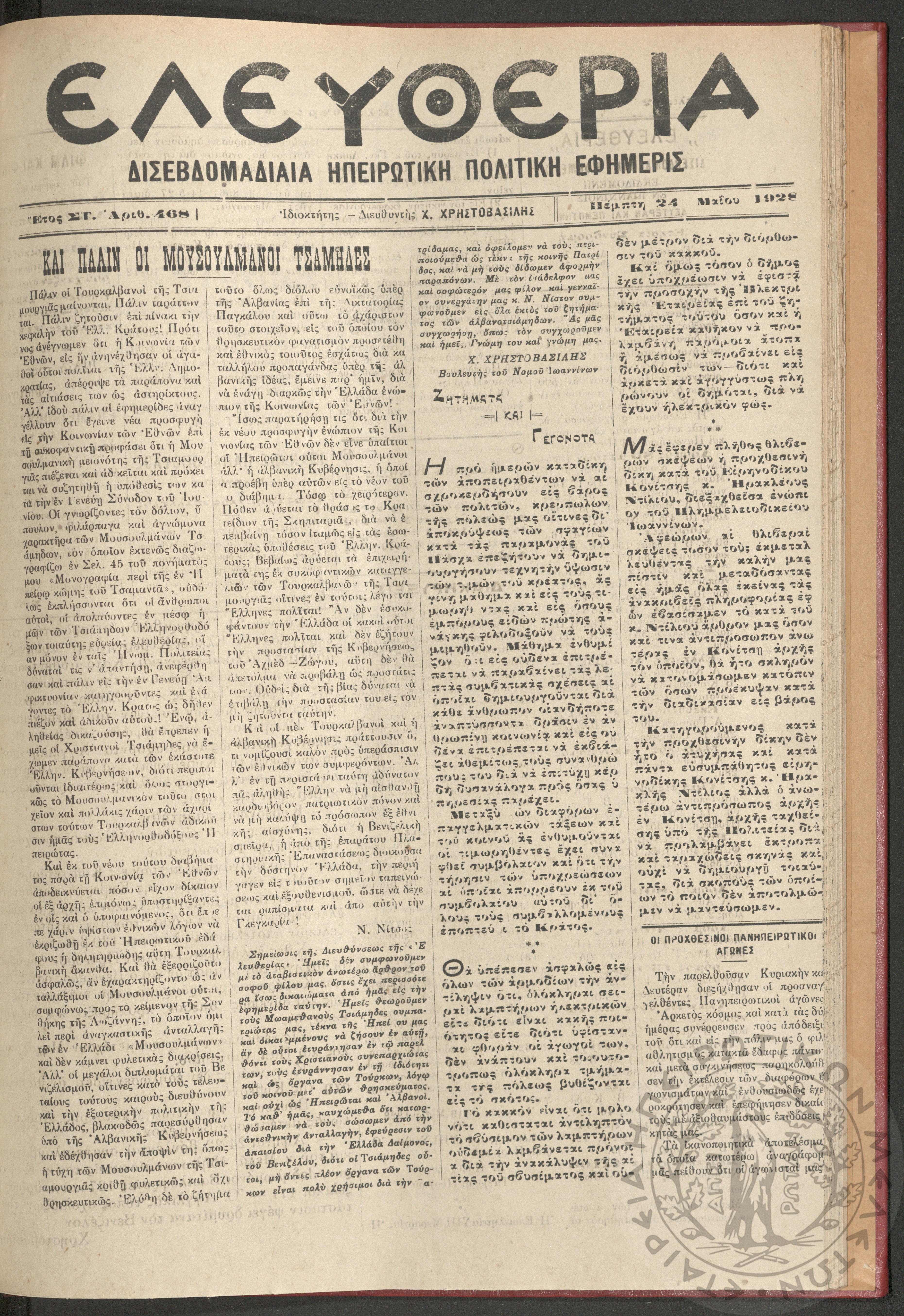 Ελευθερία: δισεβδομαδιαία Ηπειρωτική πολιτική εφημερίς, 1928, φ. 468