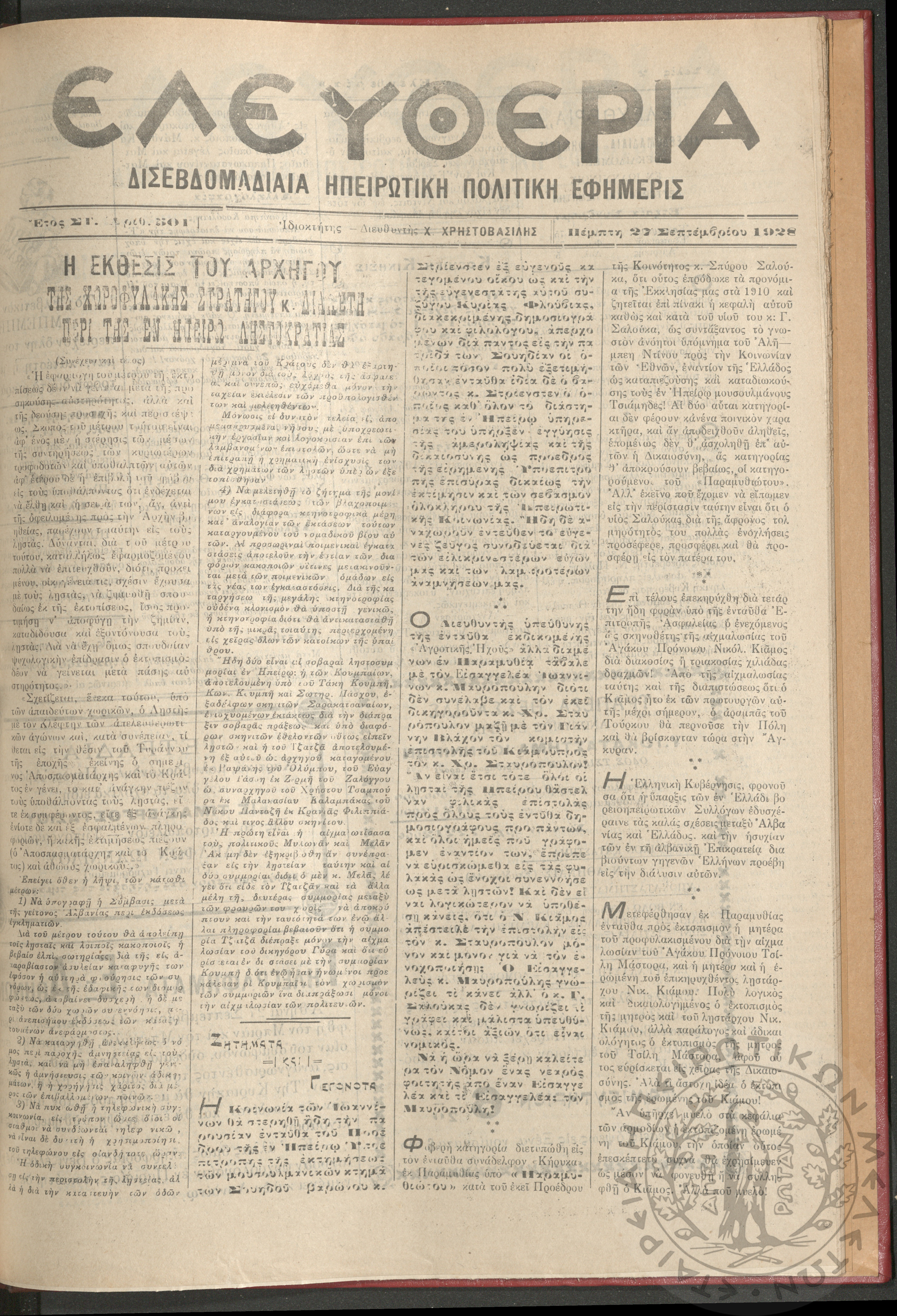 Ελευθερία: δισεβδομαδιαία Ηπειρωτική πολιτική εφημερίς, 1928, φ. 501