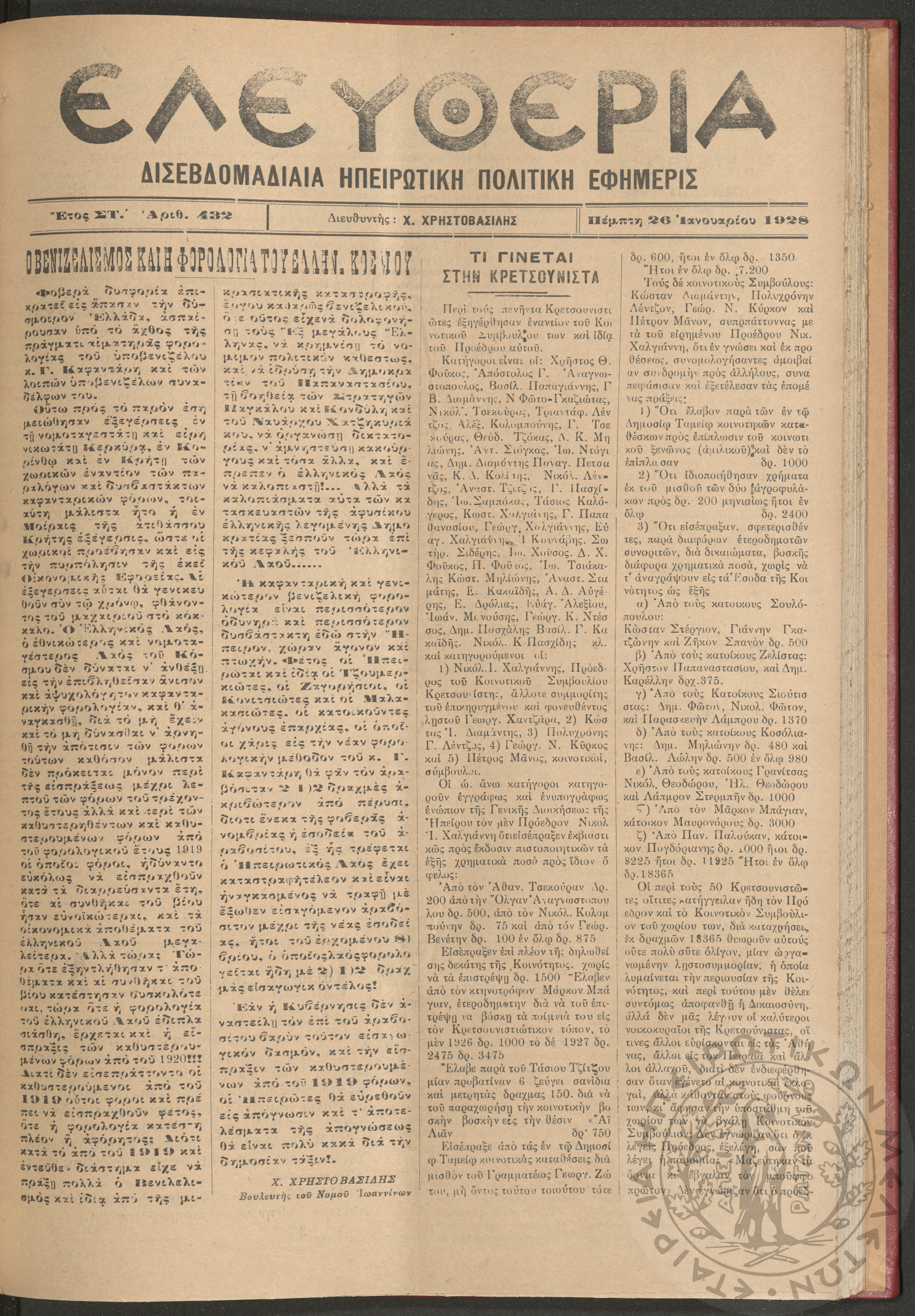 Ελευθερία: δισεβδομαδιαία Ηπειρωτική πολιτική εφημερίς, 1928, φ. 432