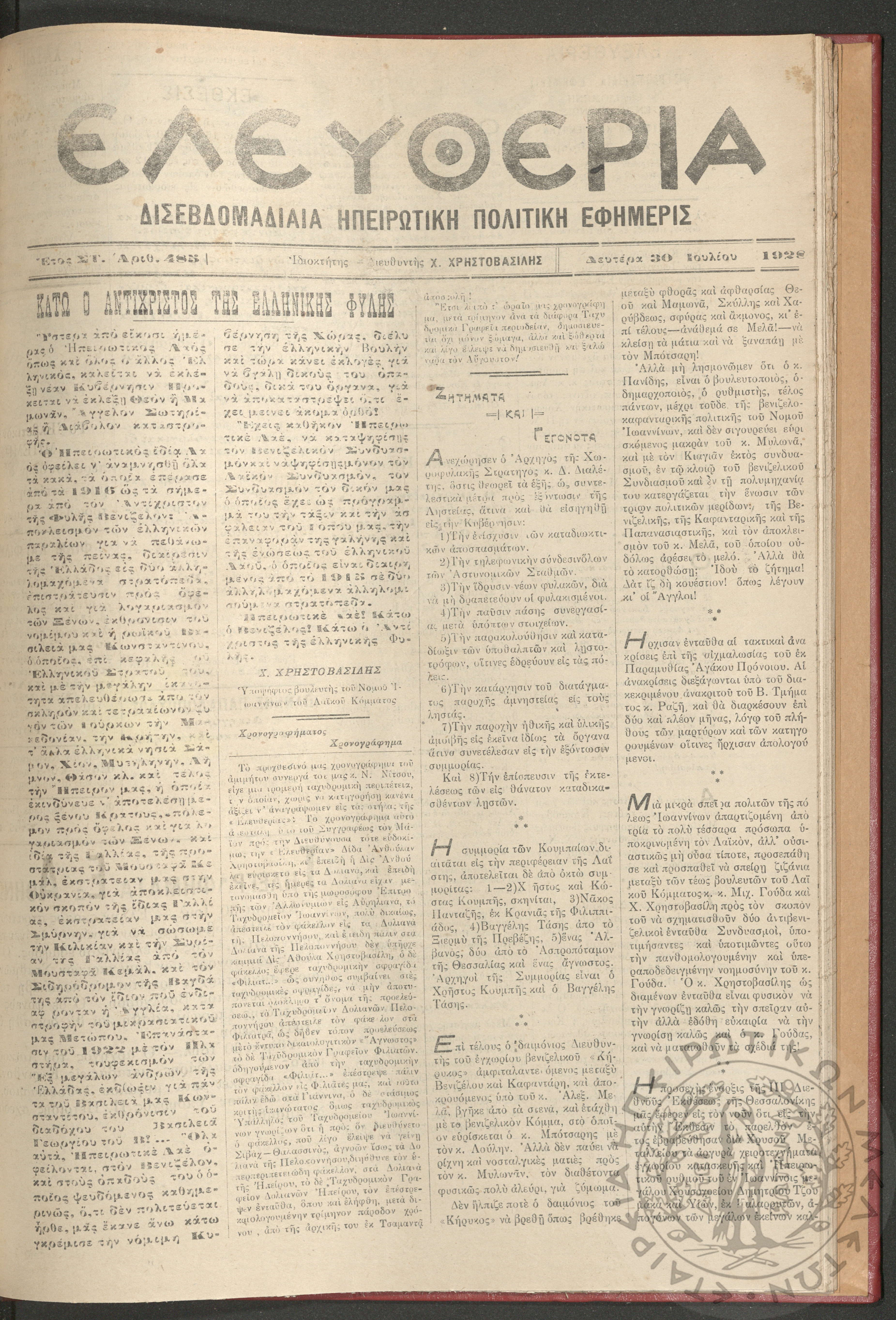 Ελευθερία: δισεβδομαδιαία Ηπειρωτική πολιτική εφημερίς, 1928, φ. 493
