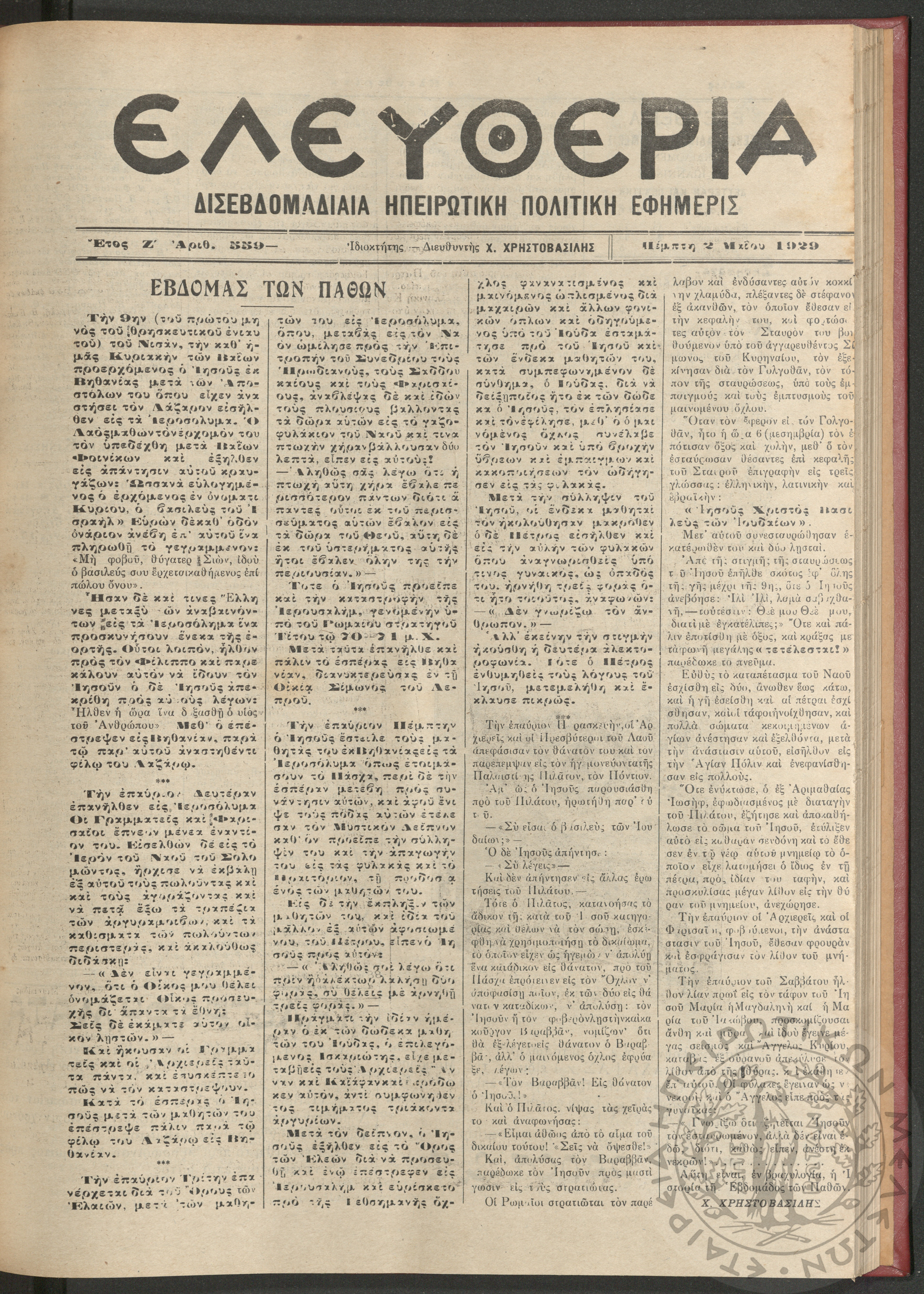 Ελευθερία: δισεβδομαδιαία Ηπειρωτική πολιτική εφημερίς, 1929, φ. 559