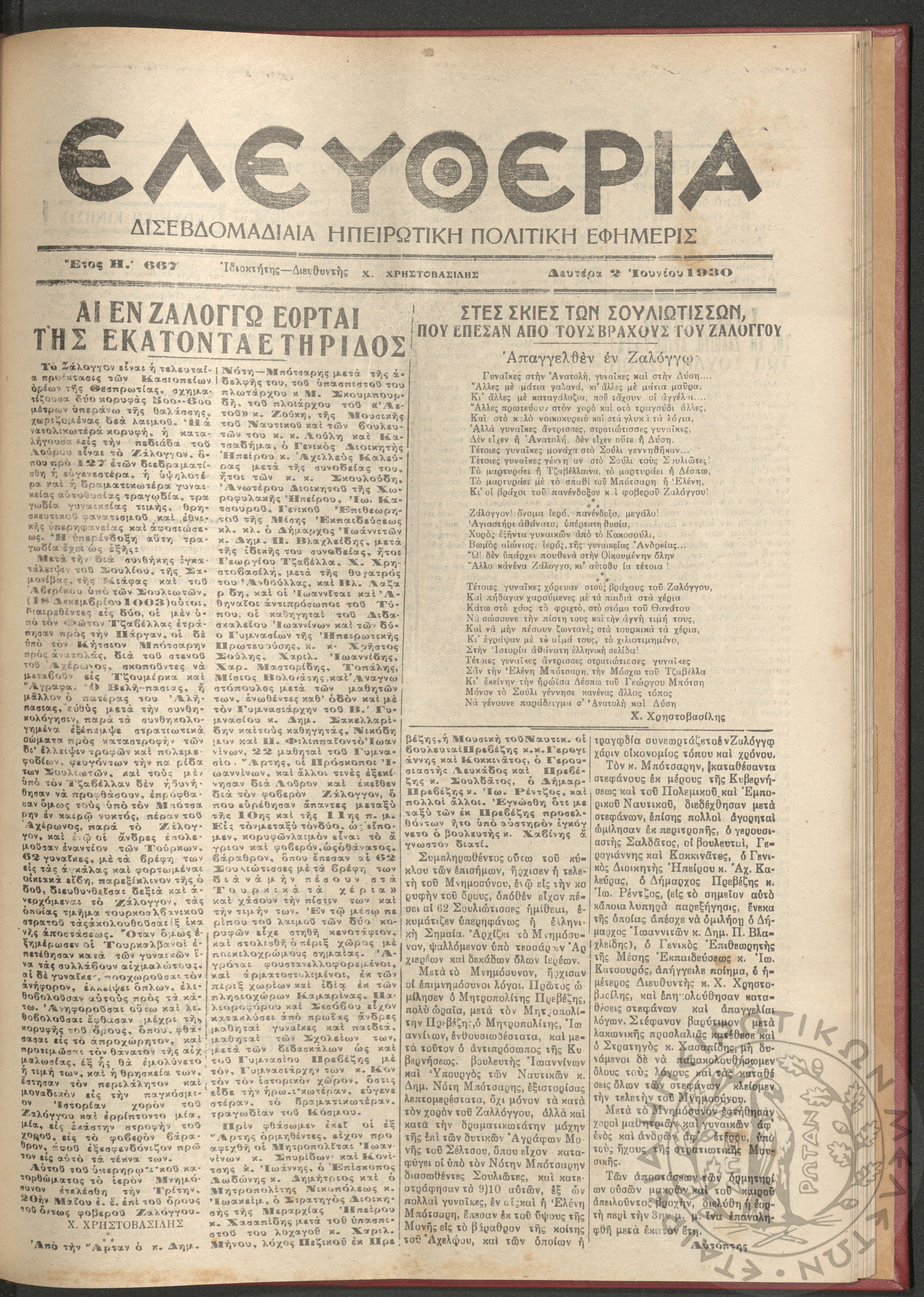 Ελευθερία: δισεβδομαδιαία Ηπειρωτική πολιτική εφημερίς, 1930, φ. 667