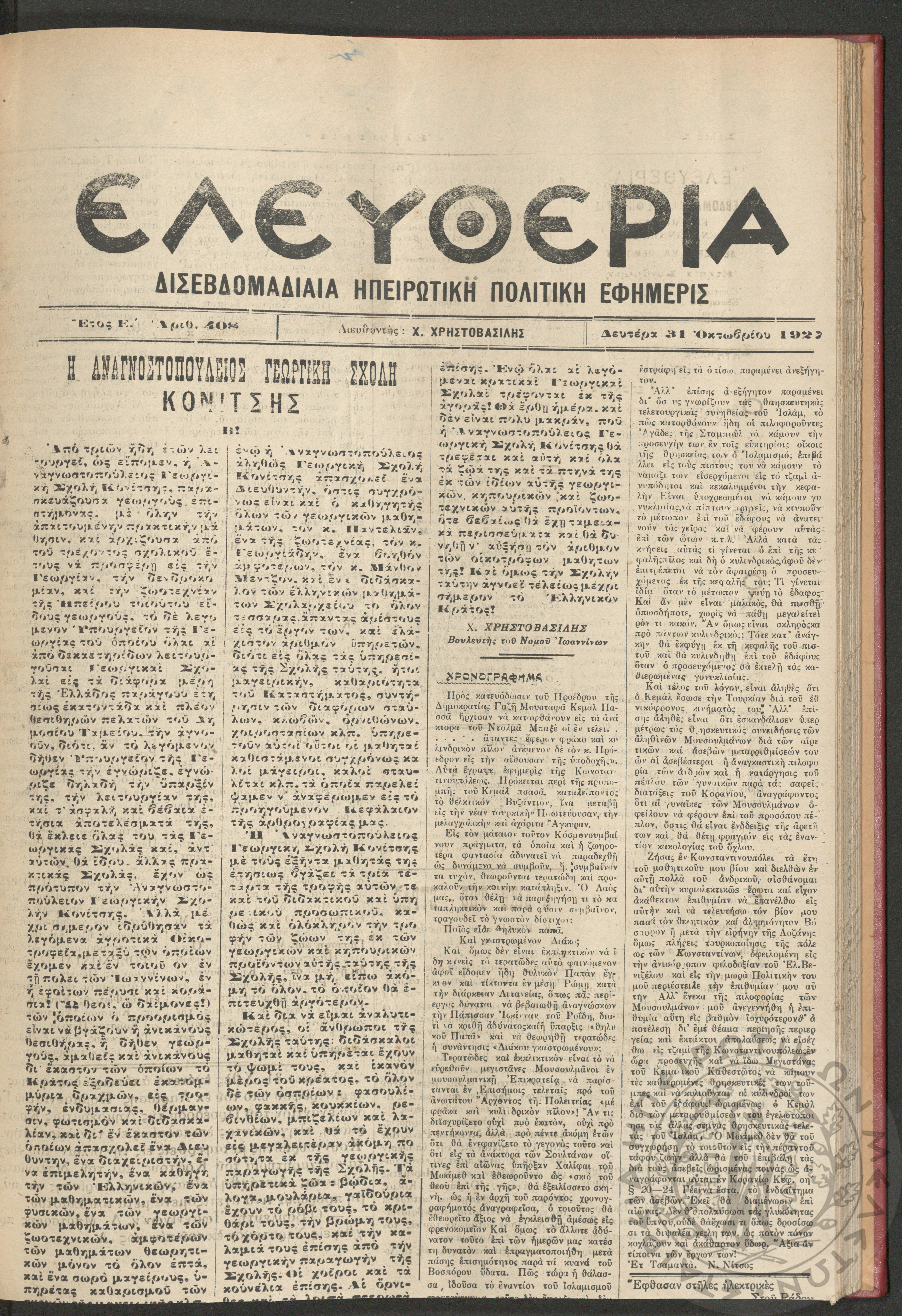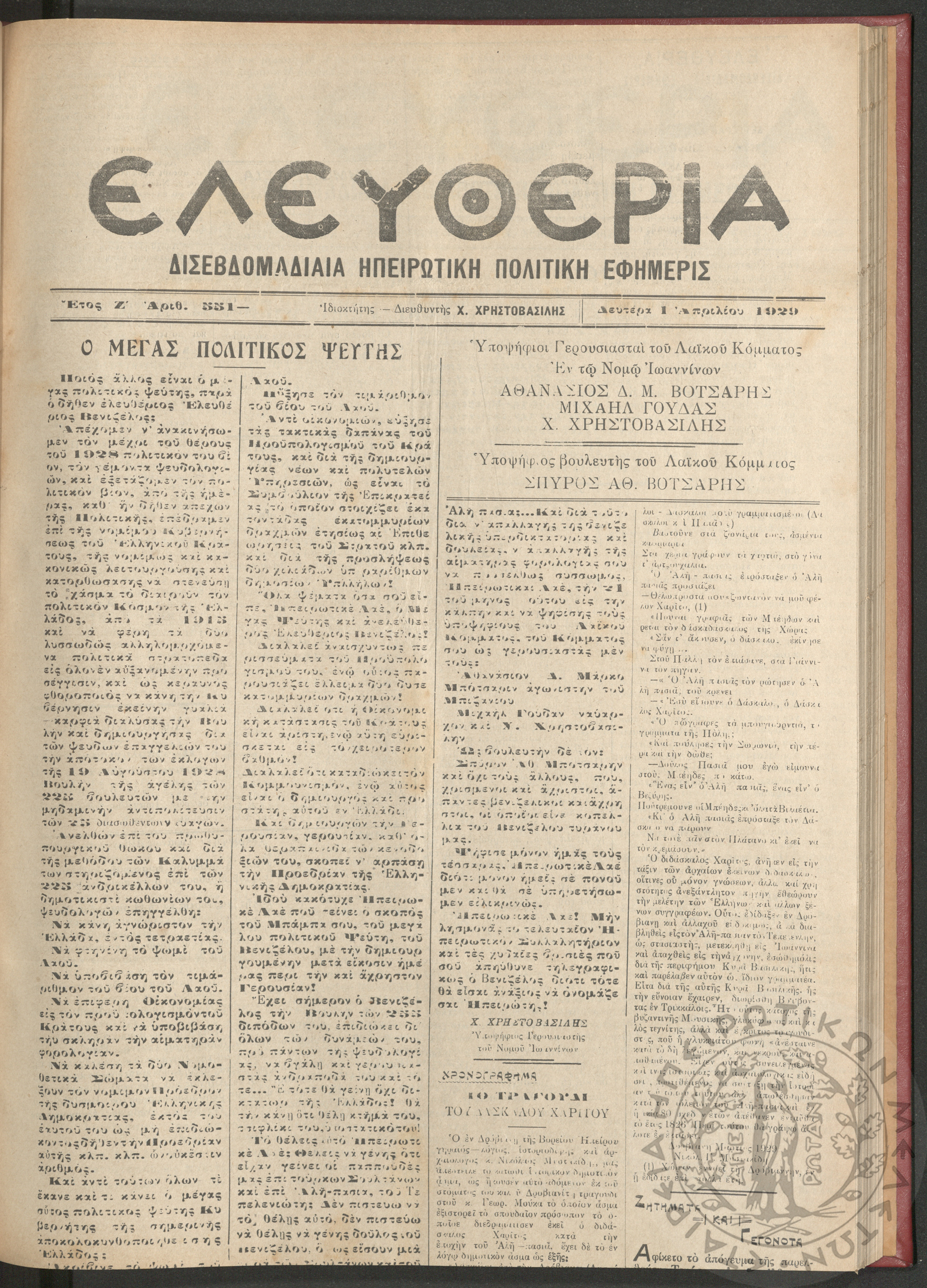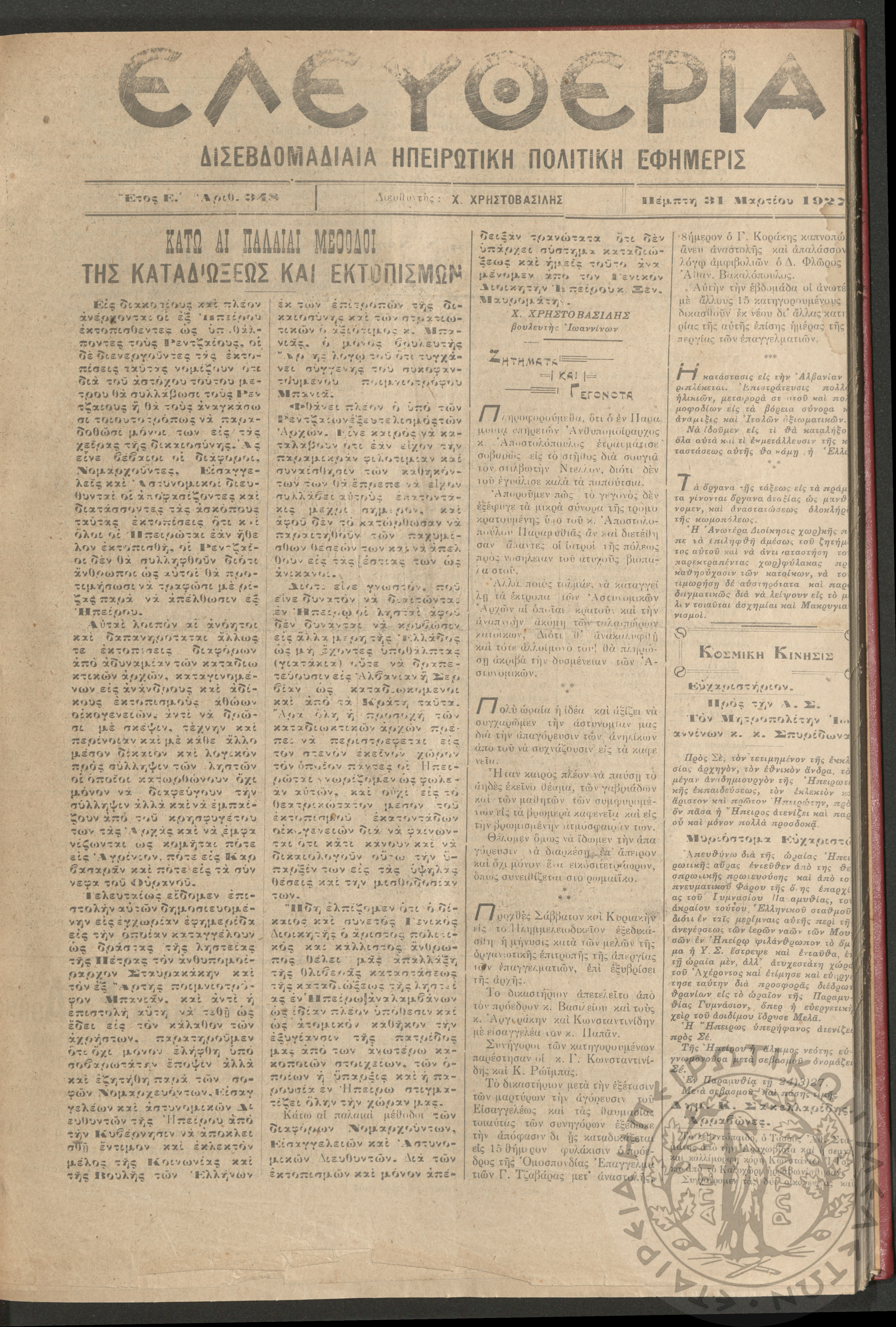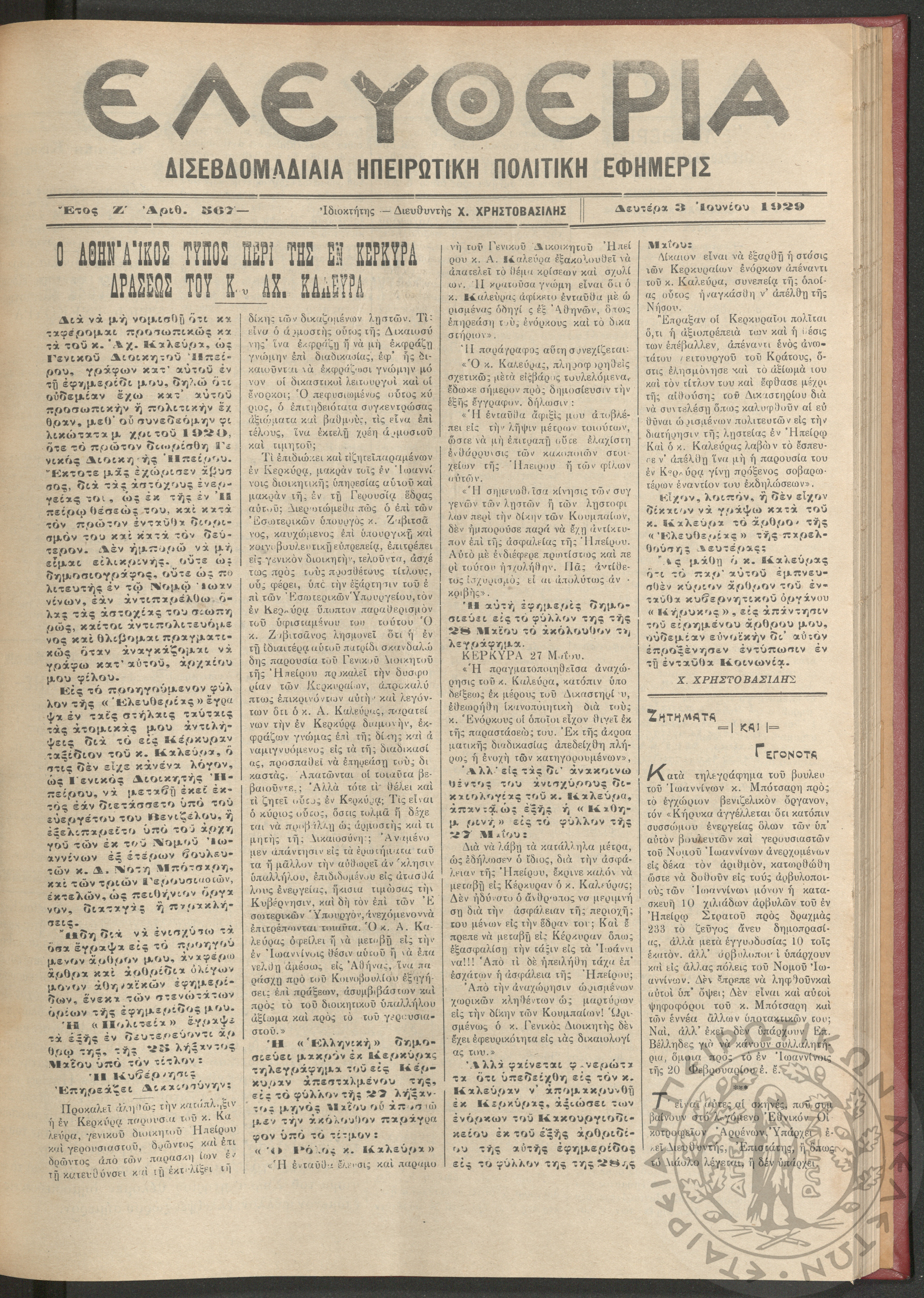 Ελευθερία: δισεβδομαδιαία Ηπειρωτική πολιτική εφημερίς, 1929, φ. 575