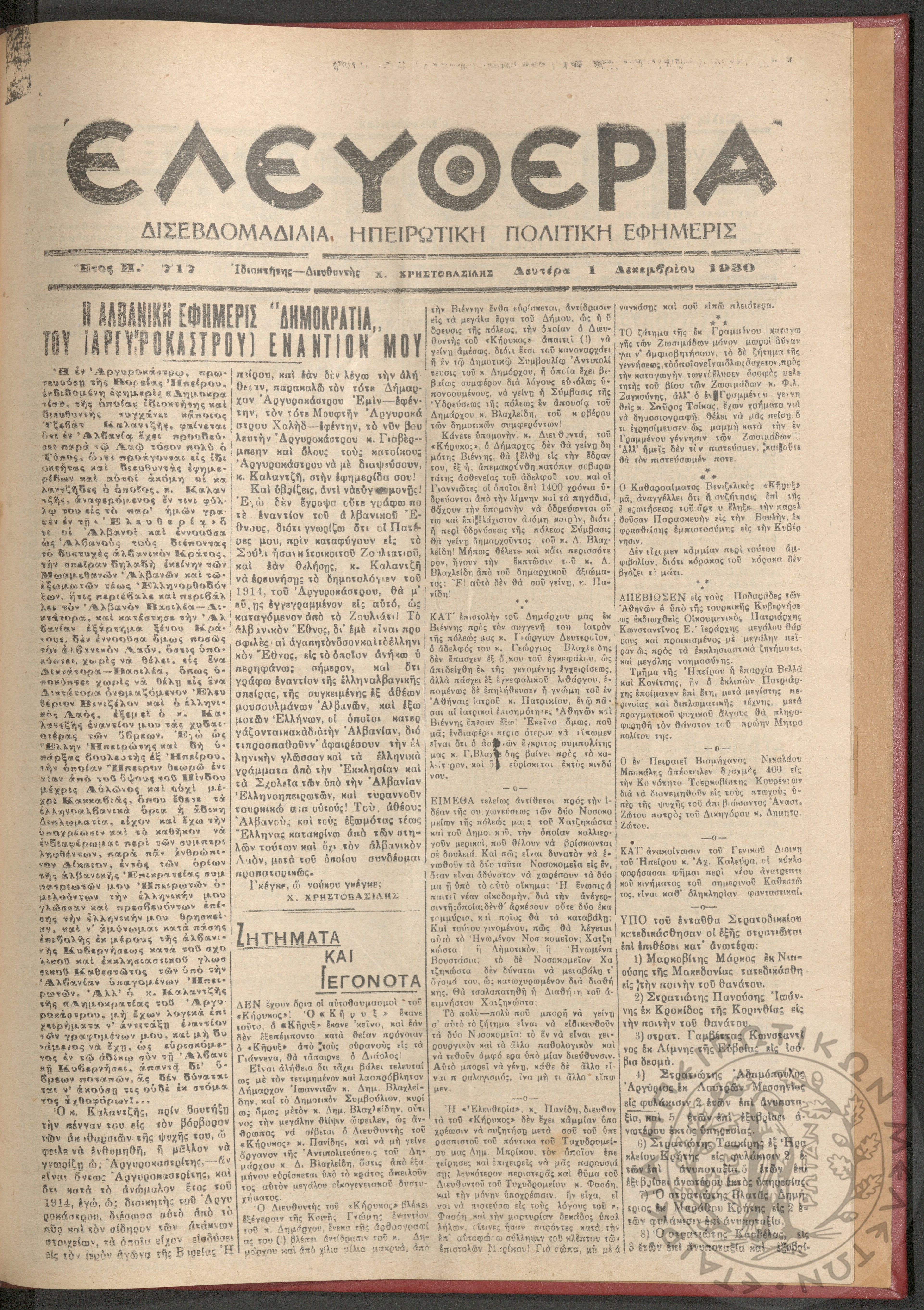 Ελευθερία: δισεβδομαδιαία Ηπειρωτική πολιτική εφημερίς, 1930, φ. 717