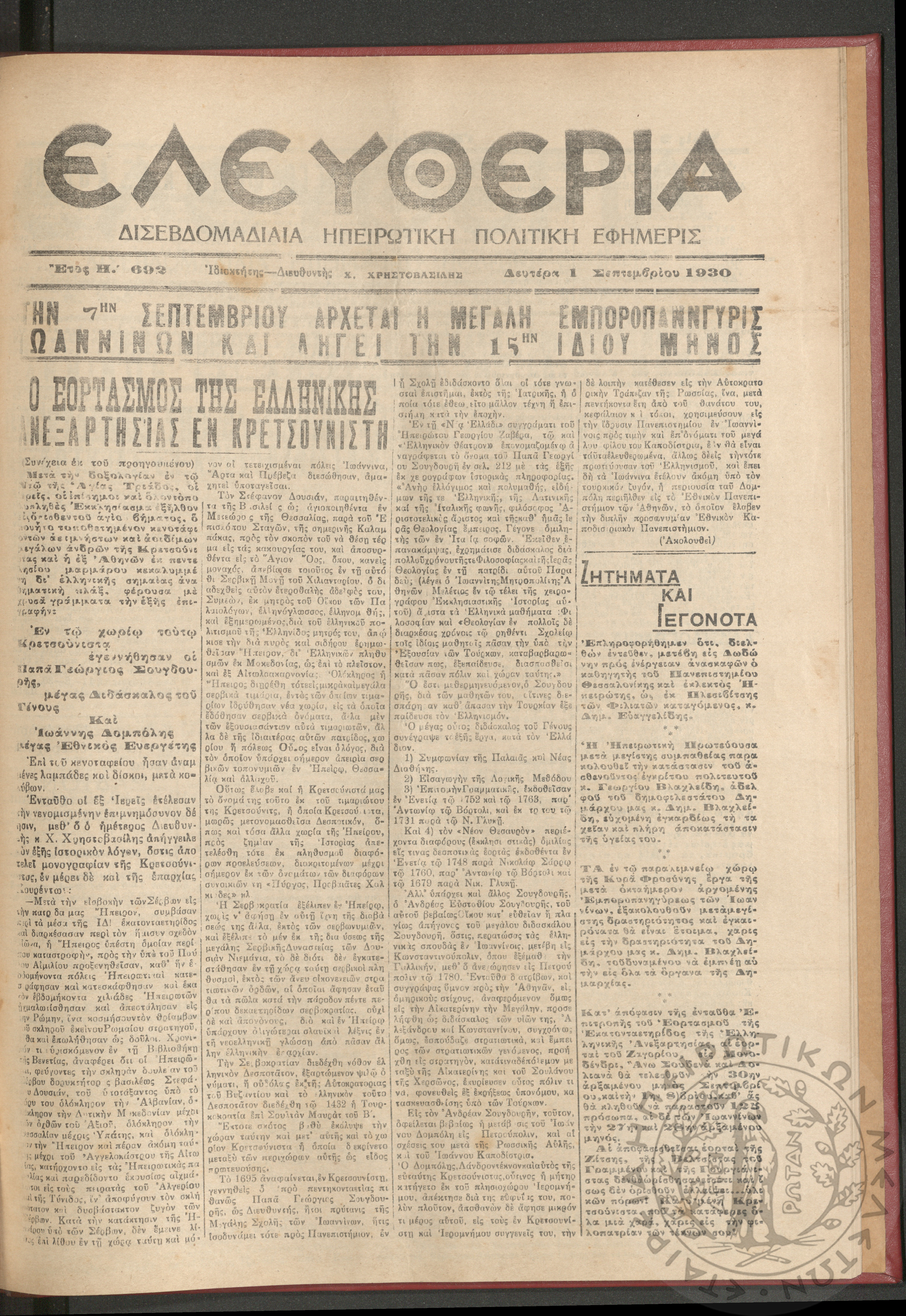 Ελευθερία: δισεβδομαδιαία Ηπειρωτική πολιτική εφημερίς, 1930, φ. 692