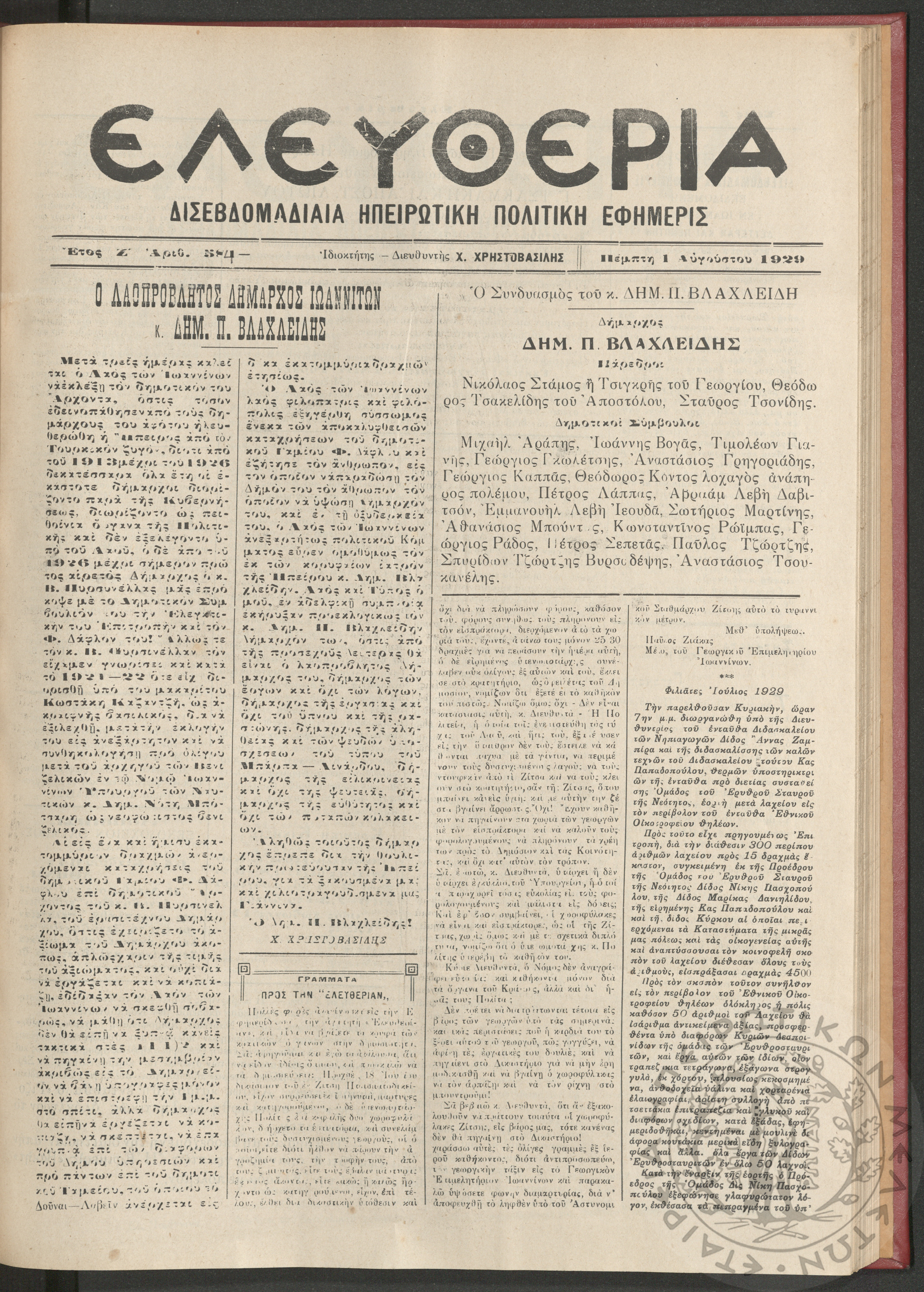 Ελευθερία: δισεβδομαδιαία Ηπειρωτική πολιτική εφημερίς, 1929, φ. 584