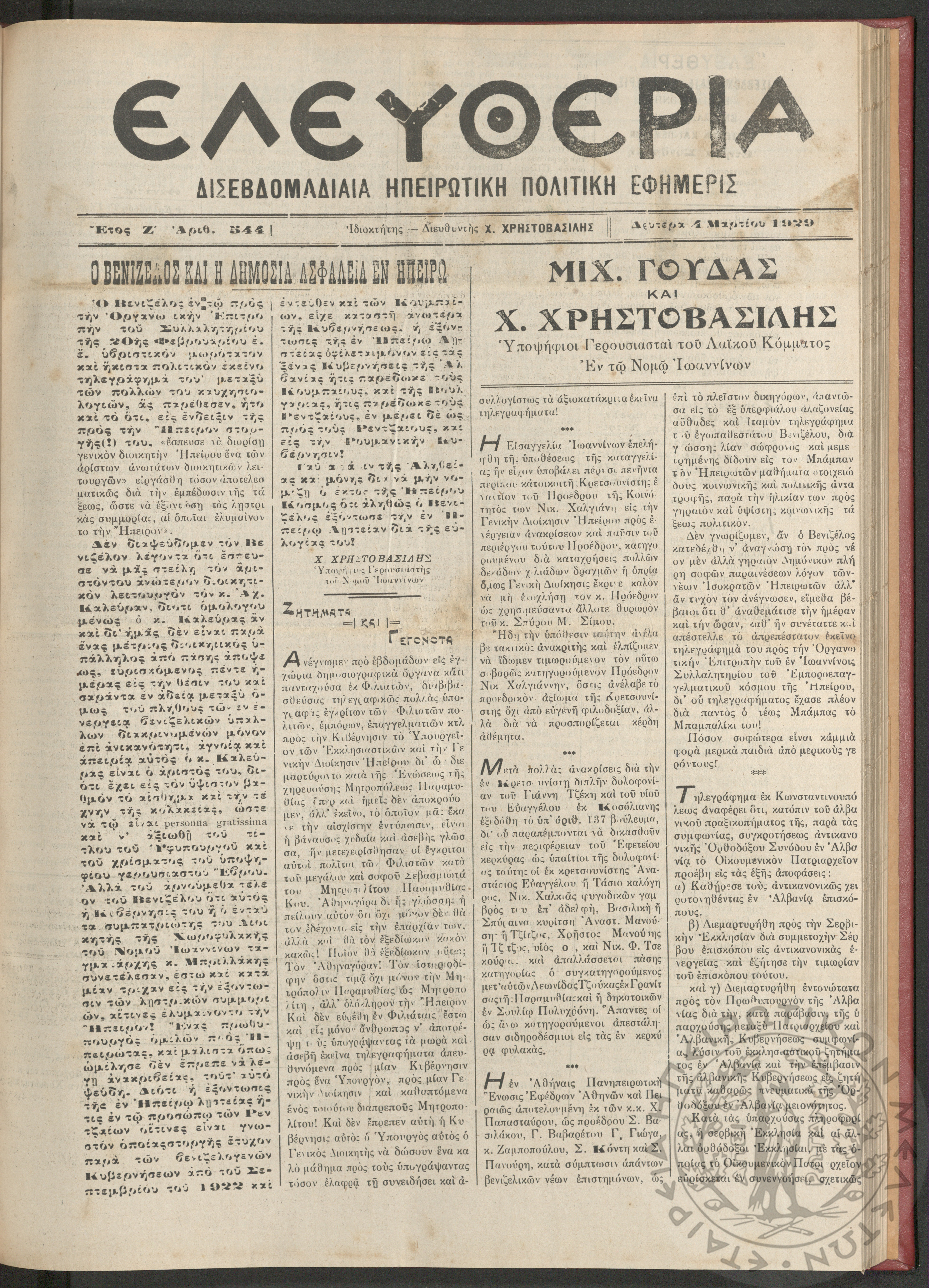 Ελευθερία: δισεβδομαδιαία Ηπειρωτική πολιτική εφημερίς, 1929, φ. 544